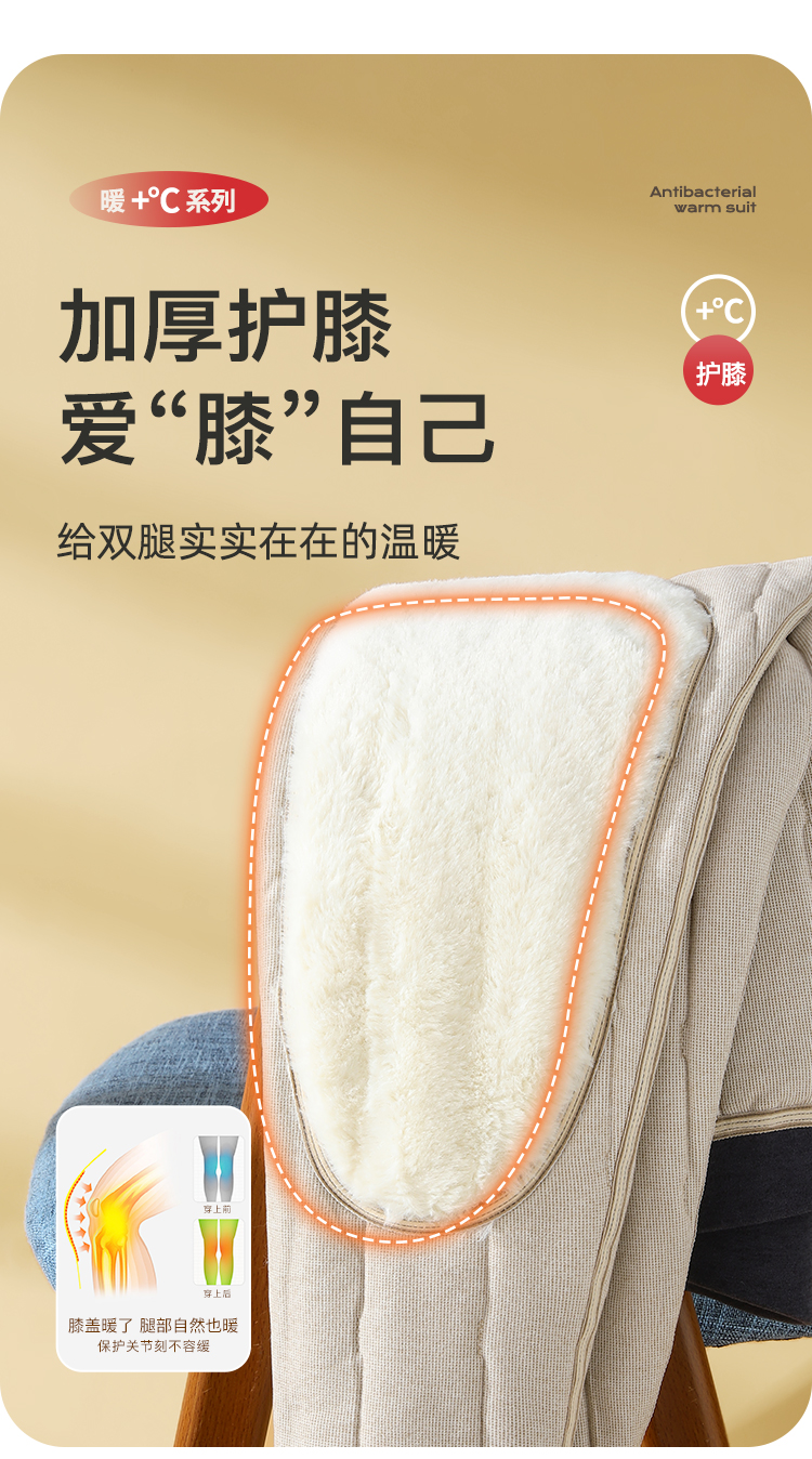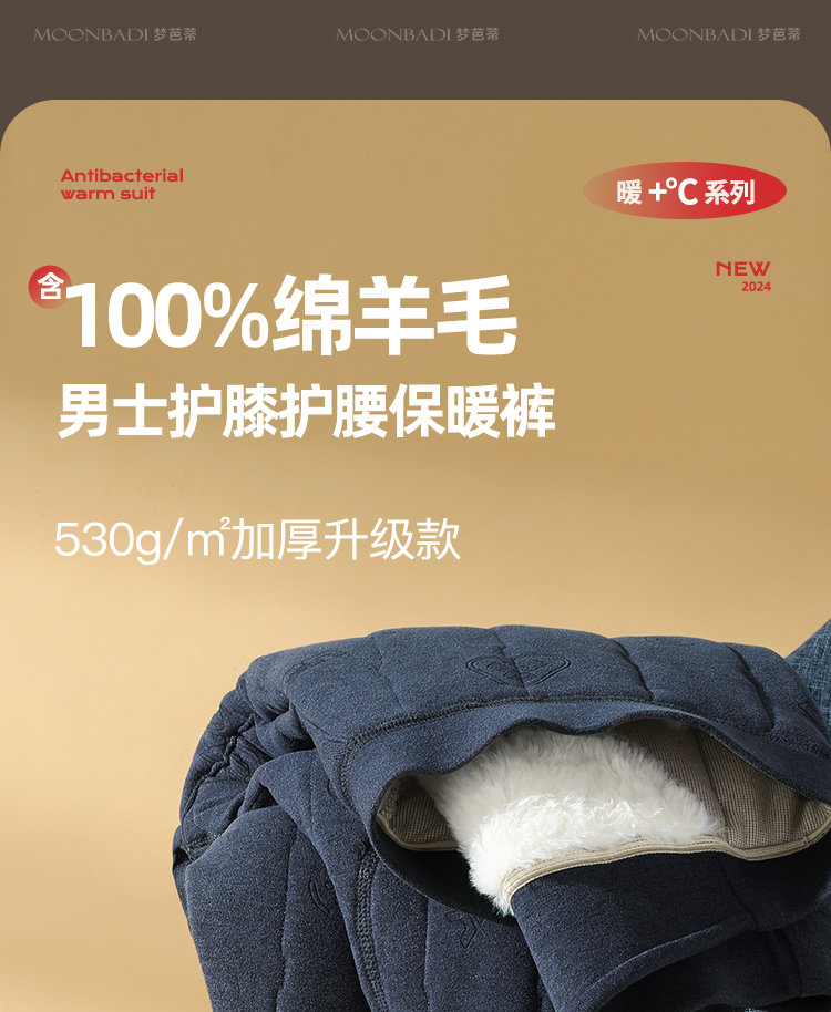 【100%绵羊毛填充】秋冬530g加厚护膝护腰男士保暖裤棉裤男士衔缝保暖裤