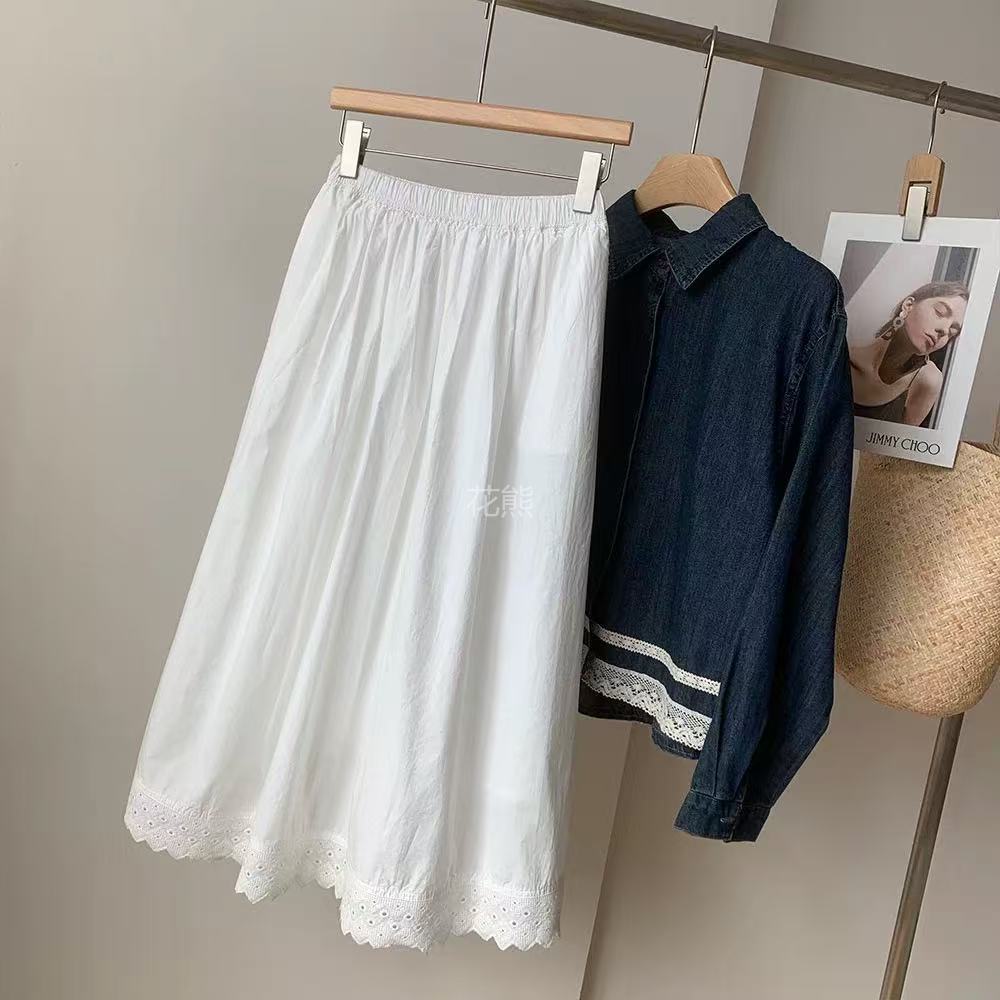 【蕾丝边半身裙】“浪漫与优雅的音域符号”轻松拿捏温柔氛围感的小白裙 松紧腰穿着不束缚,内里选用纯色里布亲肤舒适 不透光不闷热下摆月牙花边点缀,丰富层次