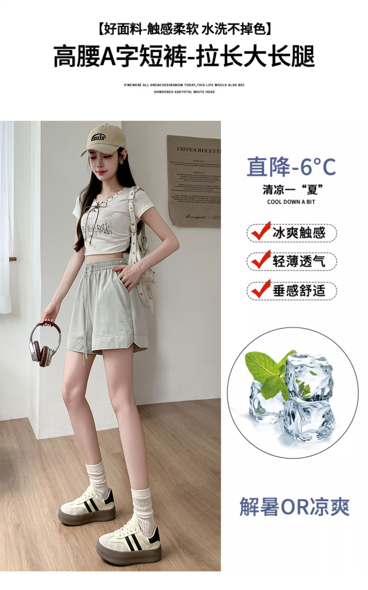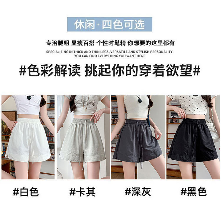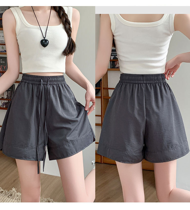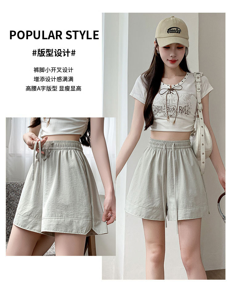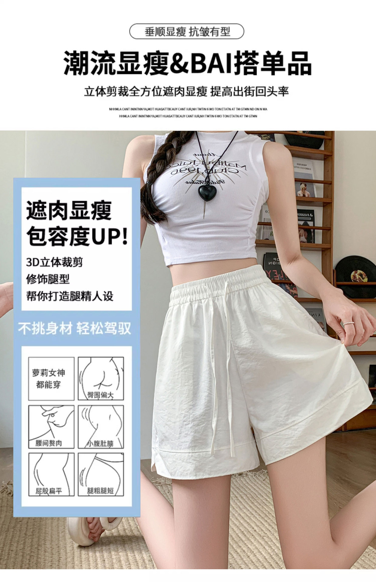 【高腰显瘦❗️休闲阔腿短裤】轻薄亲肤面料垂坠感足,松紧抽绳腰头不勒肚,宽松 A 字版型遮胯藏肉,侧开叉设计灵动不闷腿,外穿短裤宽松休闲中裤,冰丝山本阔腿五分裤L