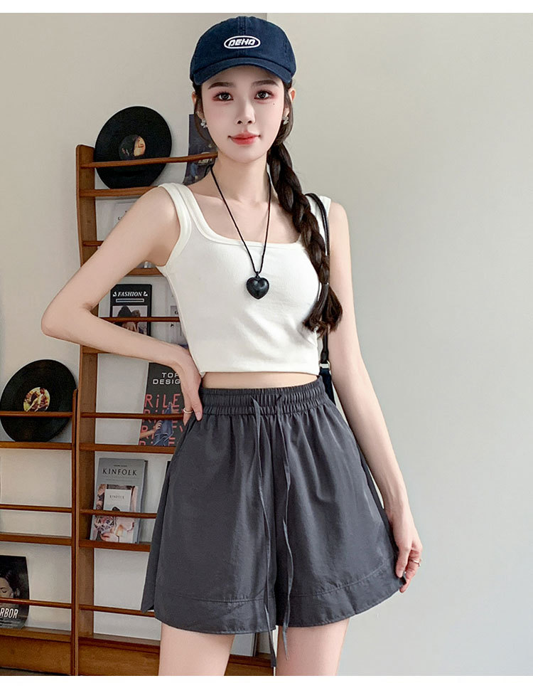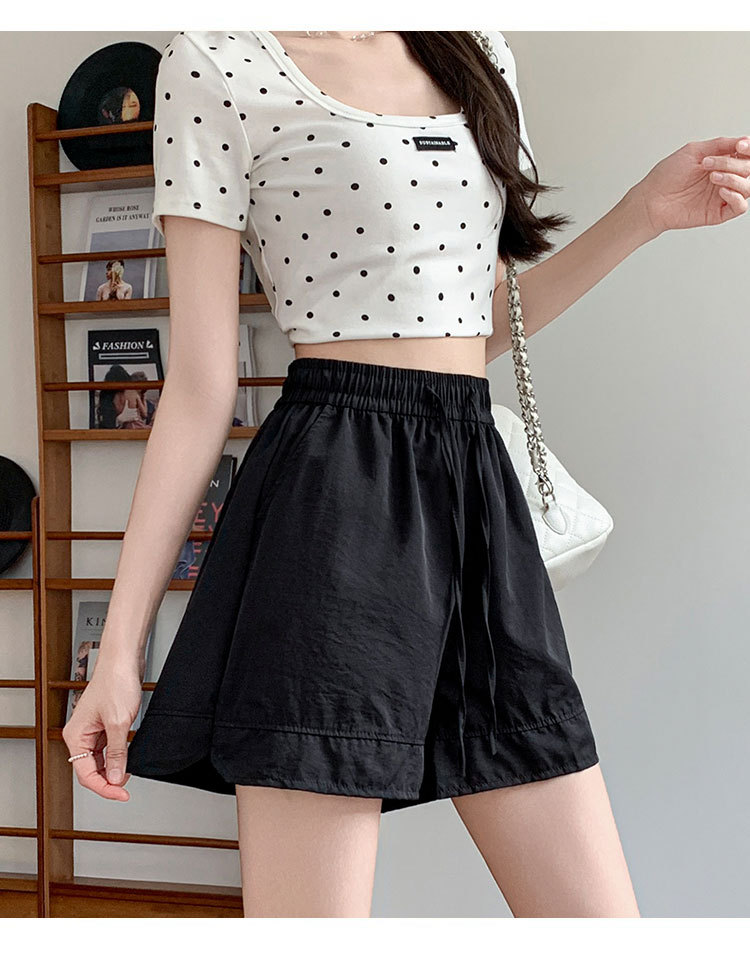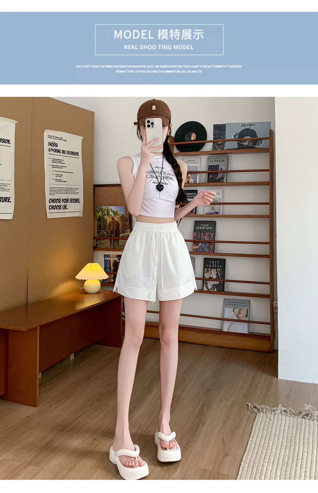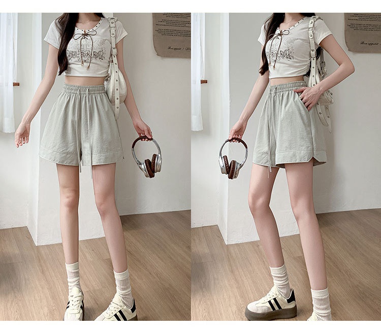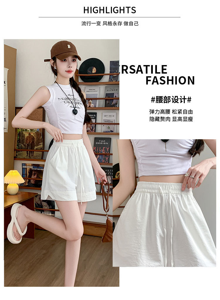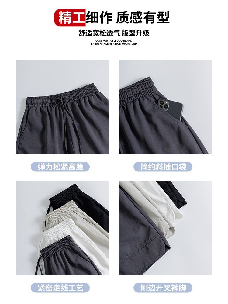 【高腰显瘦❗️休闲阔腿短裤】轻薄亲肤面料垂坠感足,松紧抽绳腰头不勒肚,宽松 A 字版型遮胯藏肉,侧开叉设计灵动不闷腿,外穿短裤宽松休闲中裤,冰丝山本阔腿五分裤L