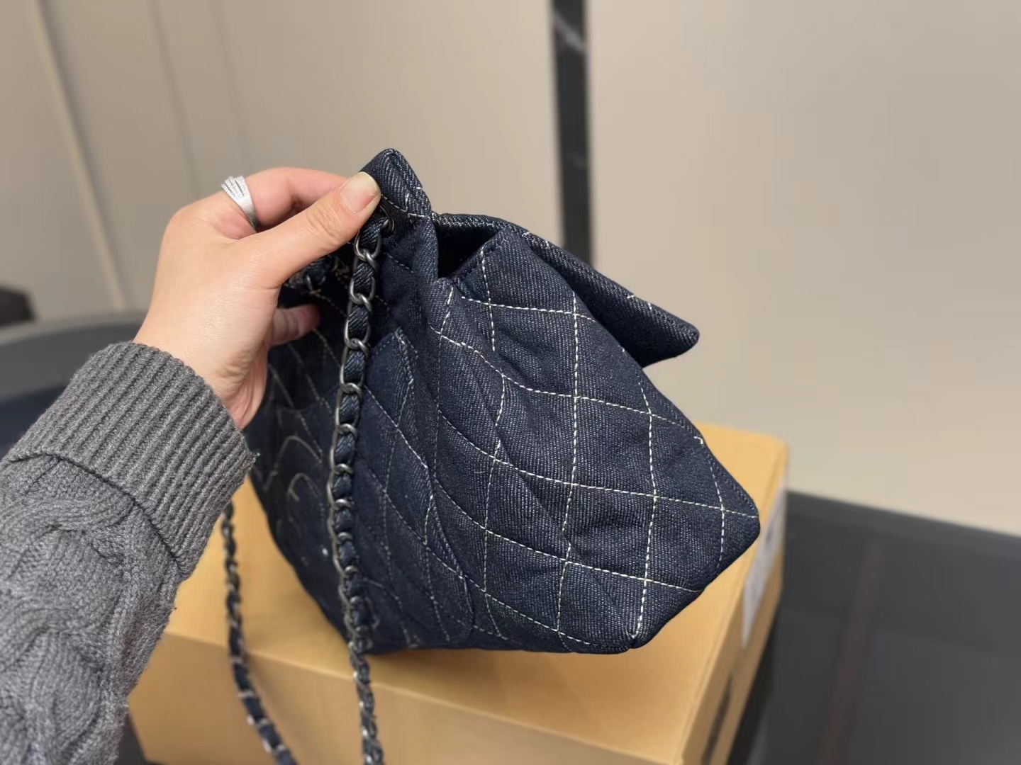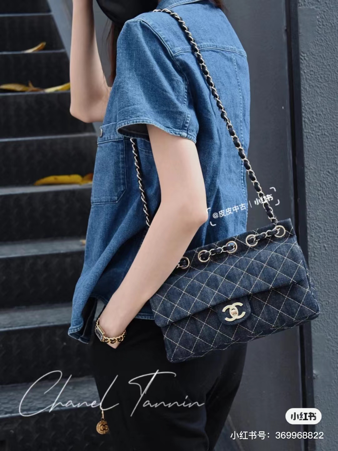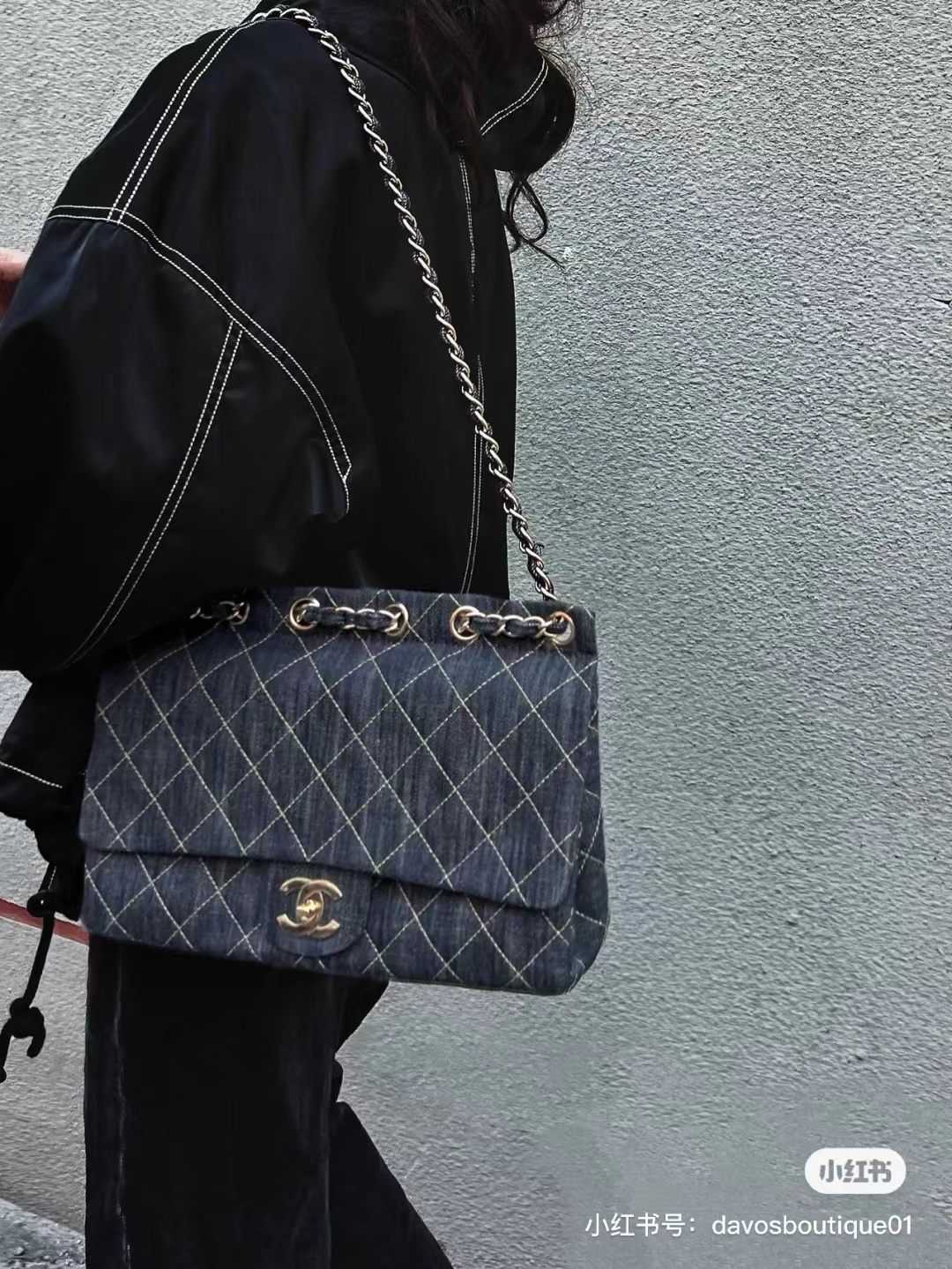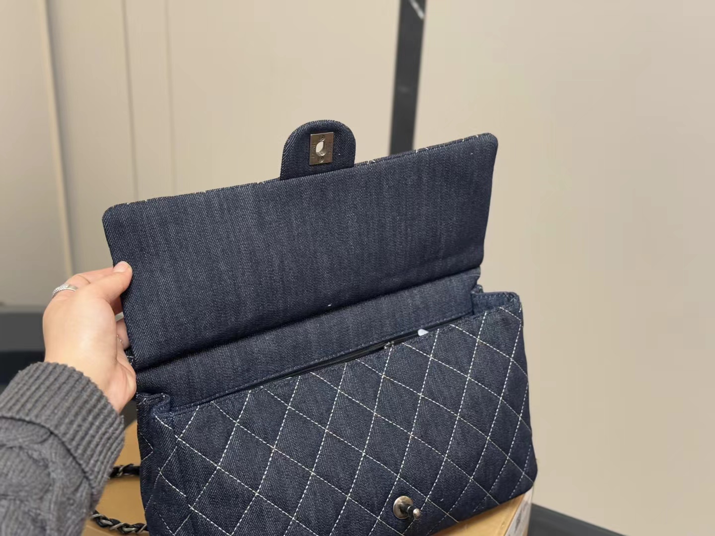 这只牛仔包包虽然很ji品但是却很好搭。不会很扎眼。但是仔细一看嗯 真香 能单肩能斜挎长度非常友好呢,双C金扣增加了辨识度以外很是jing致呢。还有还有!这可是外缝线啊!