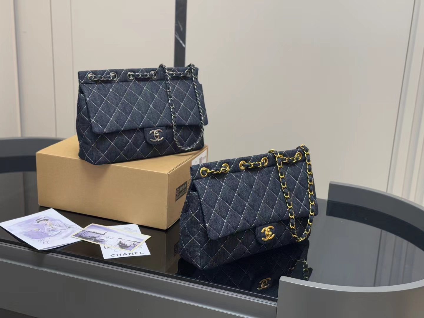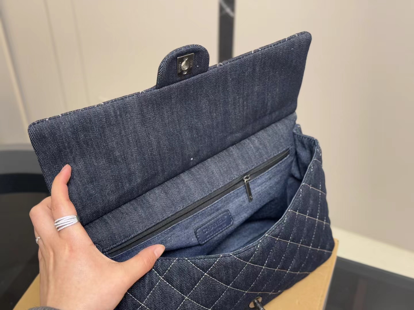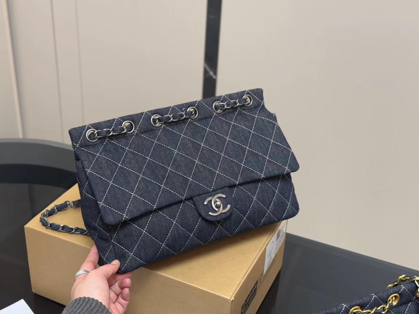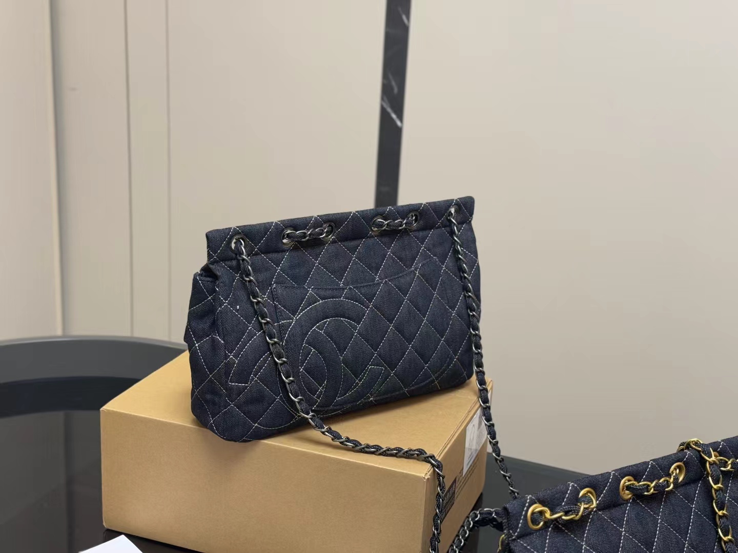 这只牛仔包包虽然很ji品但是却很好搭。不会很扎眼。但是仔细一看嗯 真香 能单肩能斜挎长度非常友好呢,双C金扣增加了辨识度以外很是jing致呢。还有还有!这可是外缝线啊!