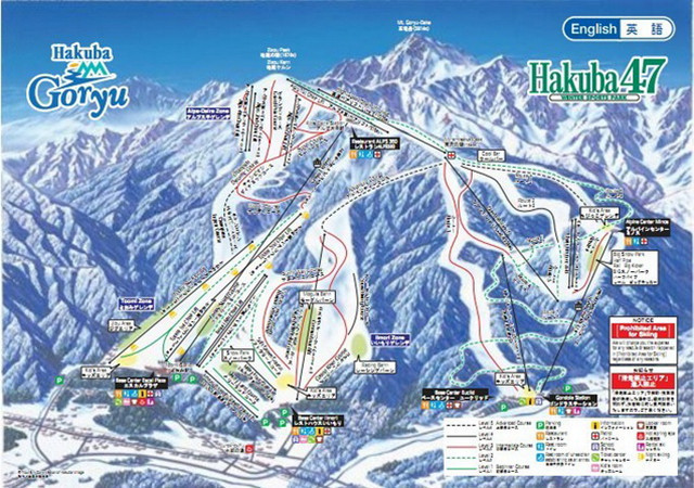 Hakuba 47滑雪场在白马山麗区域中,具有相当的人气。滑雪场以公园为主,标准的U行滑道、跳台以及各种道具一应俱全。令其骄傲的是地形公园,包括半管和各级跳跃。