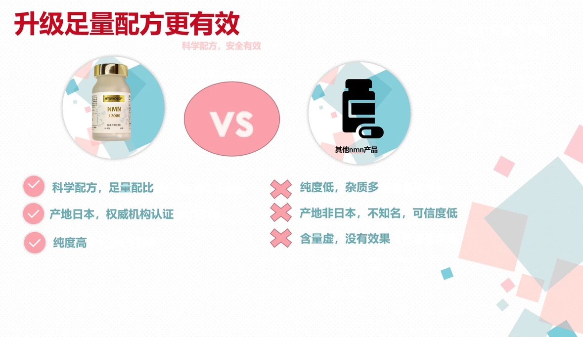 12000、15000、18000属于2.0版本,比较起来其实效果差距不大。主要是因为nmn在人体是有吸收上限的,即使12000的,一份也有400mg含量,已经满足一天nmn的需求量。