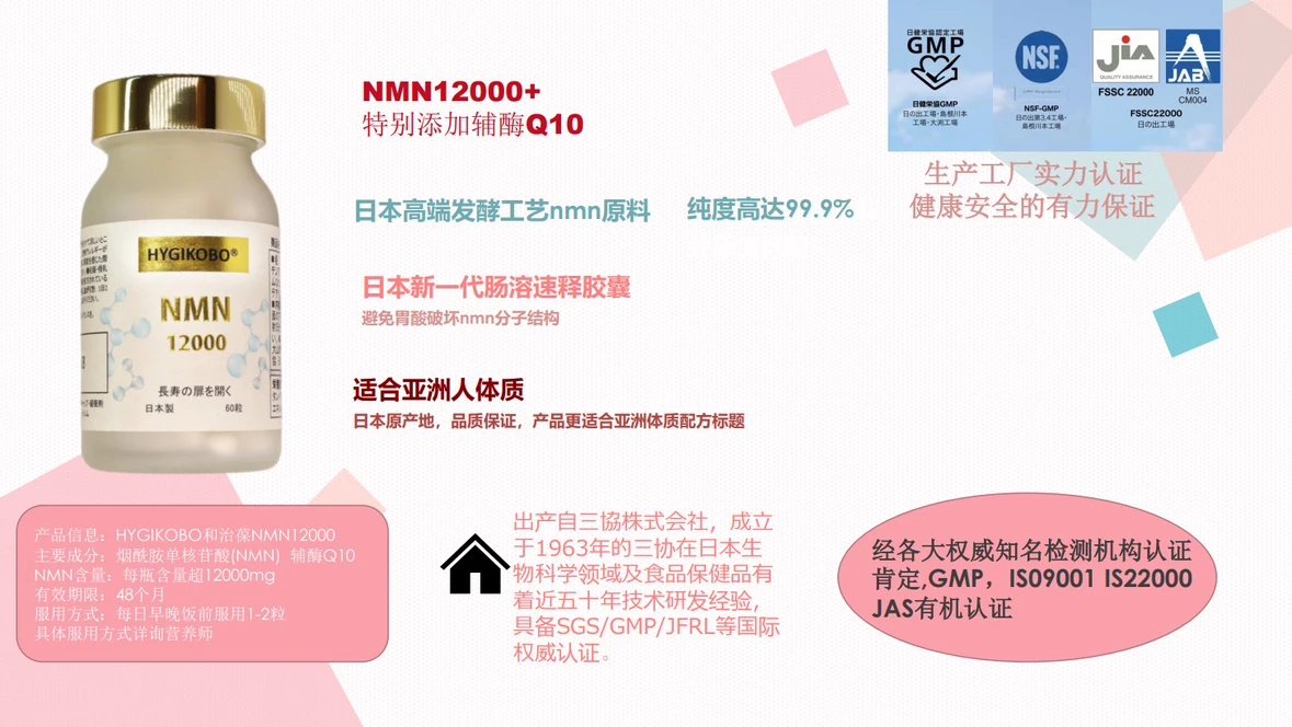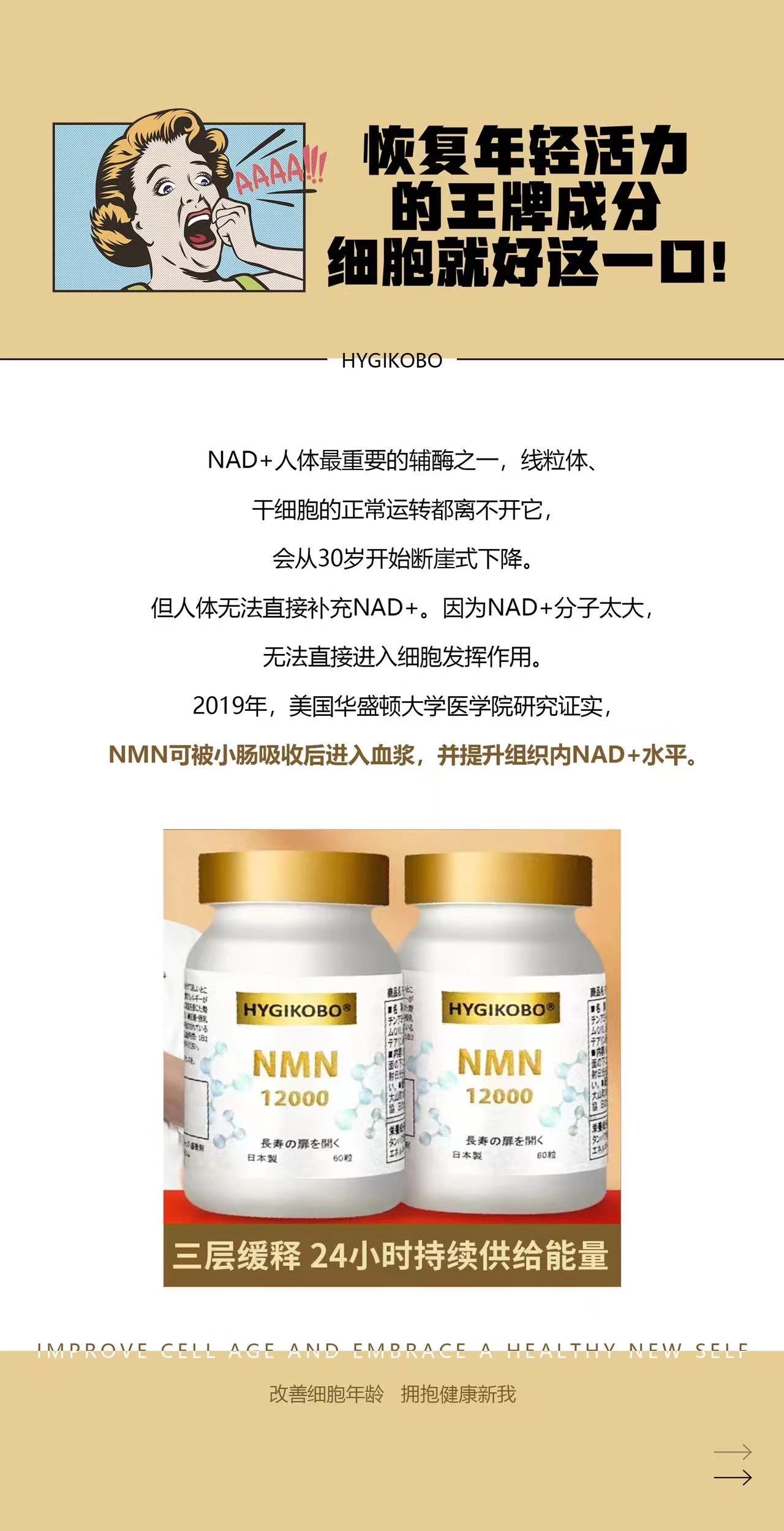 限时买3送1 买6送2 莫言、杨明义同款 京东3980 一瓶【日本HygiKobo和治葆NMN 】服用一瓶等于同时服用NMN+辅酶Q10+姜黄素+护*片,一瓶抵4瓶
