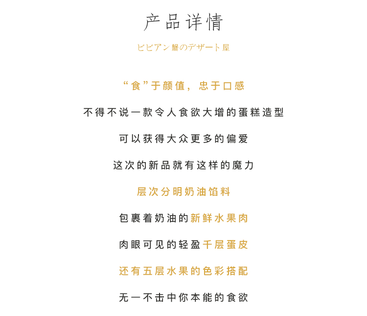 - 主理人毕业于法国蓝带东京校区——高级西点师认证 12年坚持研发高品质水果风味奶油蛋糕