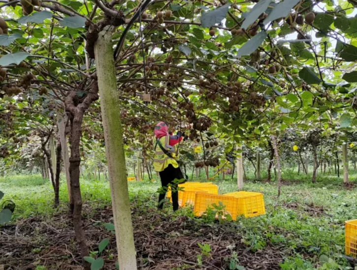 基地位于北纬25°20′~26°01′度,属高原季风气候,干湿季明显,年日照2100小时以上,冬季日照长,光照丰富,光和作用强,昼夜温差大,年平均气温14.5℃,年无霜期近260- 270天左右,冬季无连续低温、春季没有霜降,避免果实受到冻害,年降雨量850-1100毫米, 雨量充沛,生态环境好,弱酸性红土,土壤肥沃,连年使用农家肥,果子干物质含量高、糖度高,口感Q弹,风味浓郁 。果园周边有有超过10米高的树群,为果园遮挡大风,藤曼上的奇异果就像是娇嫩的婴儿般被处处呵护着。