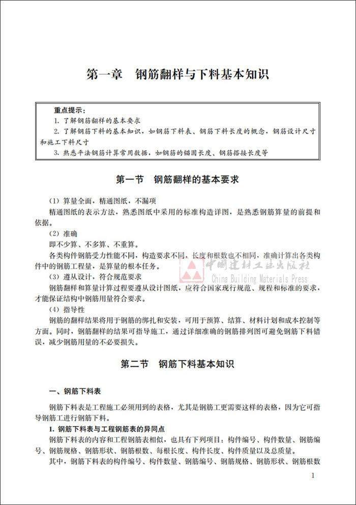 钢筋翻样是根据施工图、相关规范、图集、结构受力原理、施工工艺和计算规则计算钢筋的长度、根数、质量,并设计出钢筋图形的一项重要工作。钢筋下料是指确定制作某个钢筋构件所需的材料形状、数量或质量后,从整根钢筋中取下一定形状、数量或质量的钢筋进行加工的操作过程,是一项技术含量较高的工作。目前,平法钢筋技术不断向前发展,涌现出许多新方法,工艺也在不断改善,但是平法钢筋翻样与下料并未形成一套完整的理论体系,而从事钢筋工程的设计、施工人员,对于钢筋翻样与下料理论知识的掌握也比较有限。为了满足钢筋工程技术人员及相关工作人员的需求,我们依据11G101-1《混凝土结构施工图平面整体表示方法制图规则和构造详图(现浇混凝土框架、剪力墙、梁、板)》、11G101-2《混凝土结构施工图平面整体表示方法制图规则和构造详图(现浇混凝土板式楼梯)》、11G101-3《混凝土结构施工图平面整体表示方法制图规则和构造详图(独立基础、条形基础、筏形基础及桩基承台)》三本最新图集编写了本书。