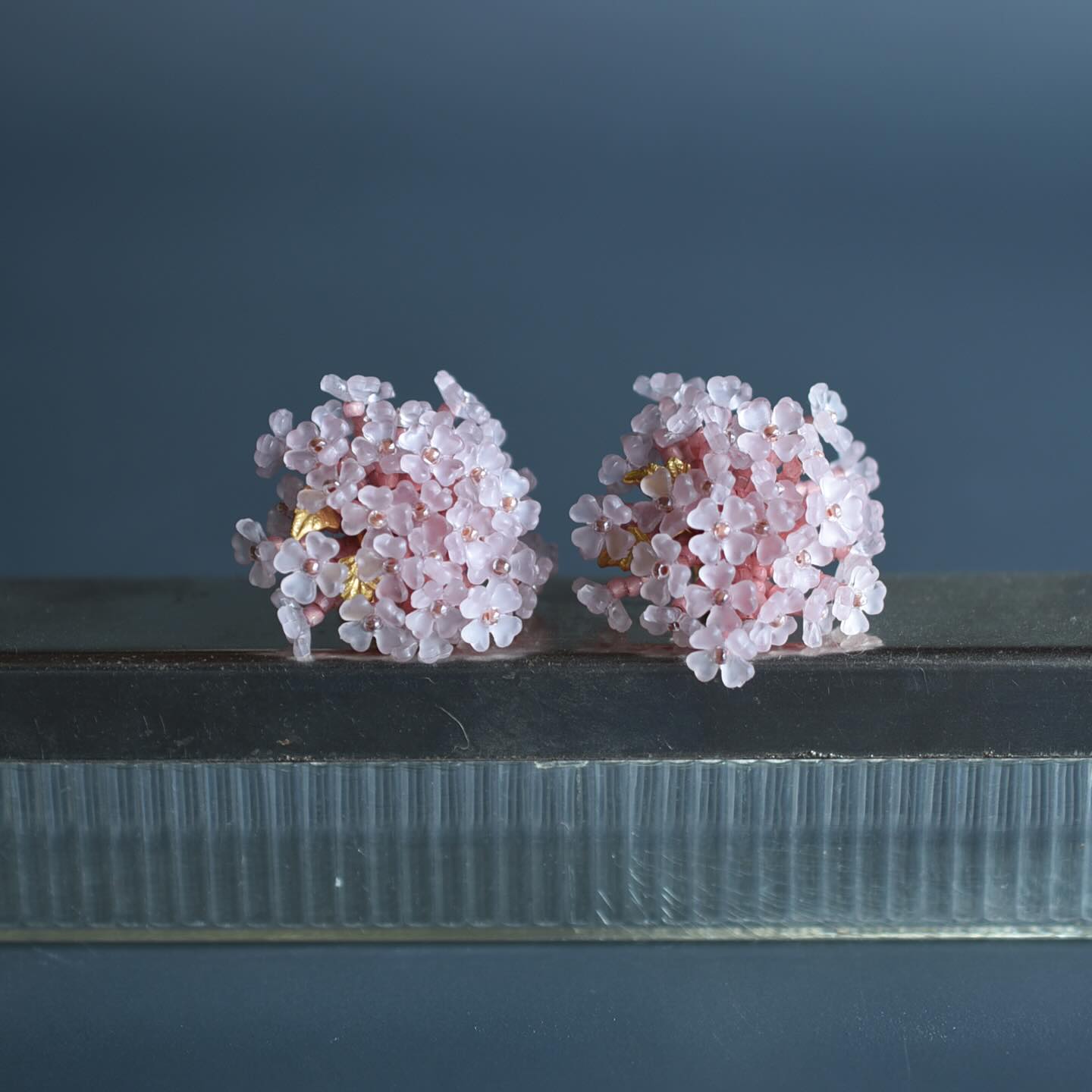 北京仓|Monshiro-ajisai-粉色 绣球 耳钉[日本设计师]