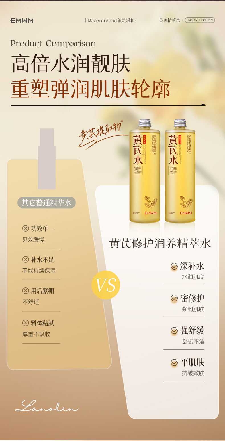 黄芪精粹➕多种植物精华融合,复配2项专利、4种进口成分淡纹抗皱!