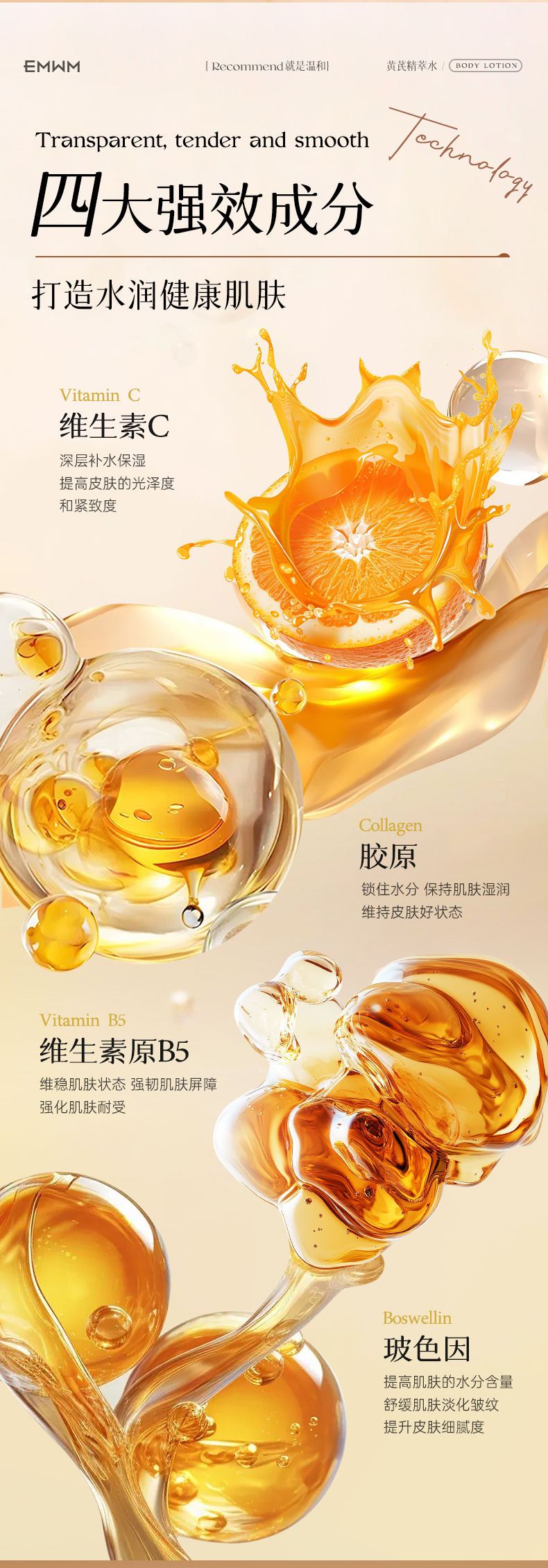 玻色因——促进肌肤胶原蛋白再生,延缓衰老,紧致肌肤,增加肌肤弹性。