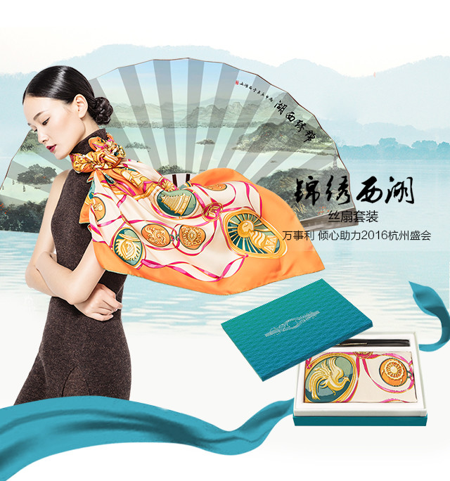 (永久下架)【B20峰会企业纪念礼】锦绣西湖丝扇套装-和瑞图腾