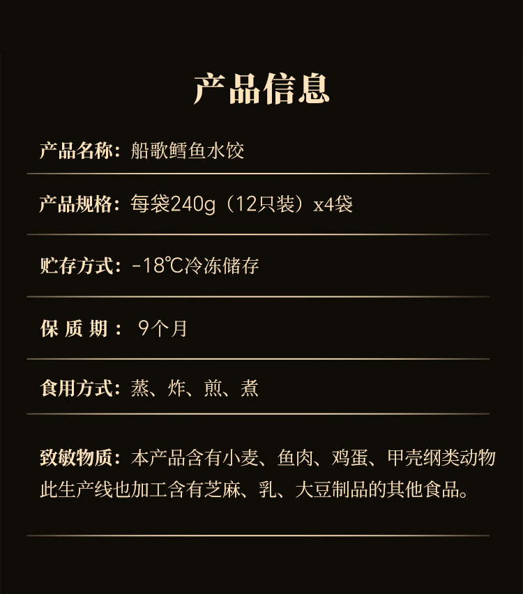 船歌鱼水饺四大当家海鲜水饺礼盒-24颗每袋/460g*4袋