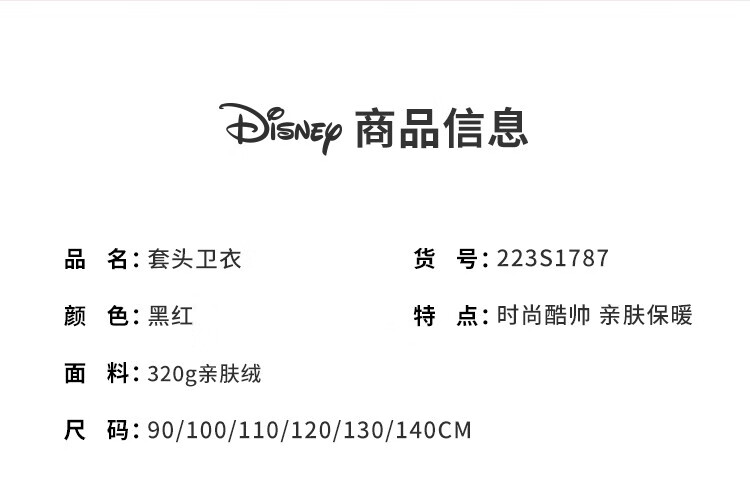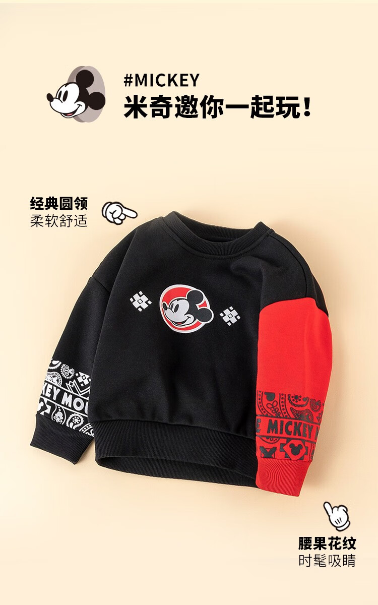 迪士尼童装 春秋新品儿童加绒卫衣男童保暖时尚上衣223S1787