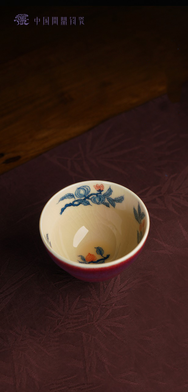 寒香慕古釉里红双勾莲压手杯(下单前请先咨询客服)