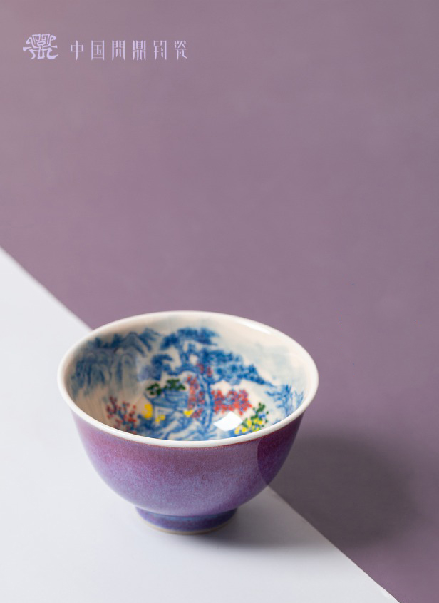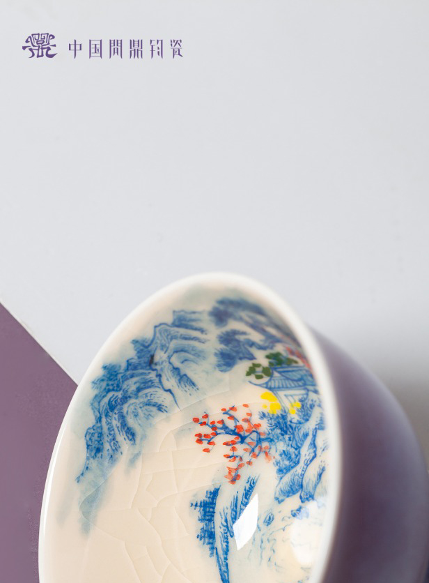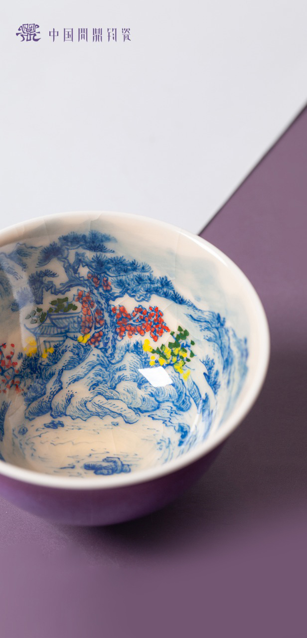 问鼎钧瓷鹅黄青花雨尘杯(涉江)