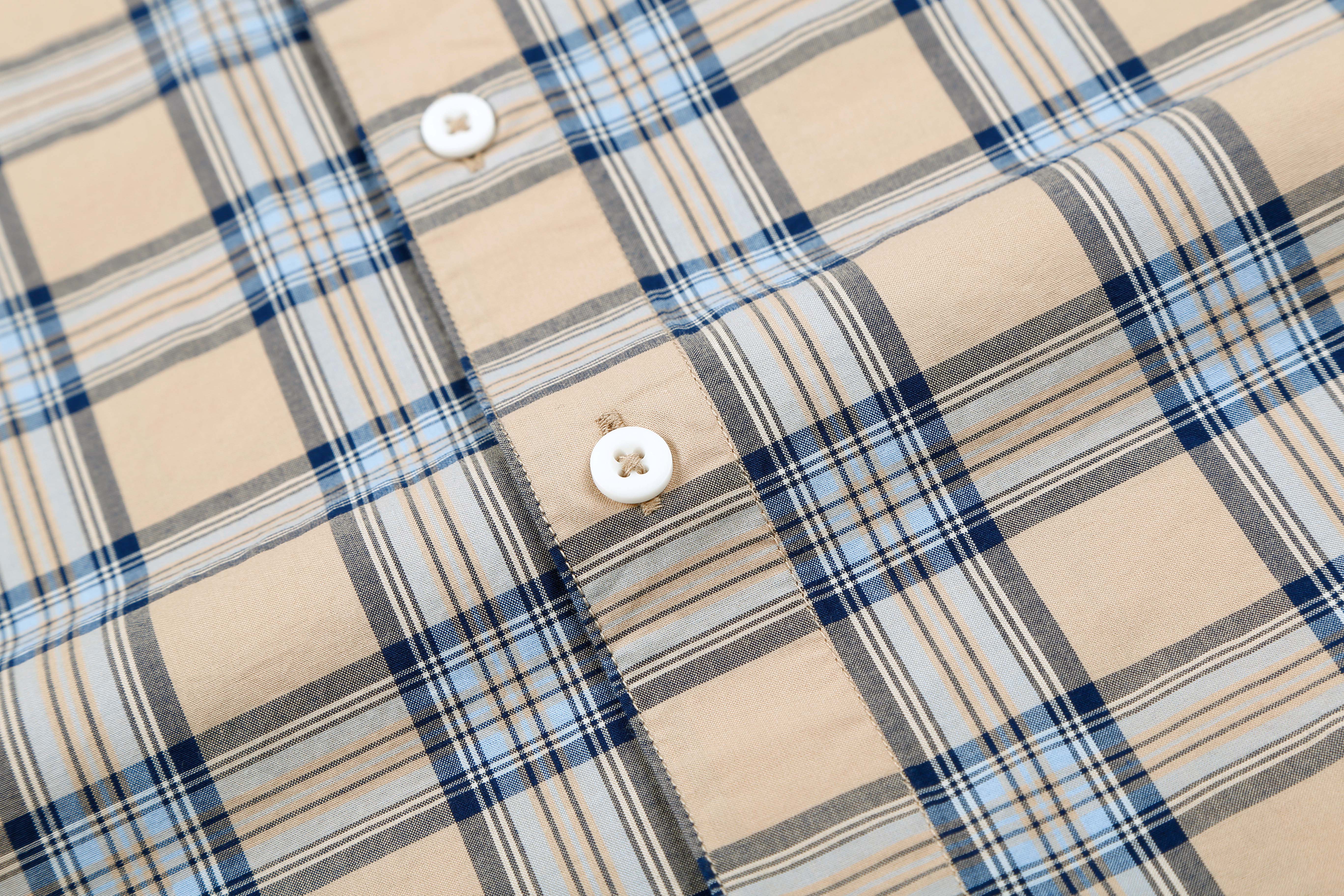 【1件99/2件180/3件258 】占姆士短袖100%纯棉格纹夏季格子衬衫男装休闲全棉半袖 有口袋