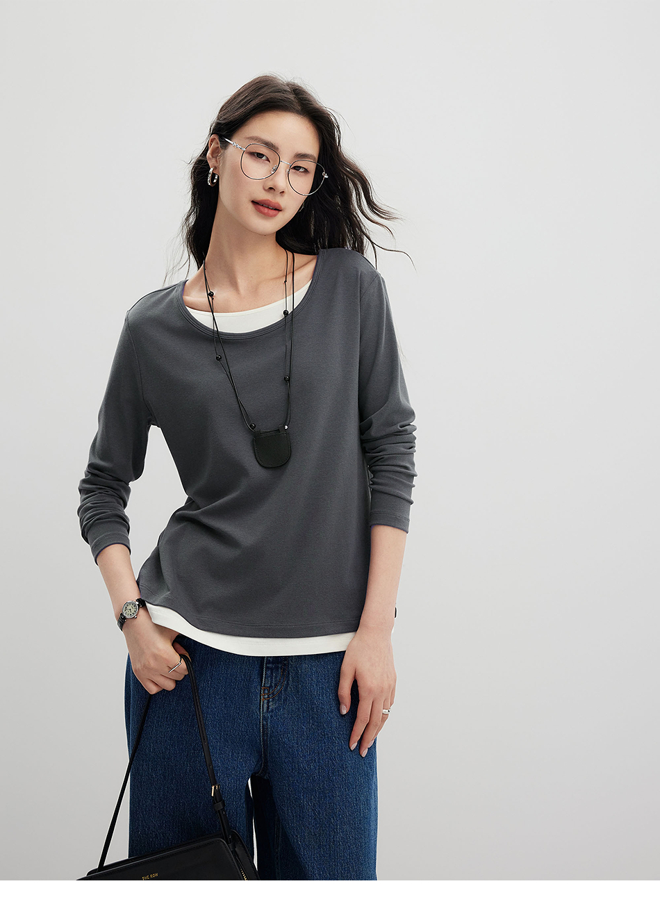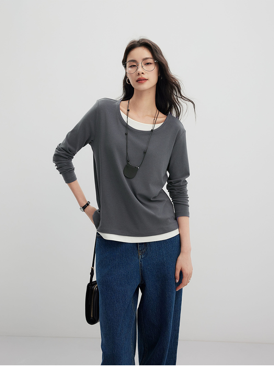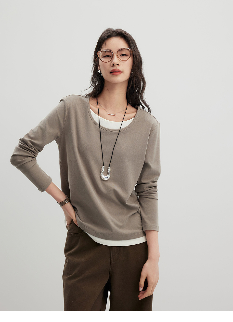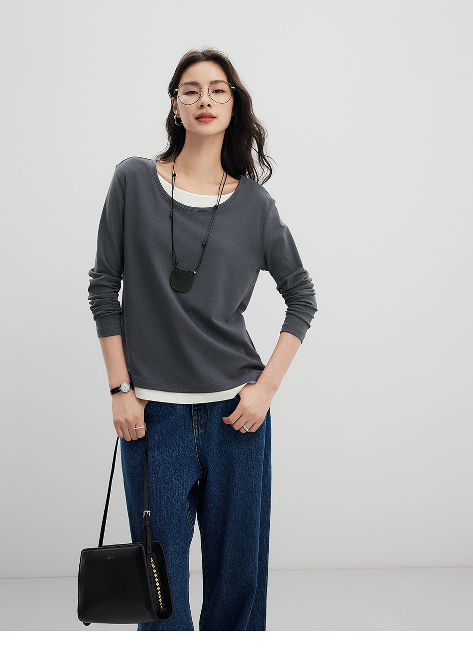 棉仓356801009-水波纹微宽松圆领长袖T恤
