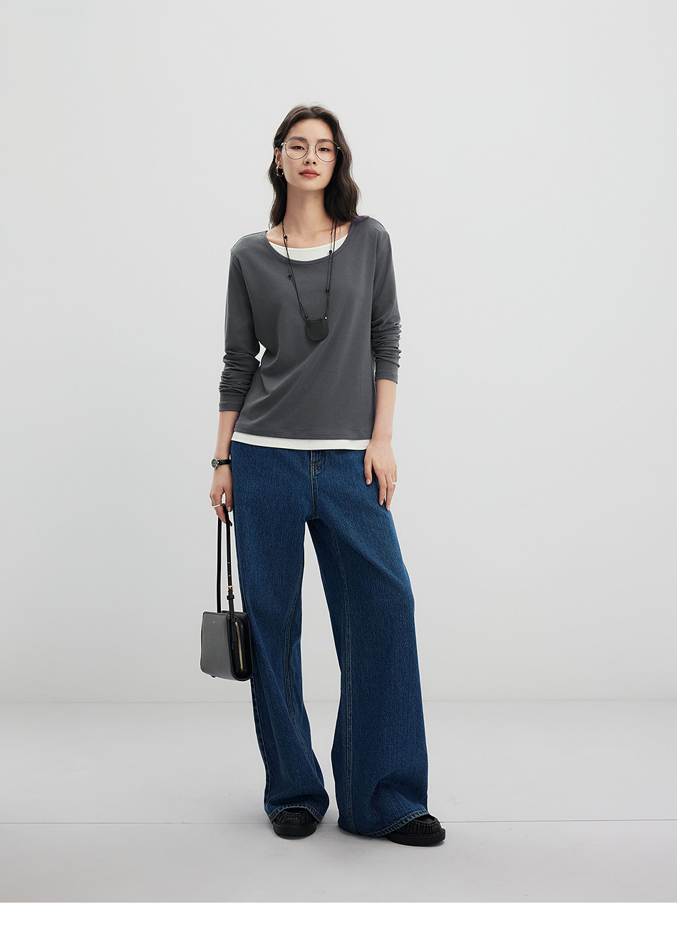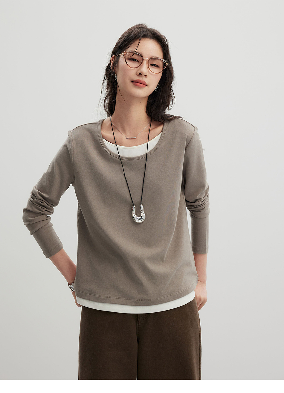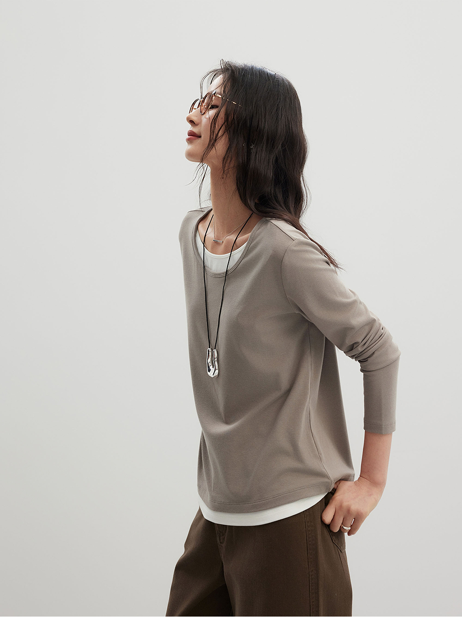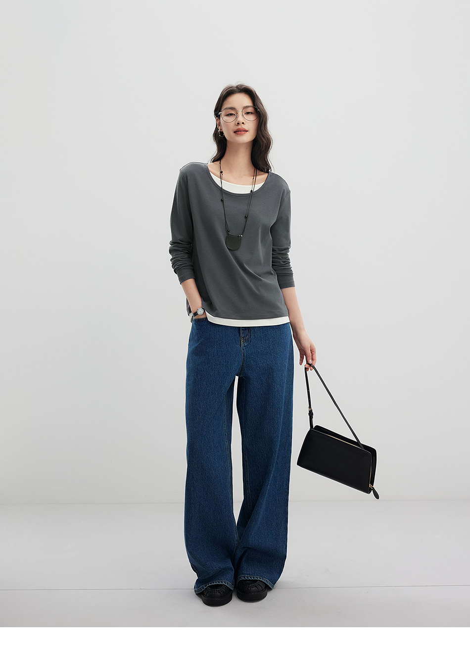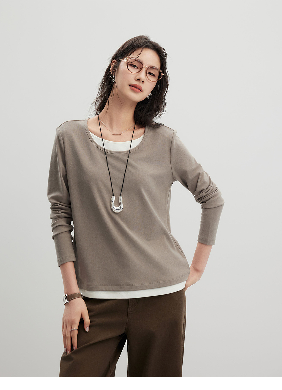 棉仓356801009-水波纹微宽松圆领长袖T恤