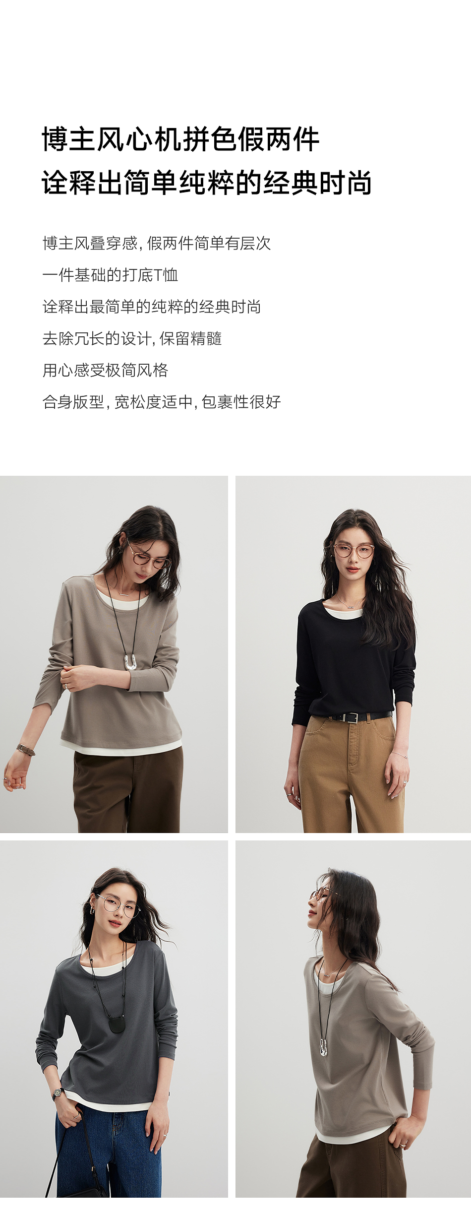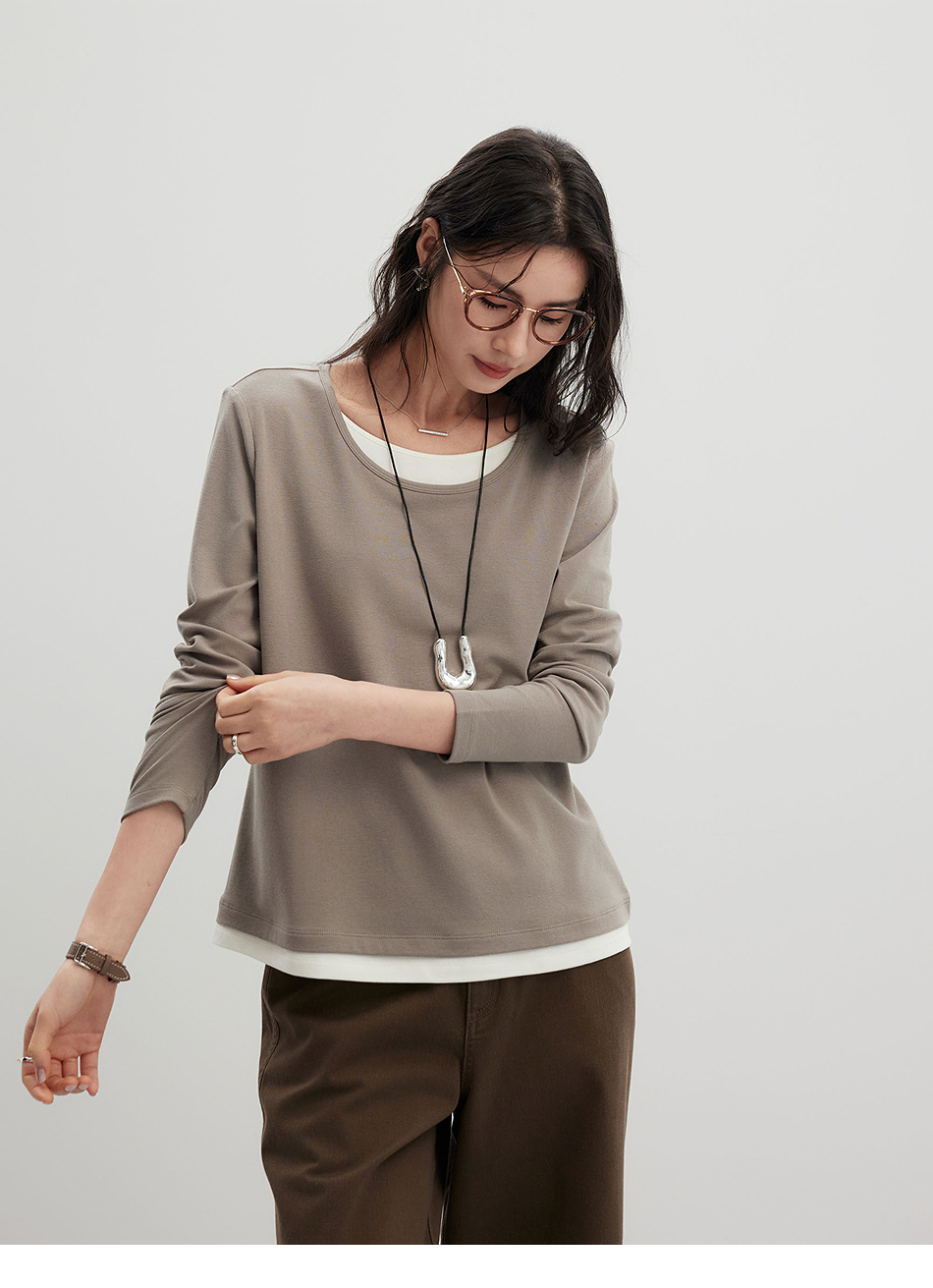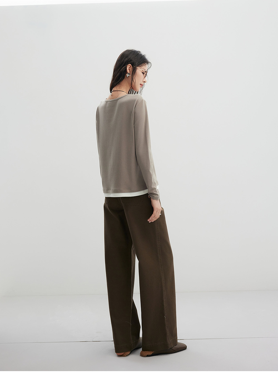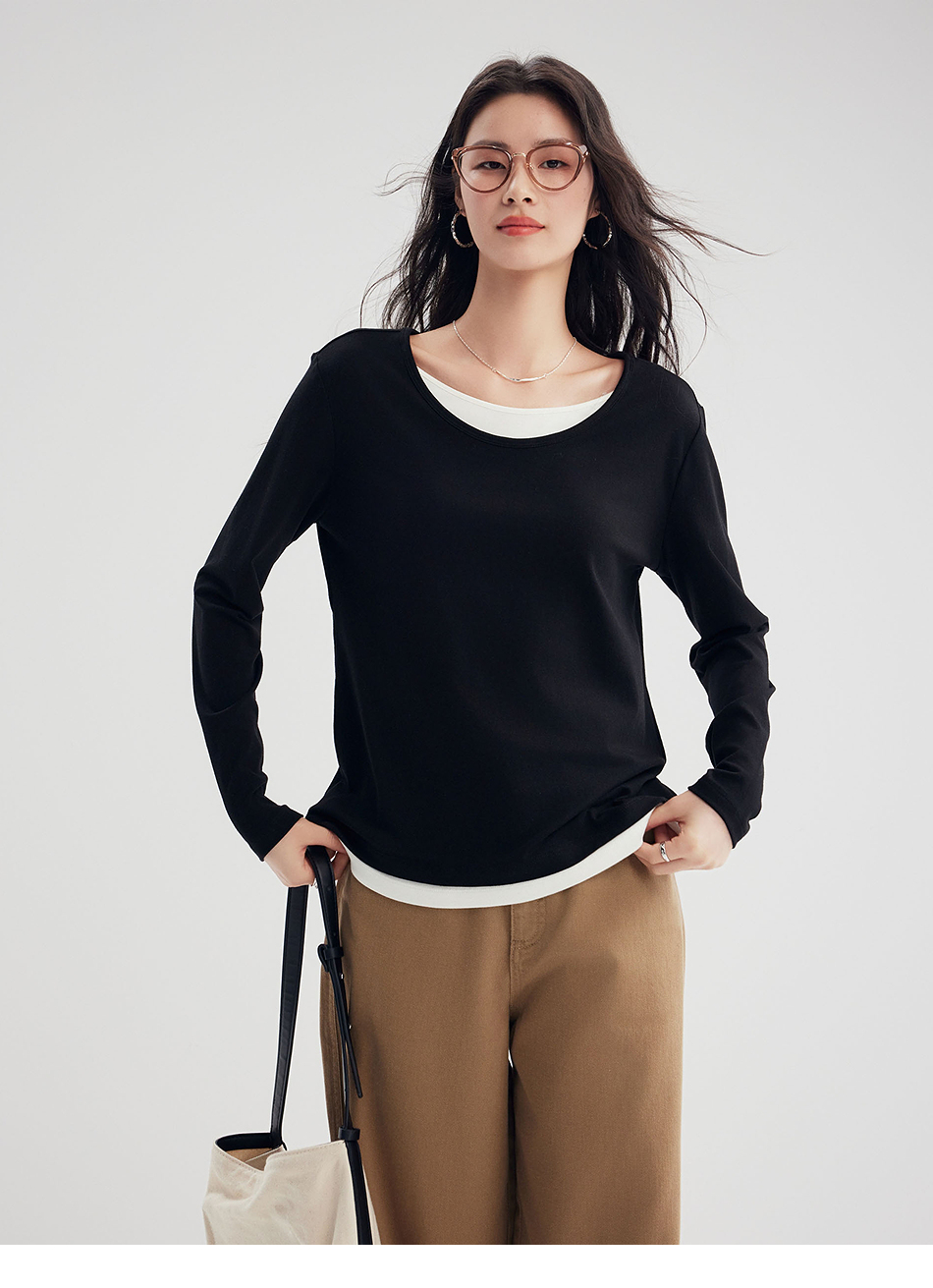 棉仓356801009-水波纹微宽松圆领长袖T恤