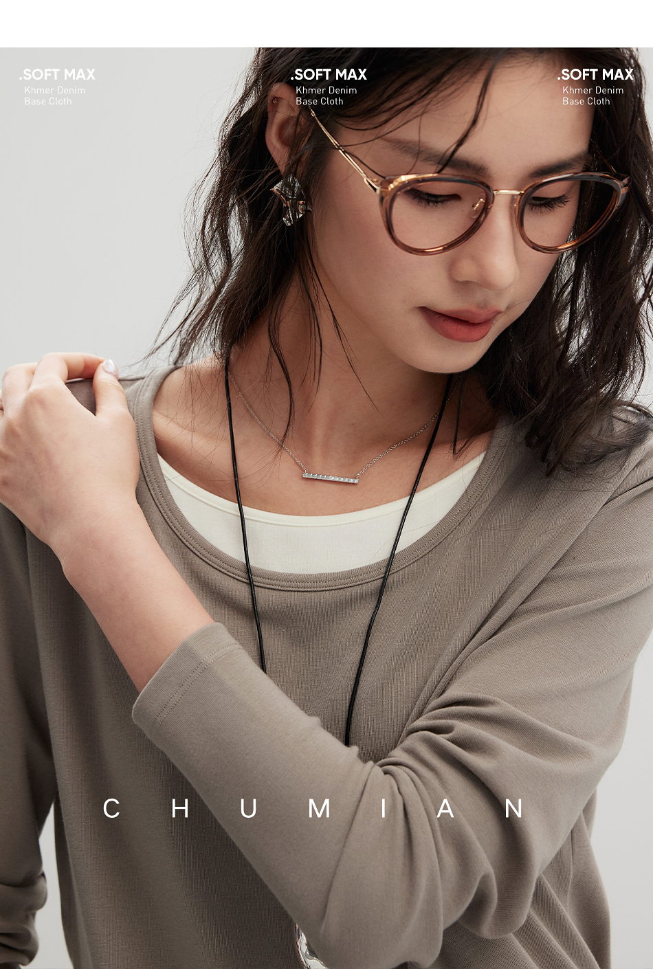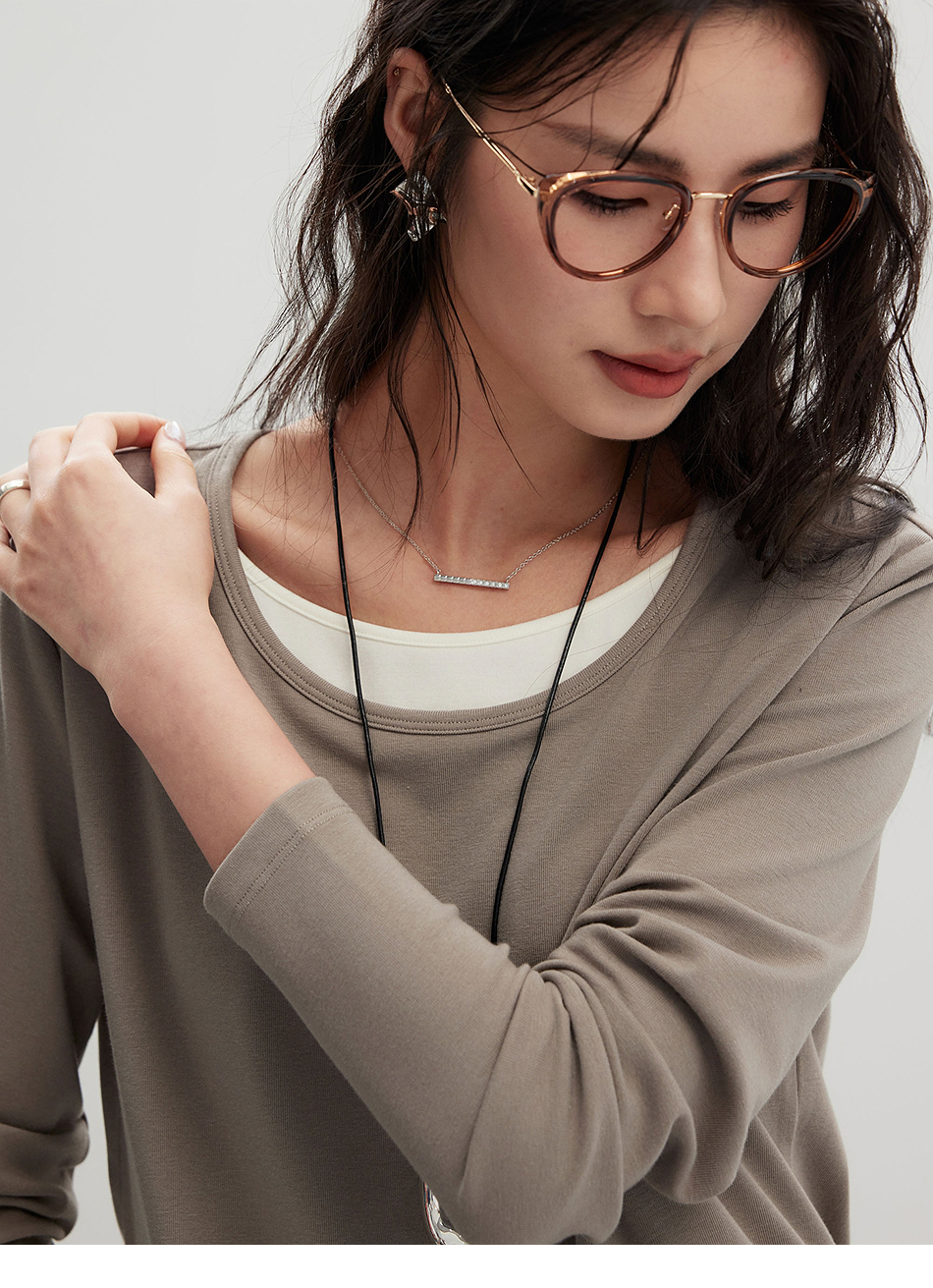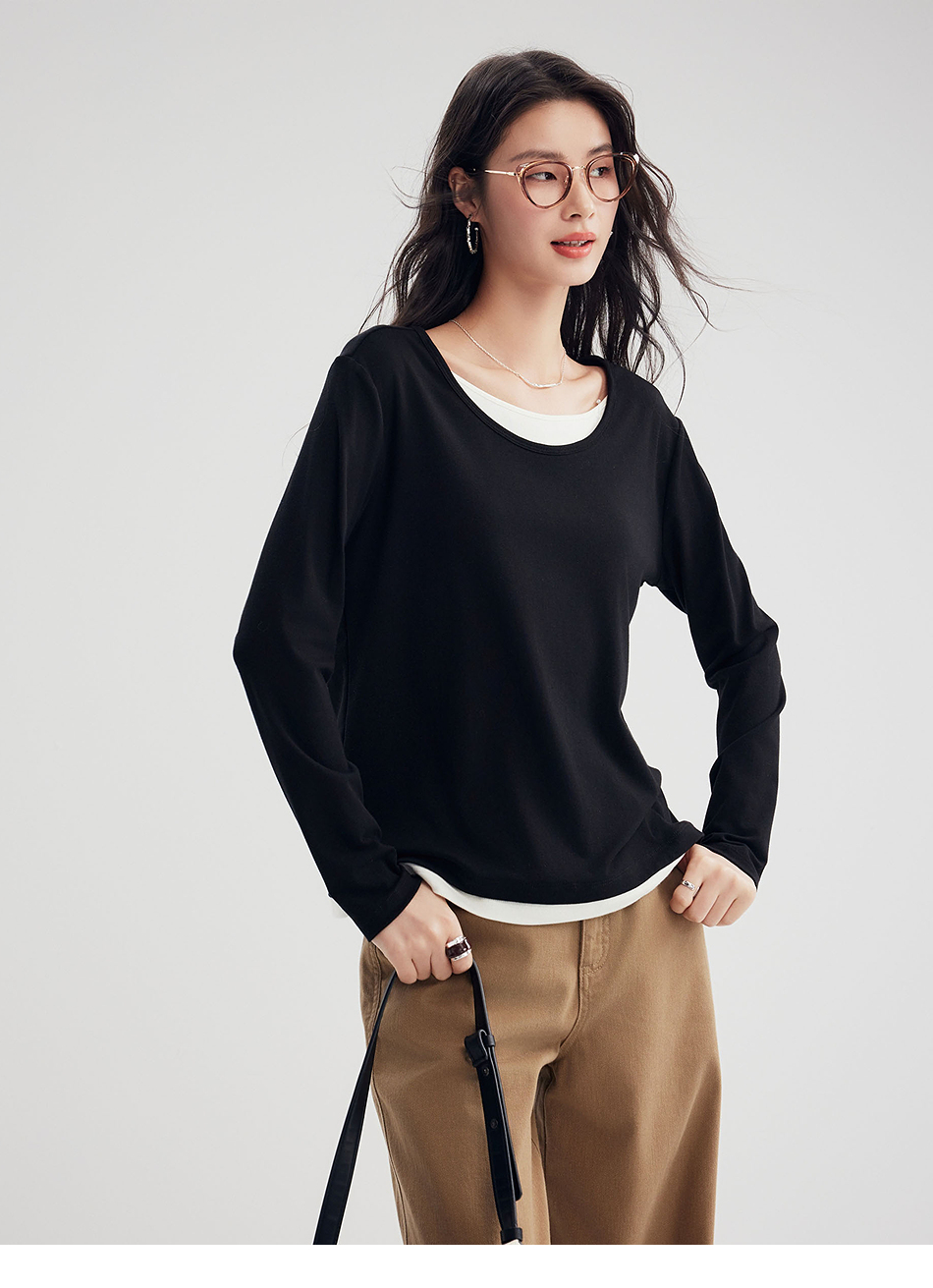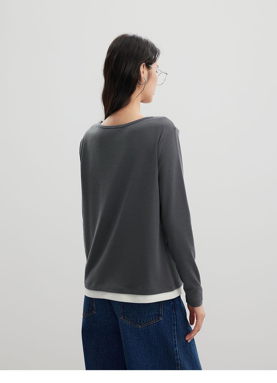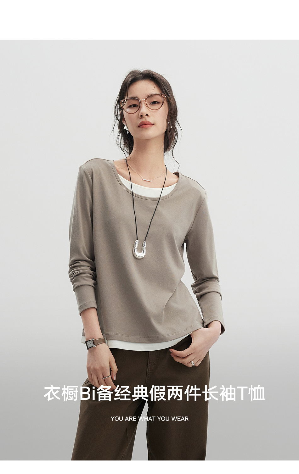 棉仓356801009-水波纹微宽松圆领长袖T恤