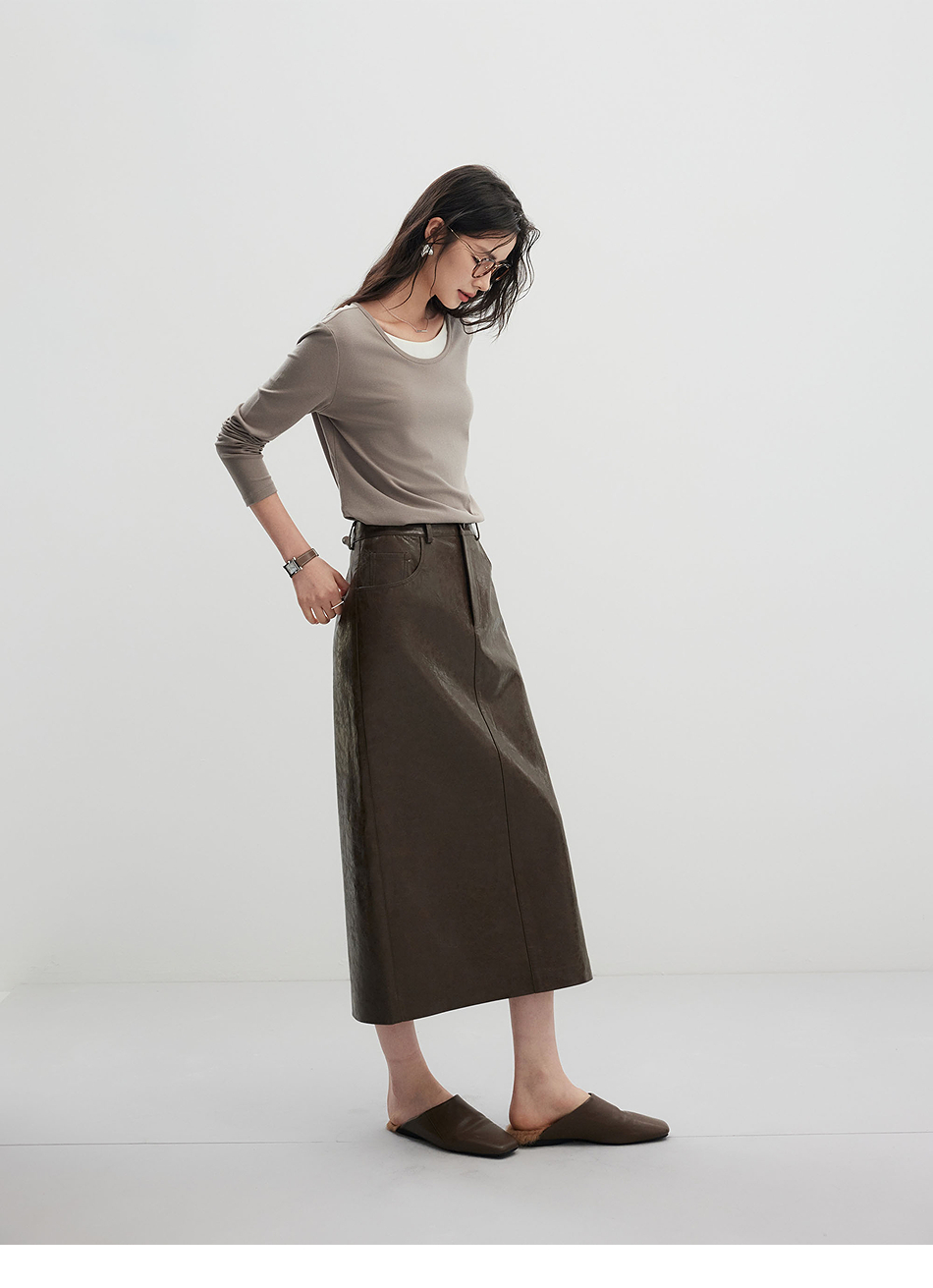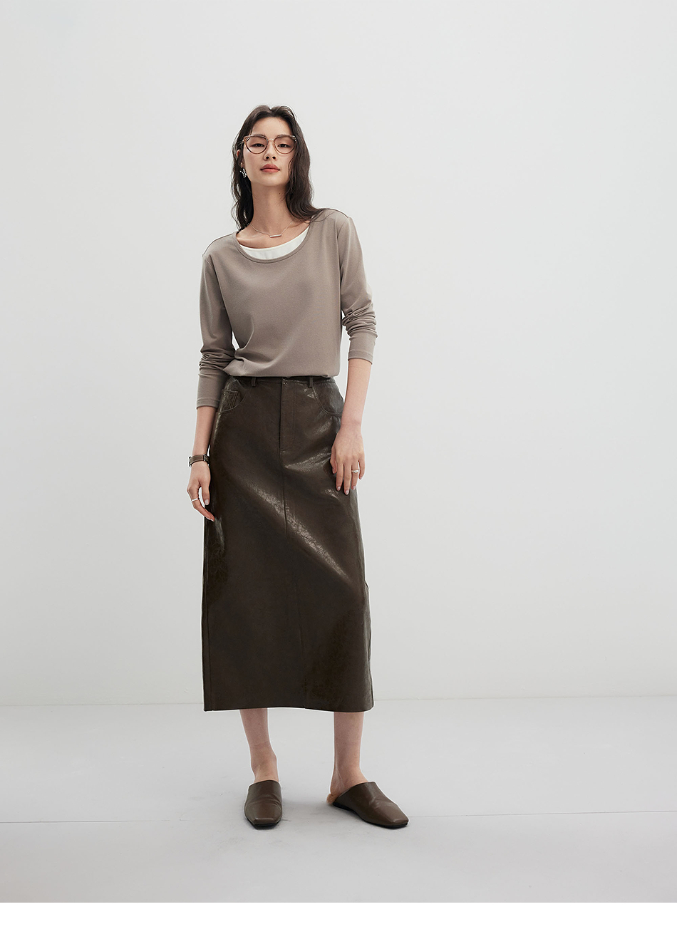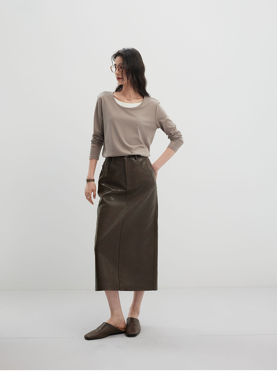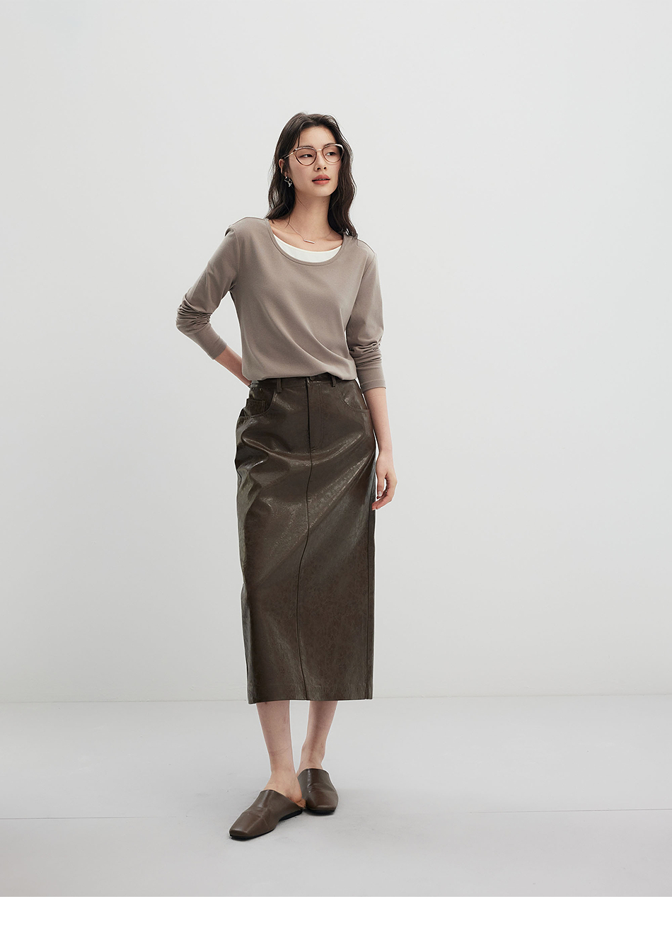 棉仓356801009-水波纹微宽松圆领长袖T恤