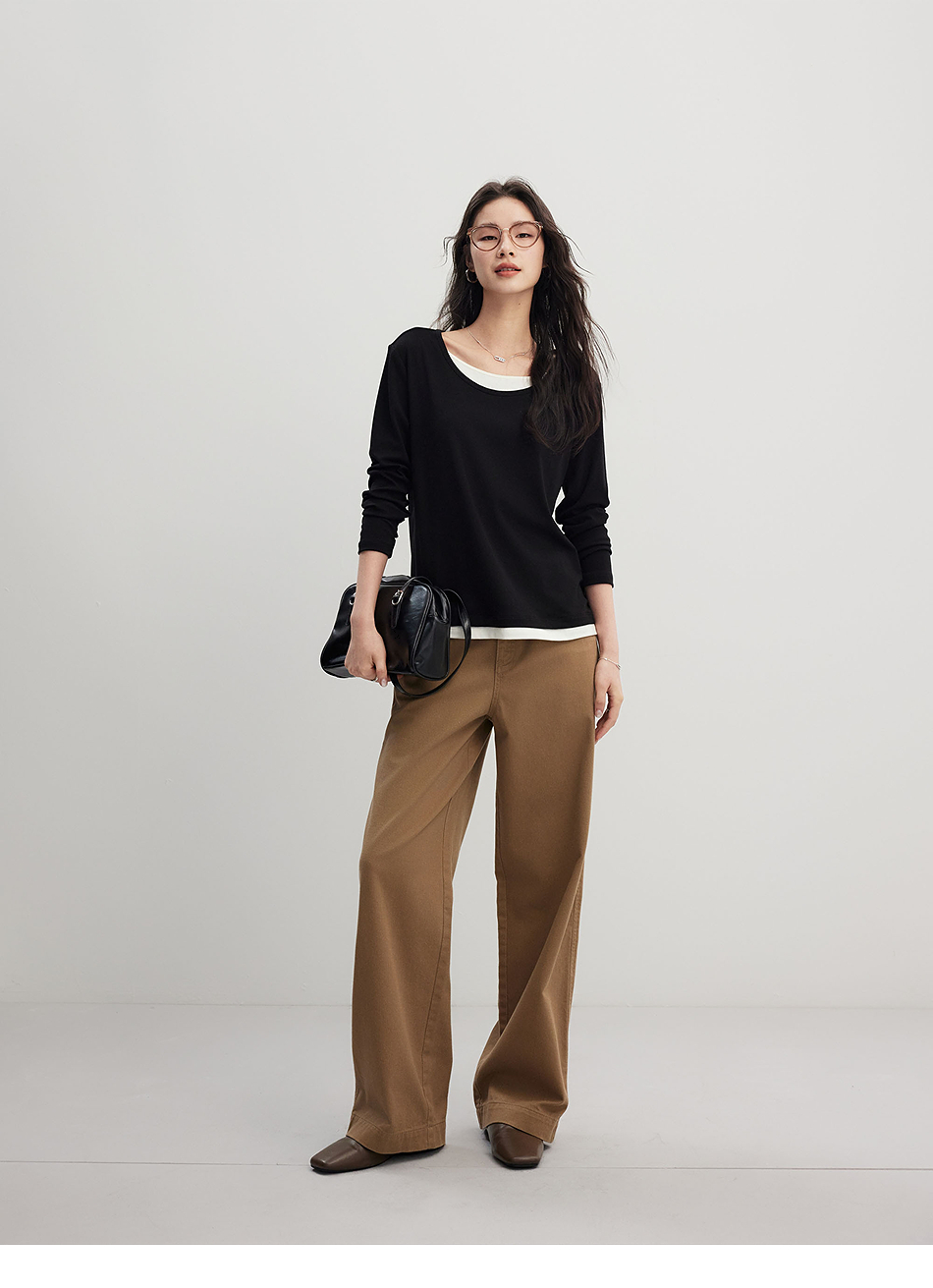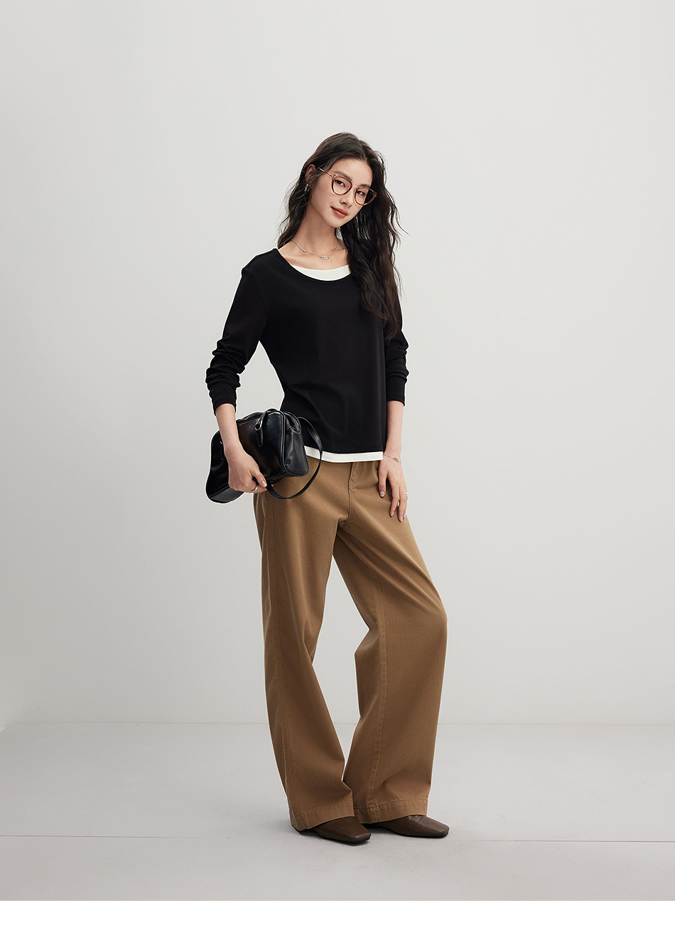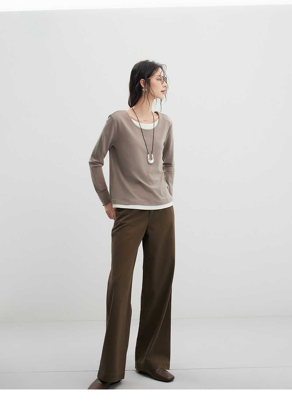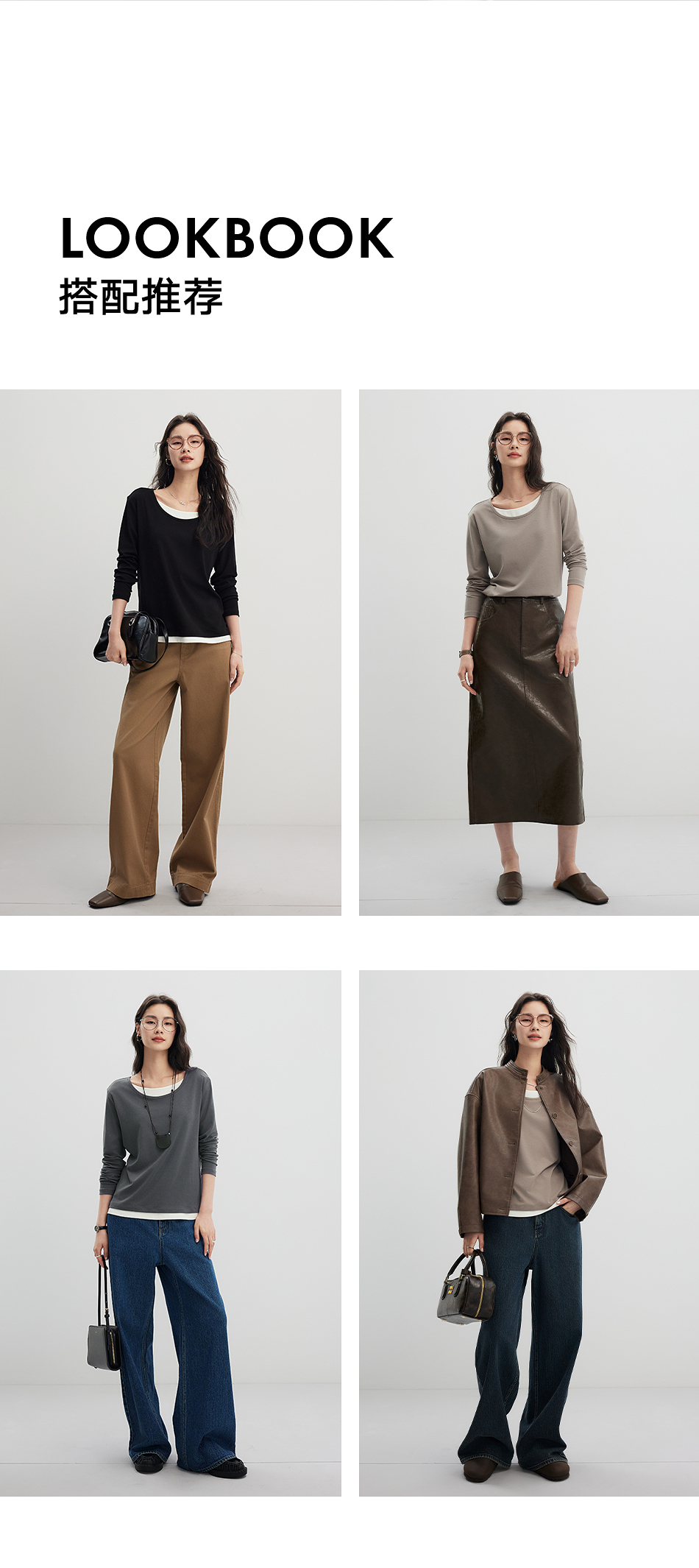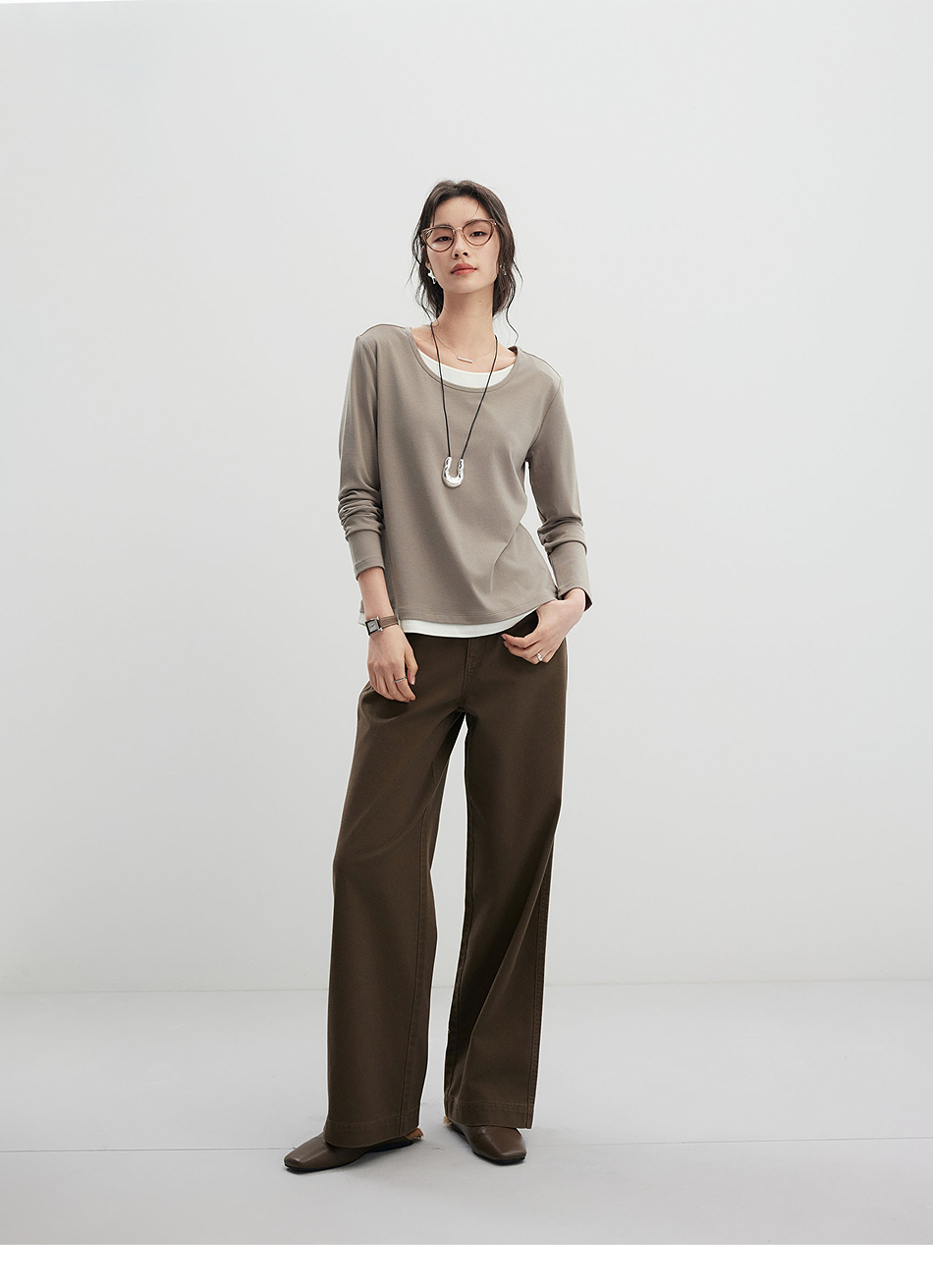 棉仓356801001 -法国罗纹微宽松长袖T恤