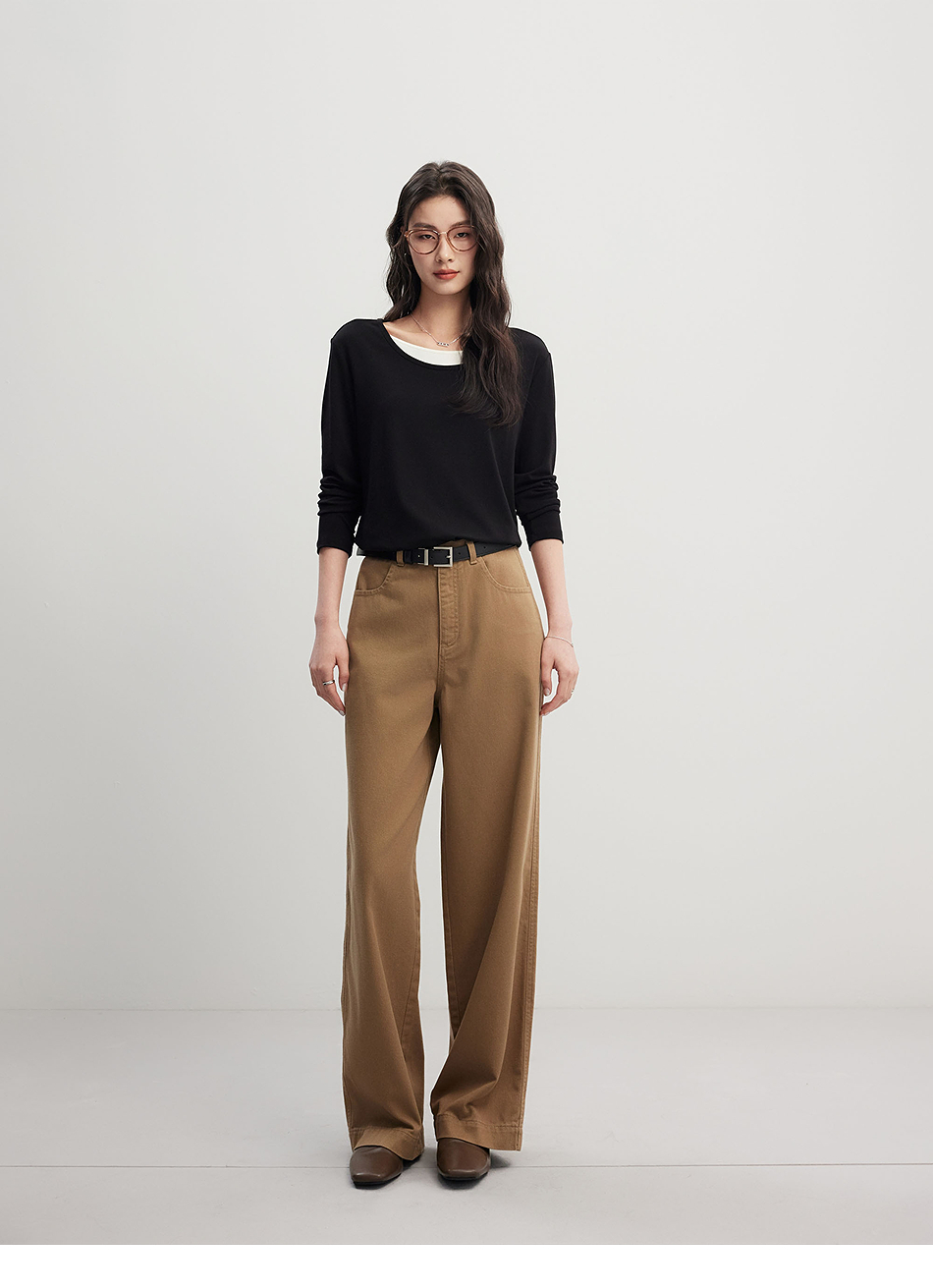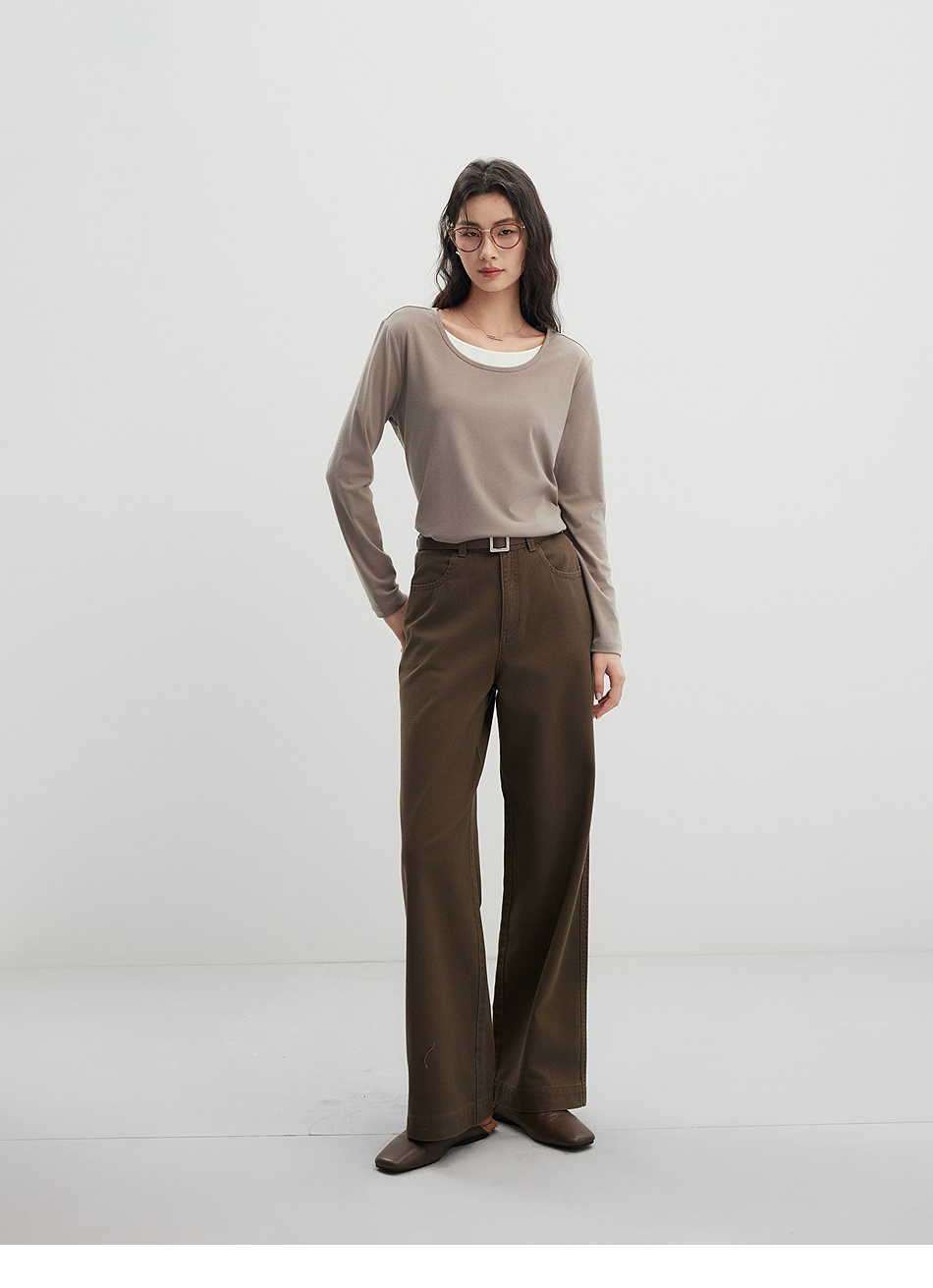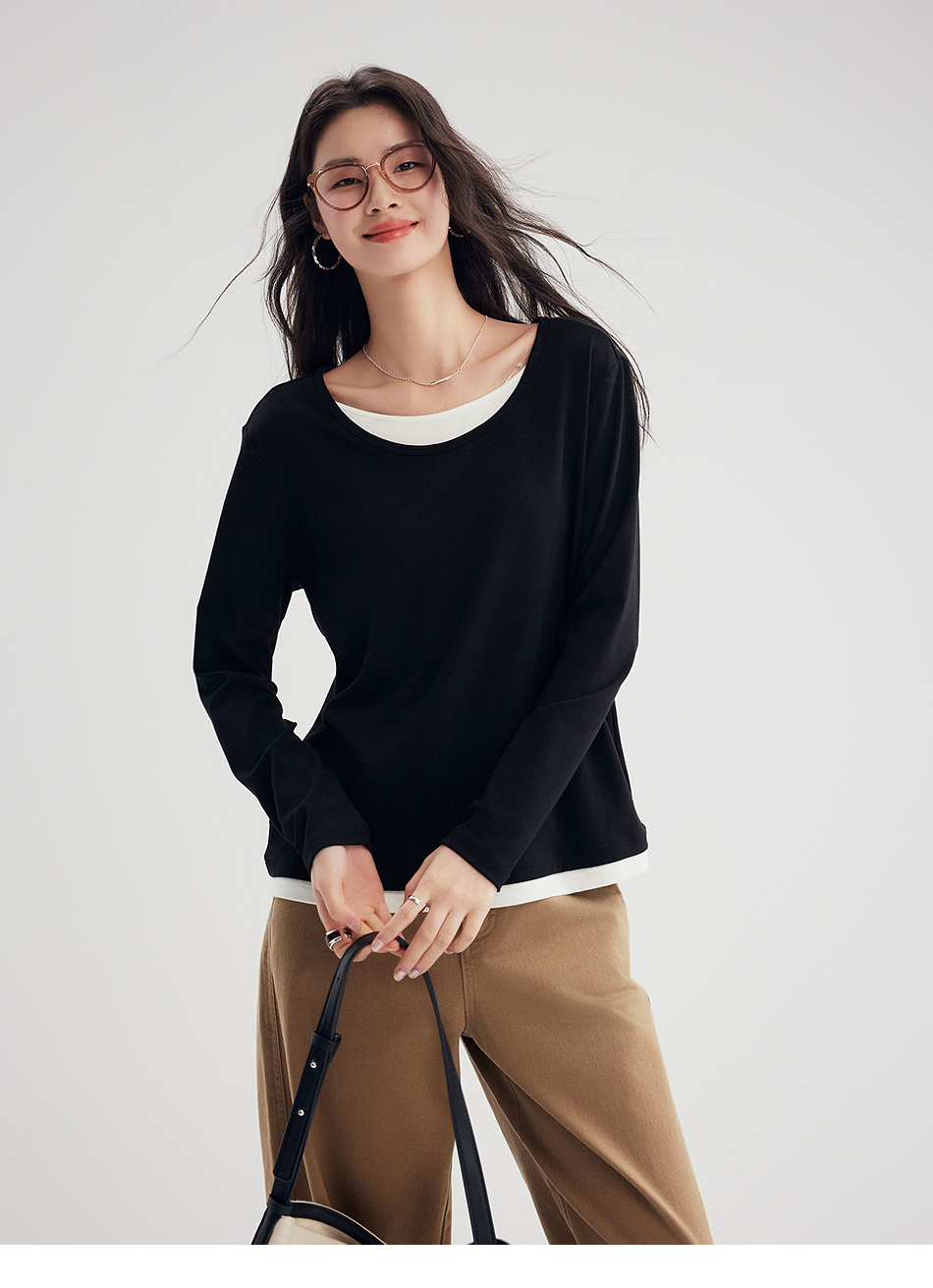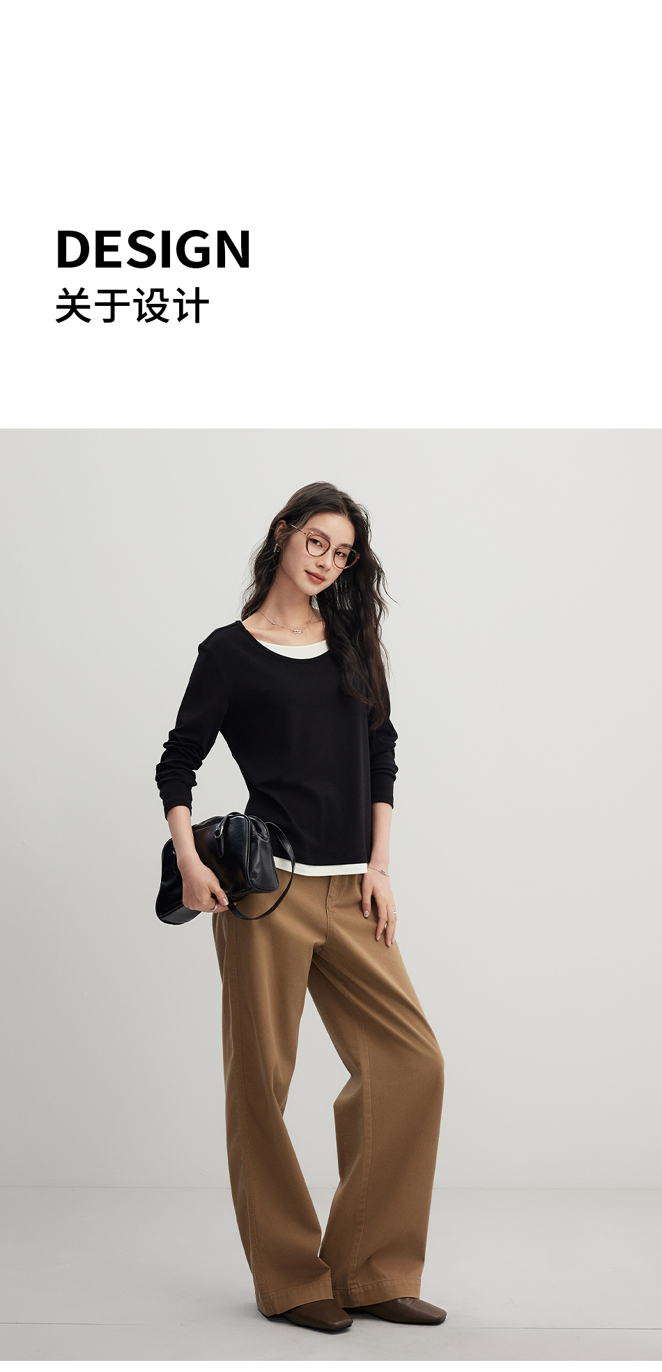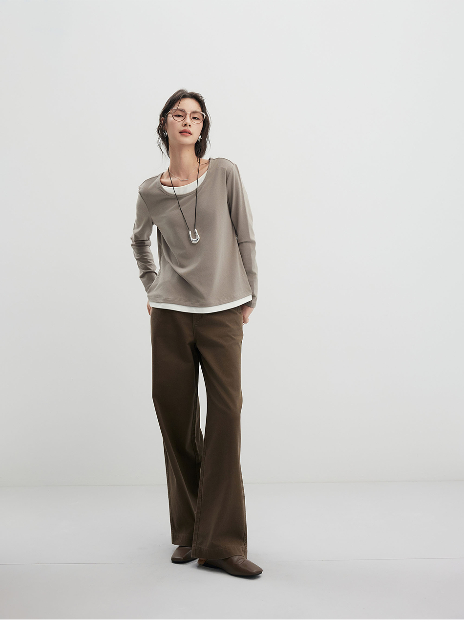 棉仓356801001 -法国罗纹微宽松长袖T恤