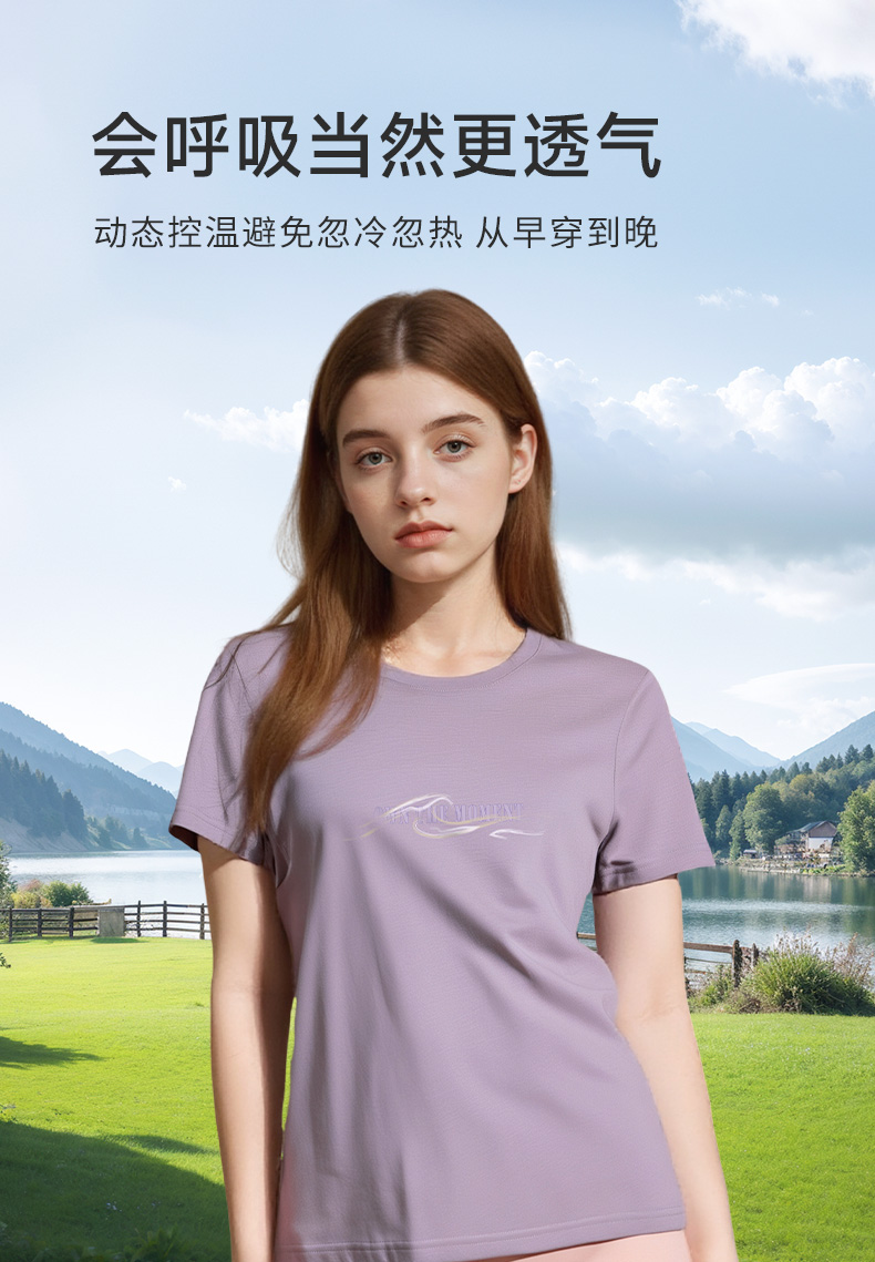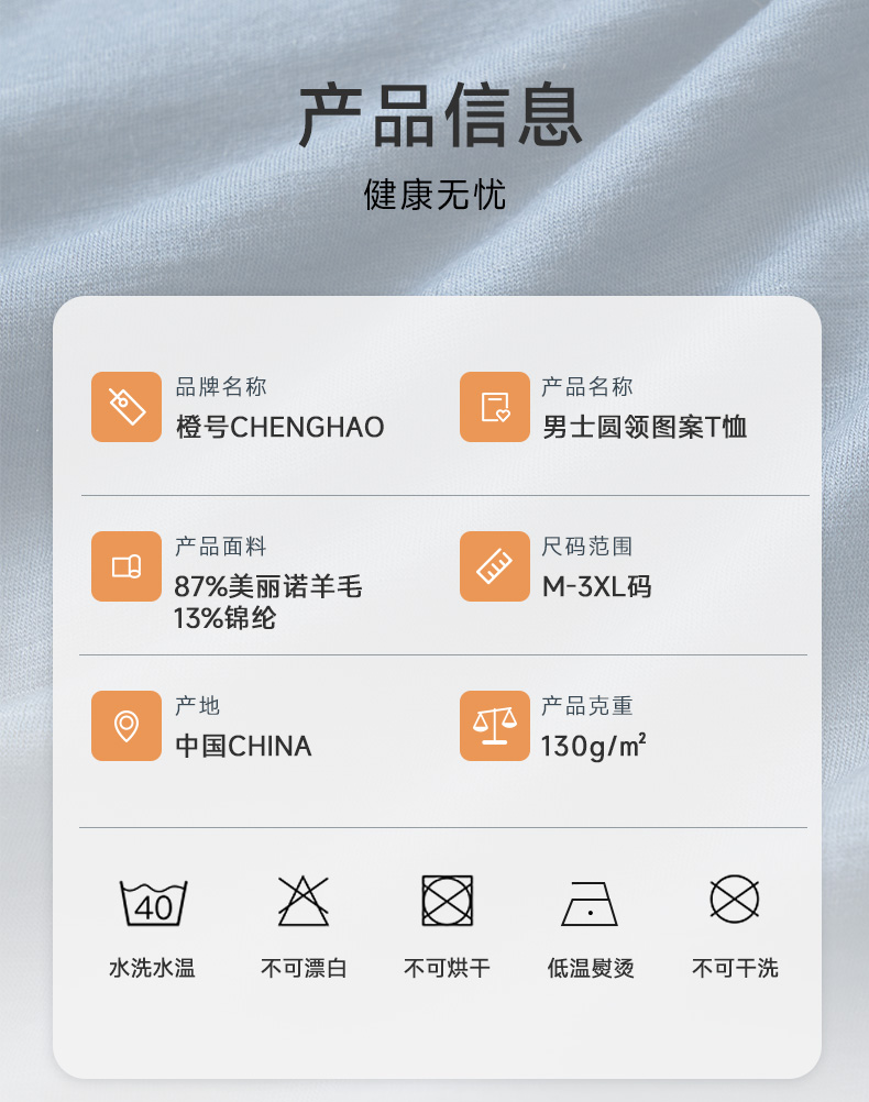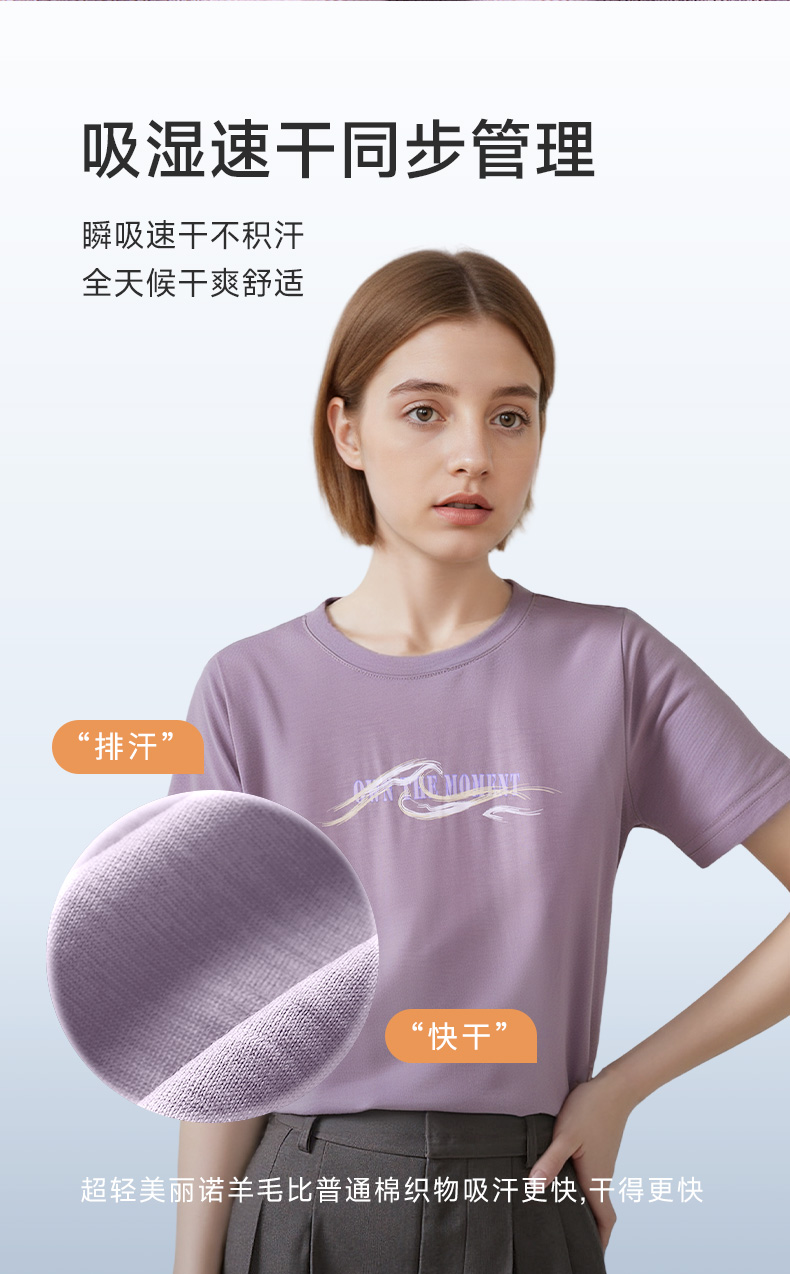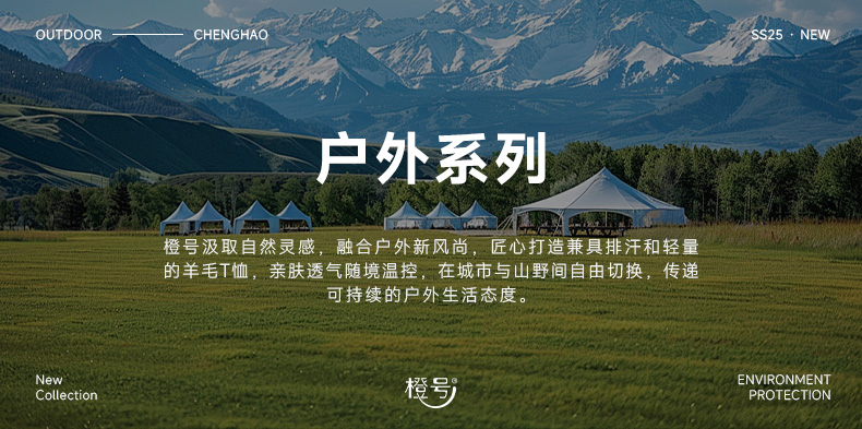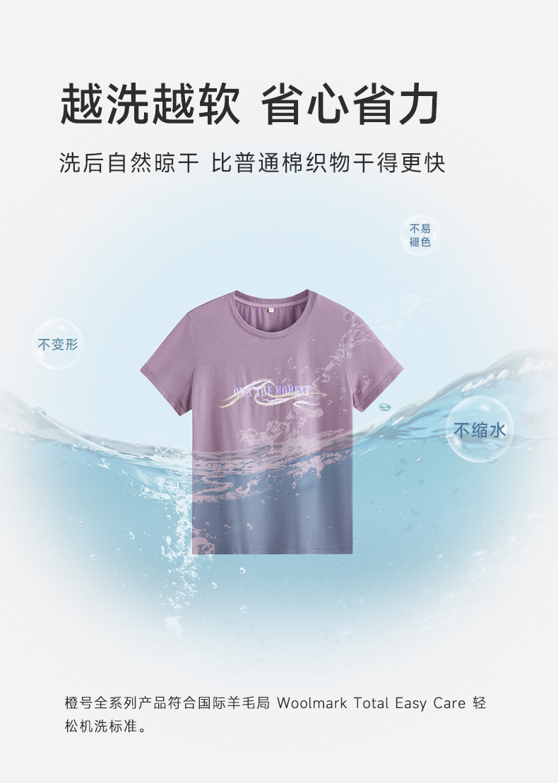 【户外系列】橙号 成人男士女士短袖海浪图案T恤 87%美丽诺羊毛 130g/㎡