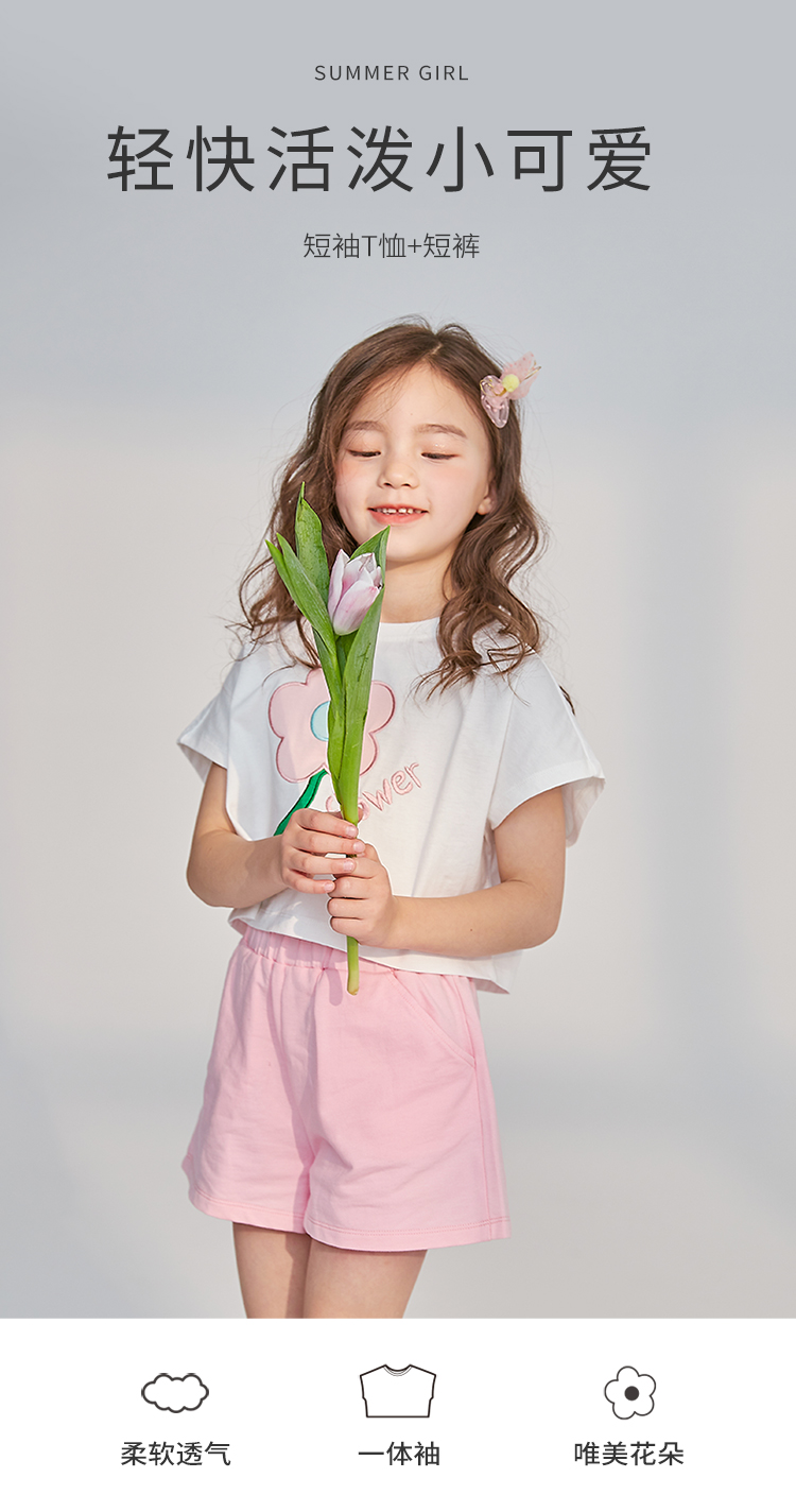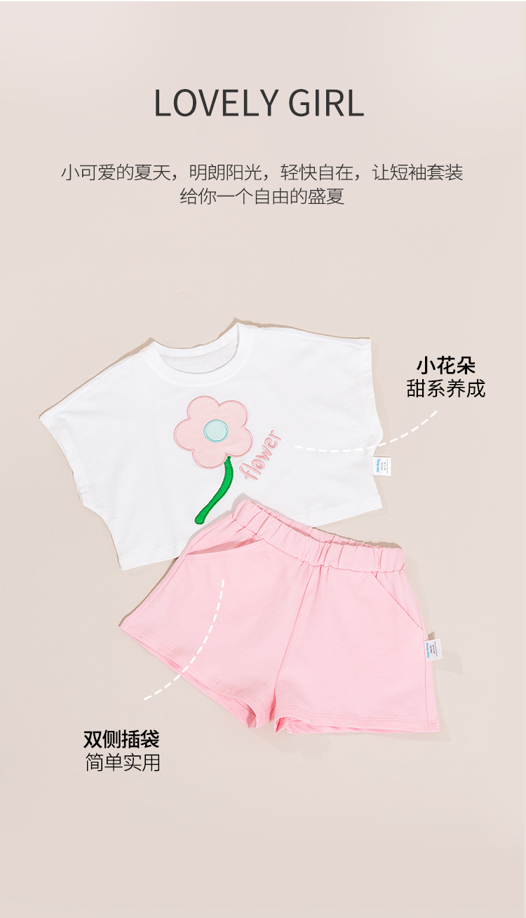 贝贝怡夏季新品女童短袖套装可爱甜美风两件套