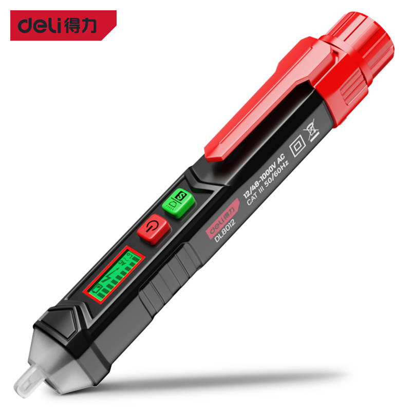 得力DL8012非接触式测电笔屏显12-1000V(红)