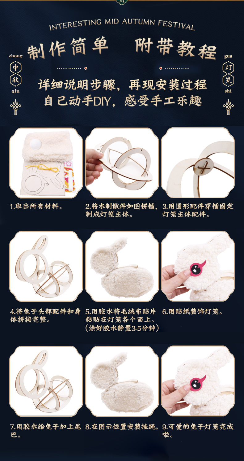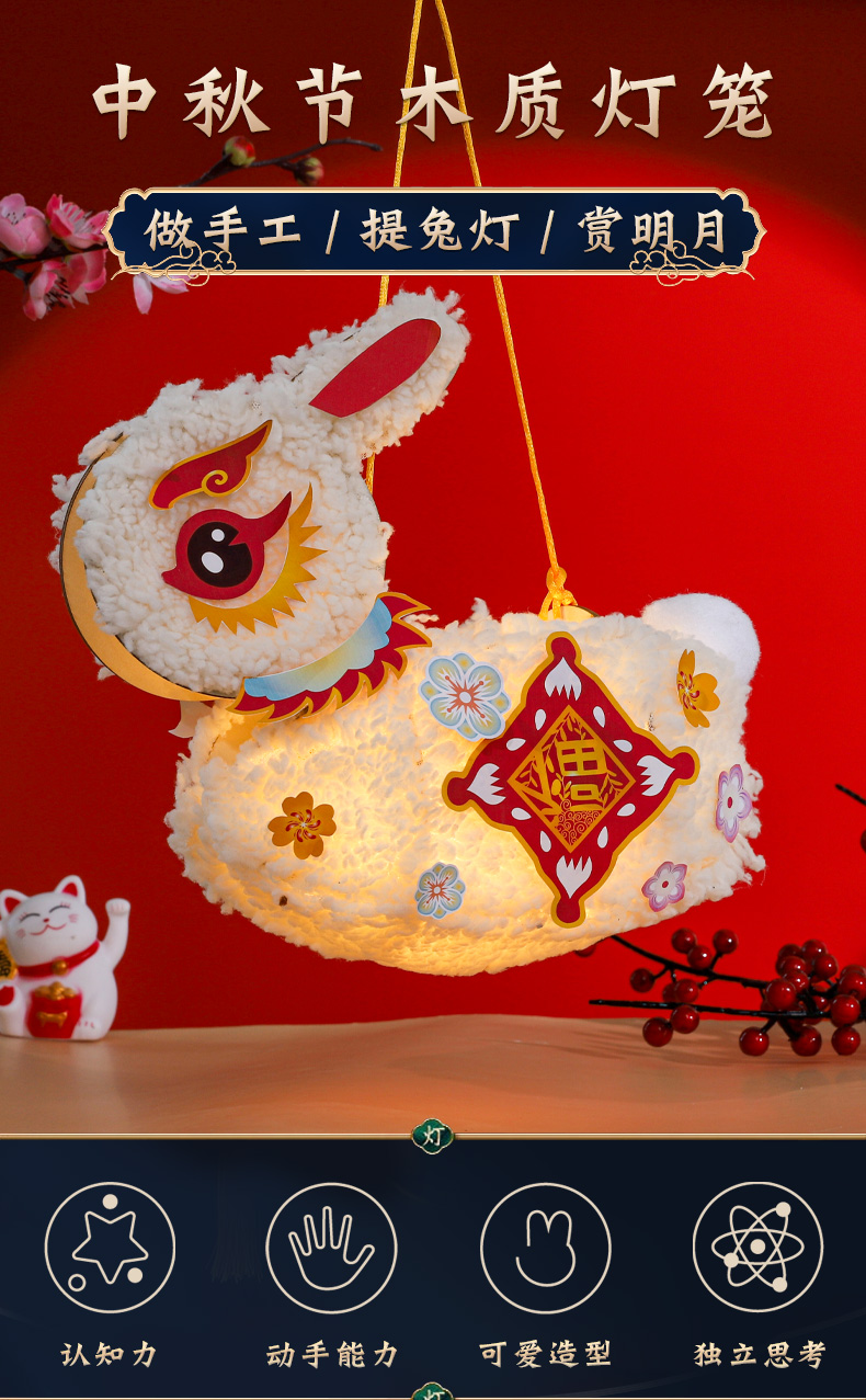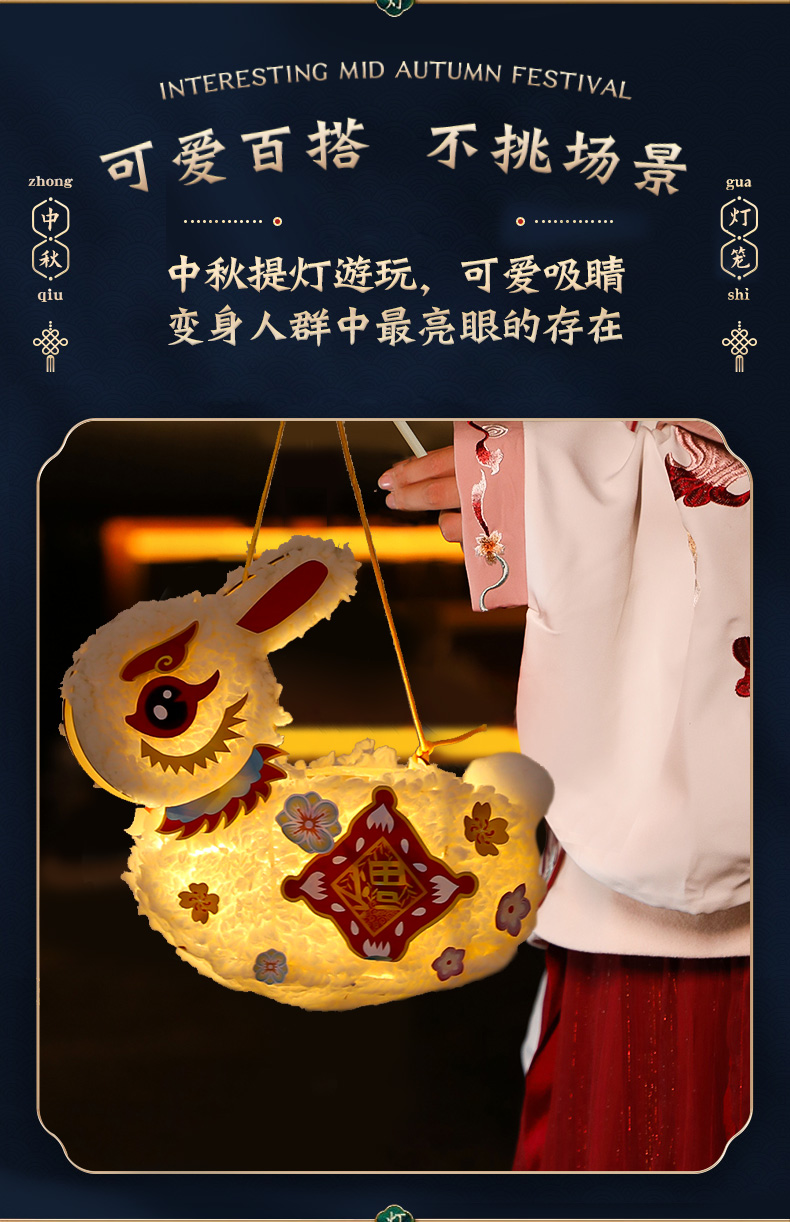 手工中秋灯笼 玉兔锦鲤发光灯笼