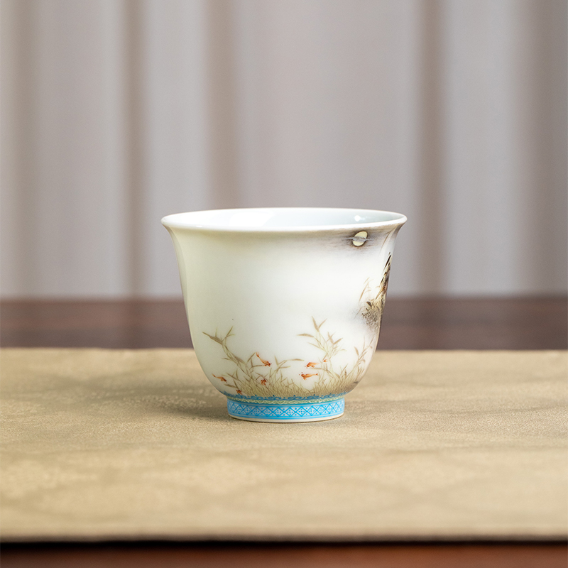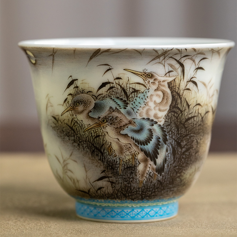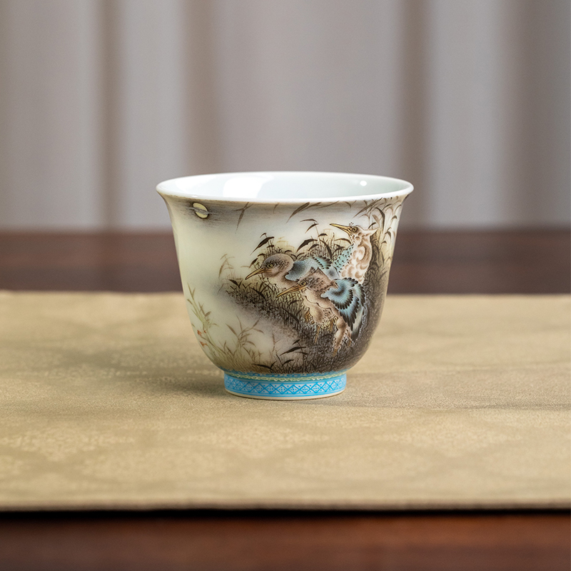一儒堂珐琅料边芦苇白鹭铃铛杯