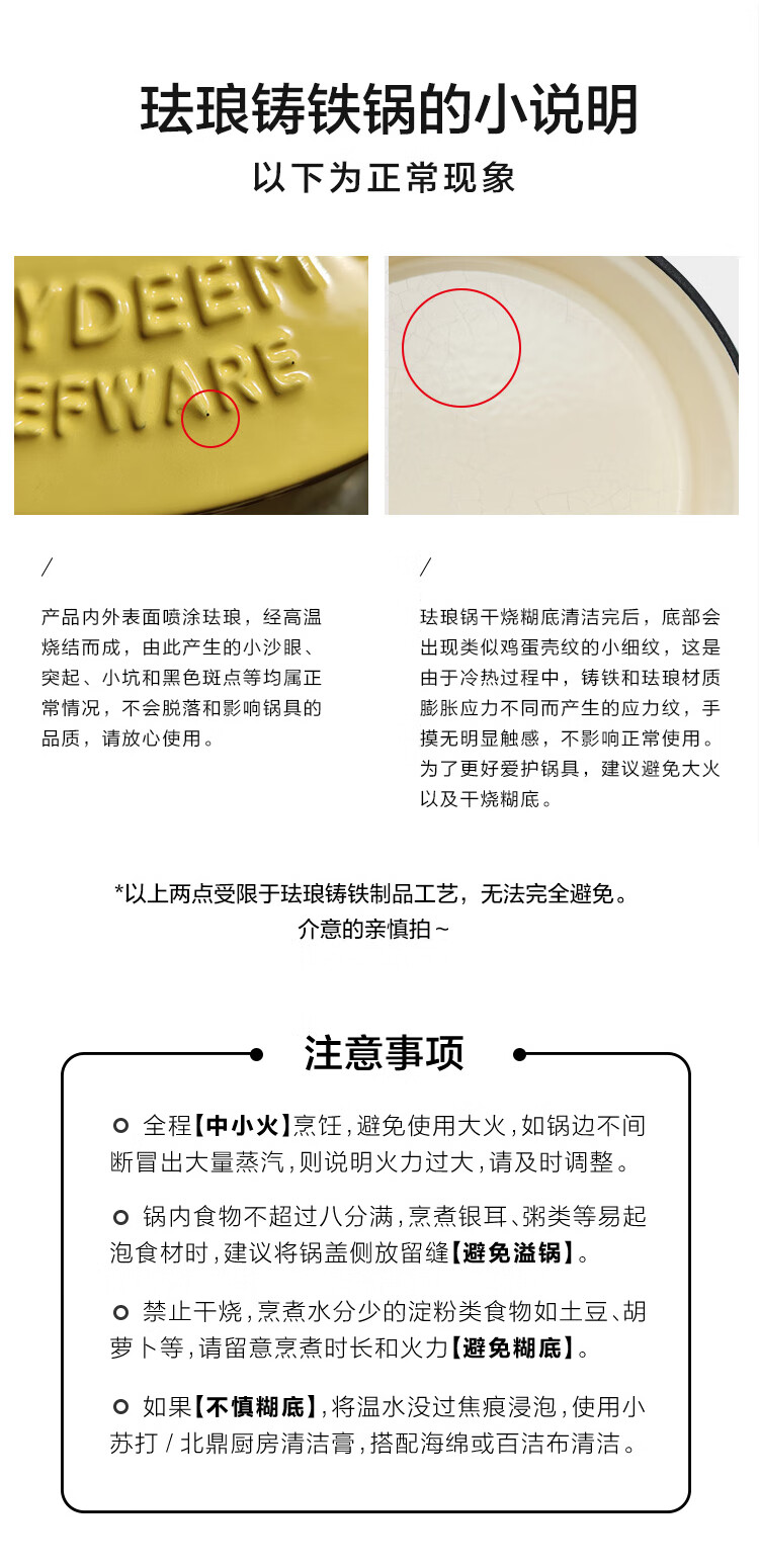 北鼎(Buydeem)珐琅锅铸铁锅CP551 黄色