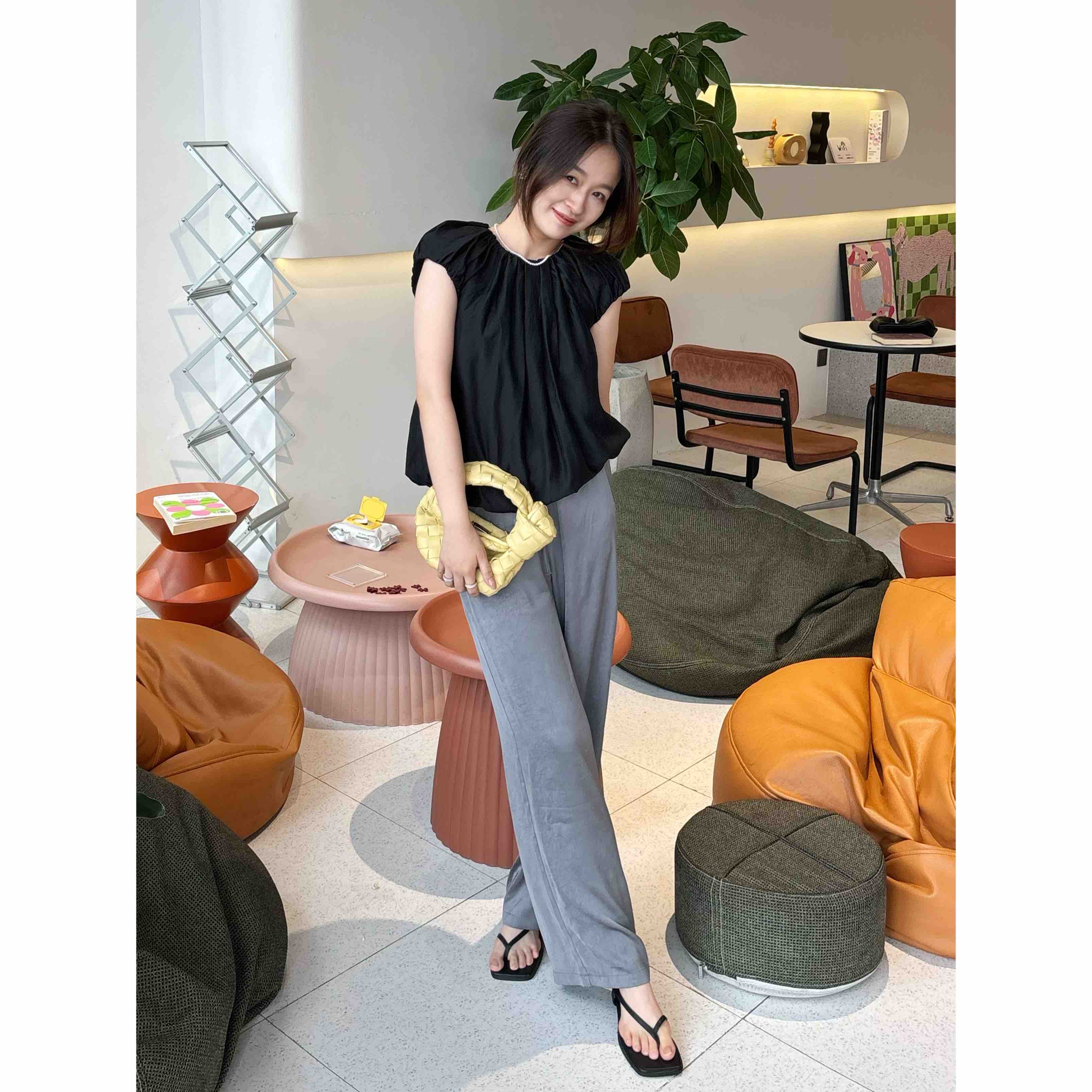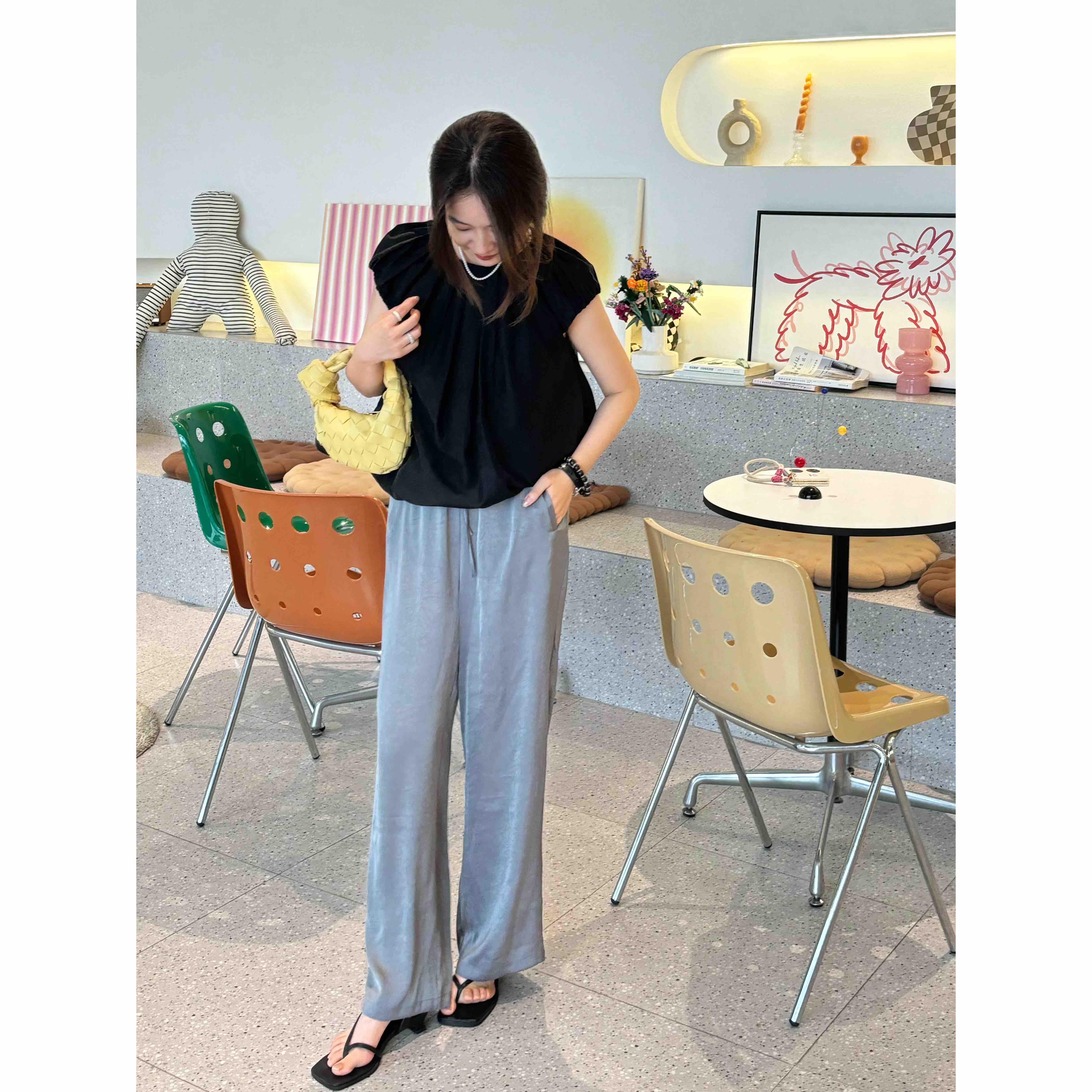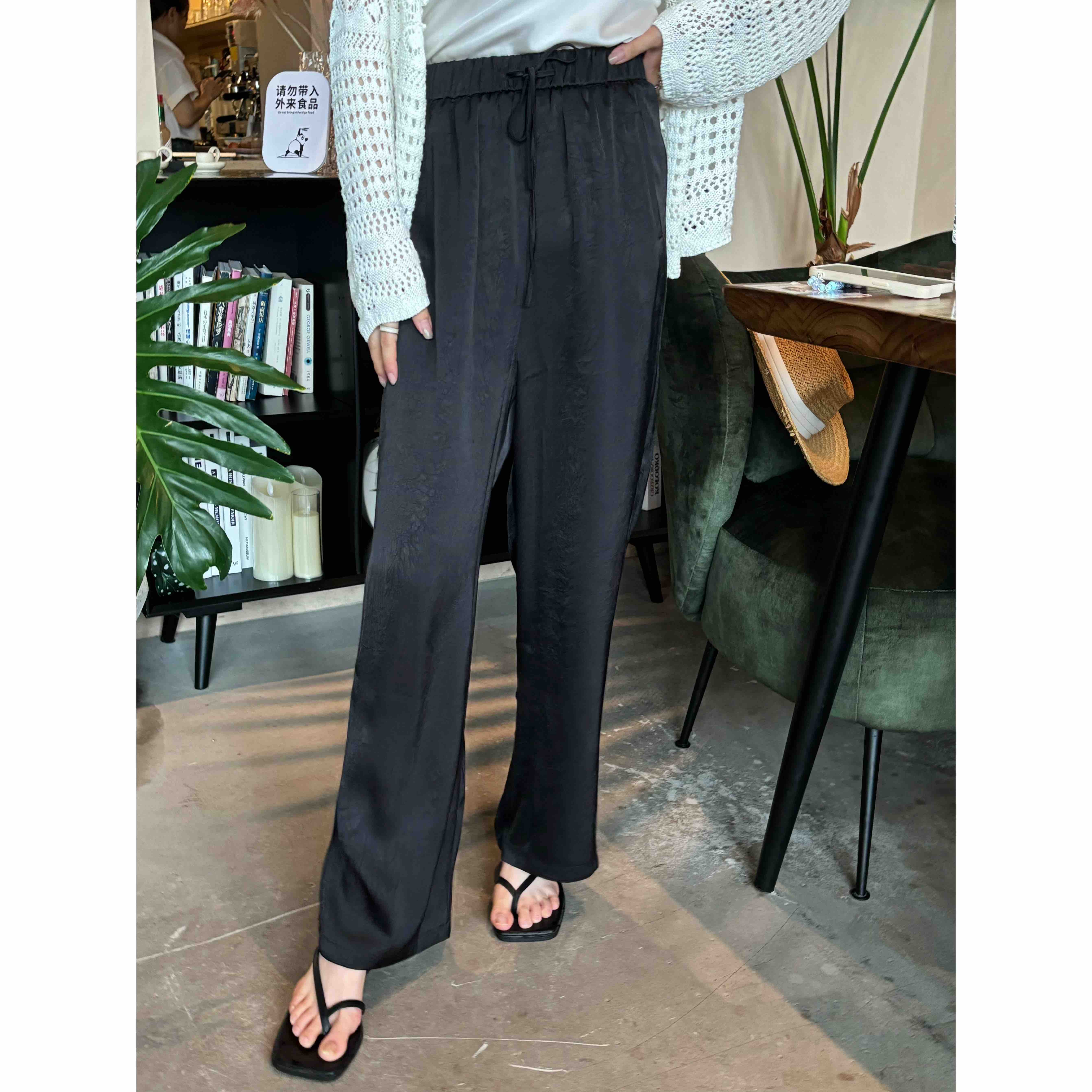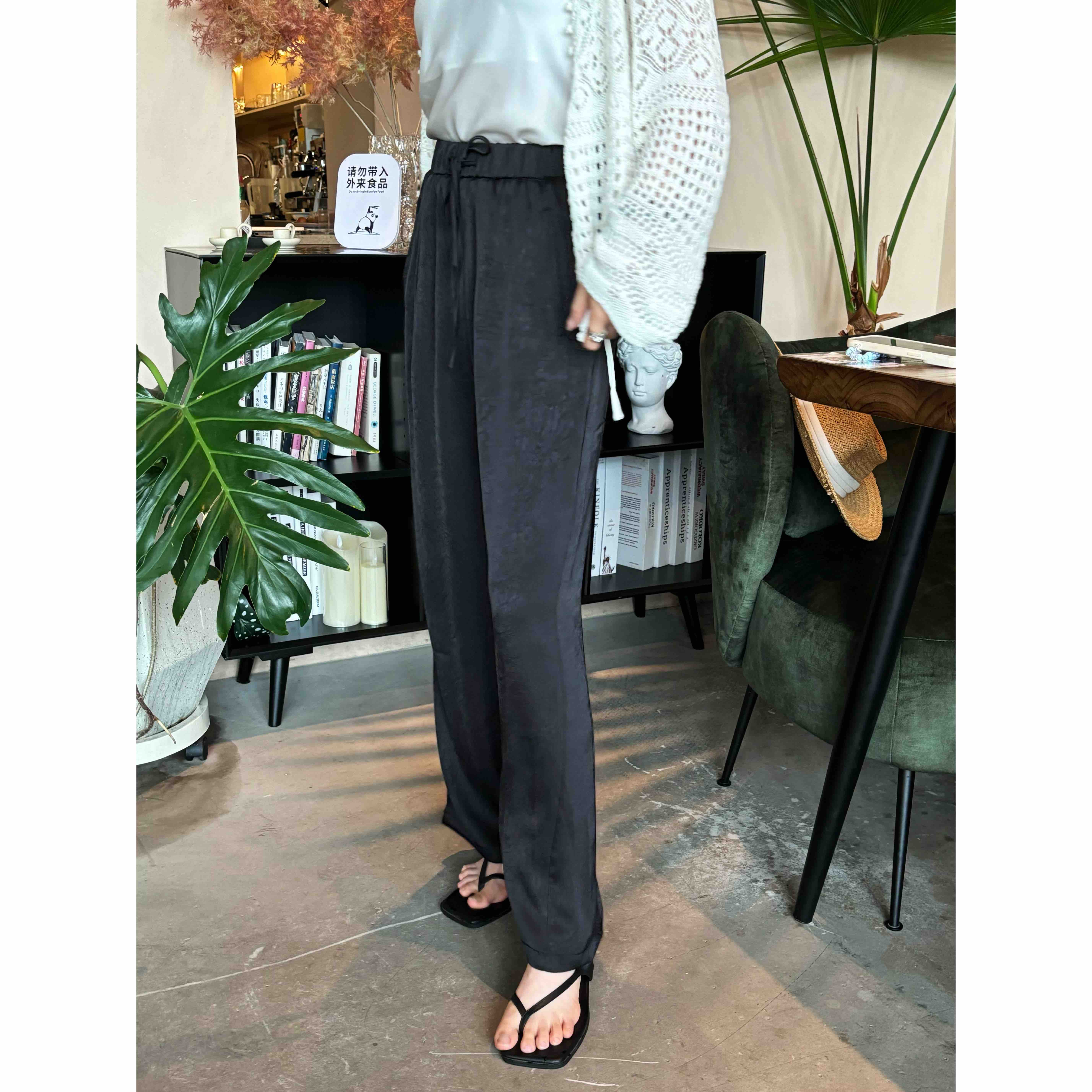 简直就是夏天神裤!!面料自带压褶子纹路,细看很高级。