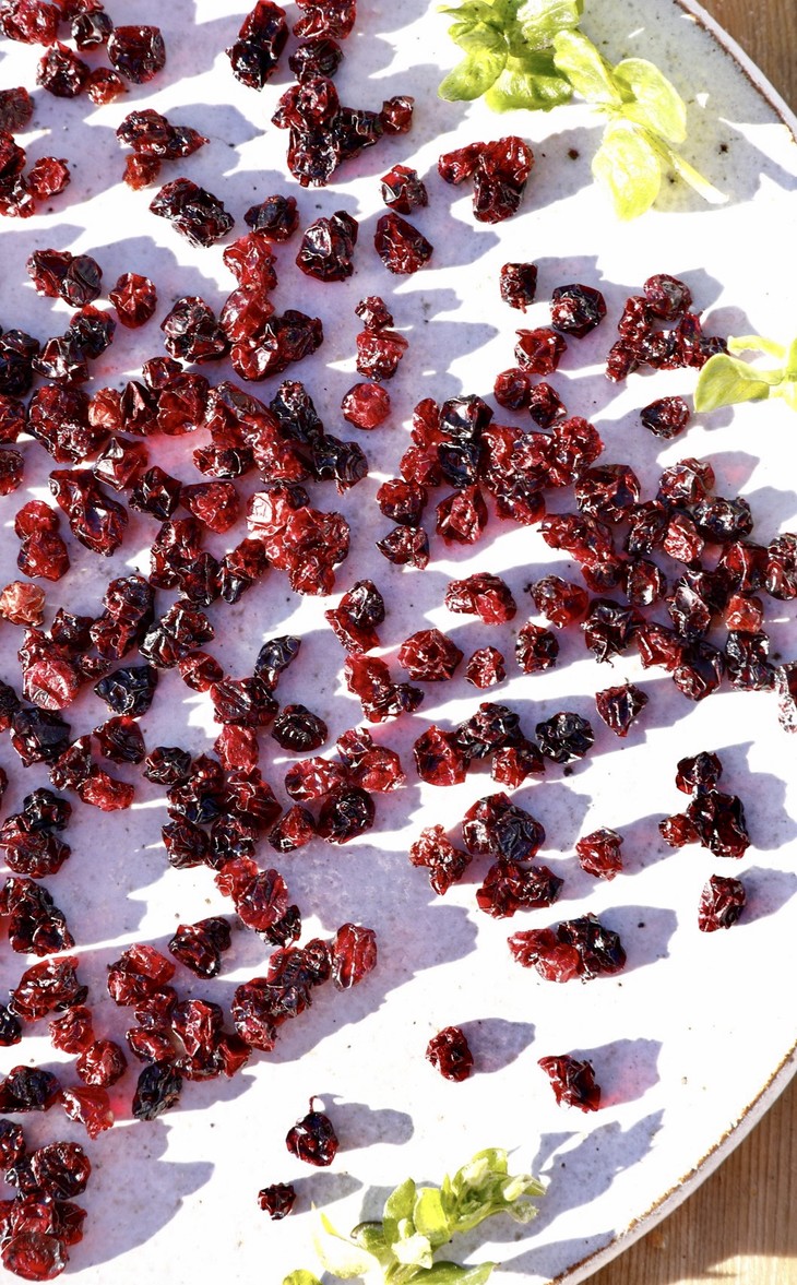 野果干有粘稠感,不是加糖多的原因,是因为没有加入植物油。添加植物油可以使果干光泽度提高,颗粒之间不粘连,提升产品卖相。农友权衡后觉得植物油易氧化,时间长了影响健康,而且会让果干损失鲜活的山野气息,所以就没有添加。保留着野果真正的养分,是对身体有益处的自然食品。