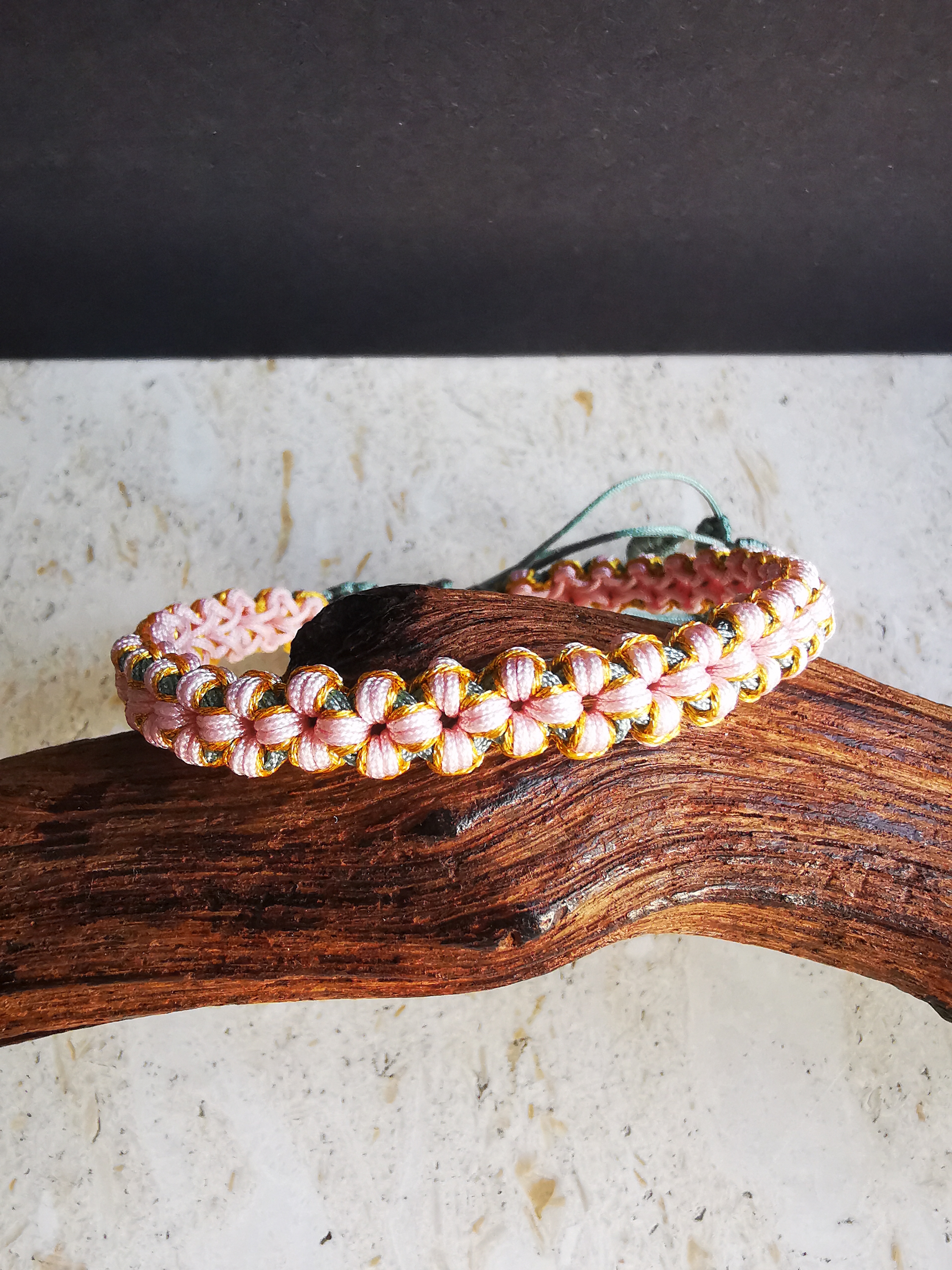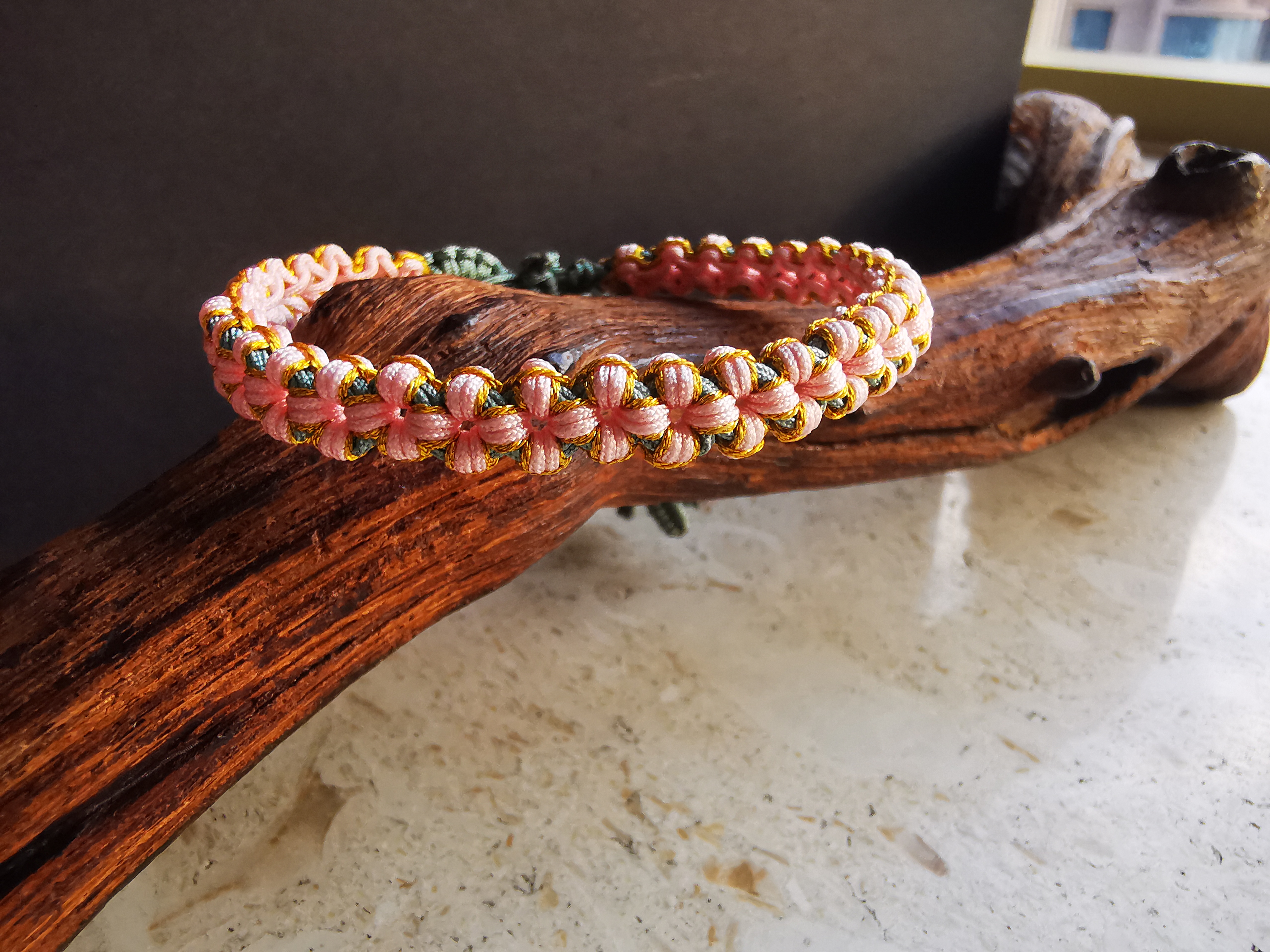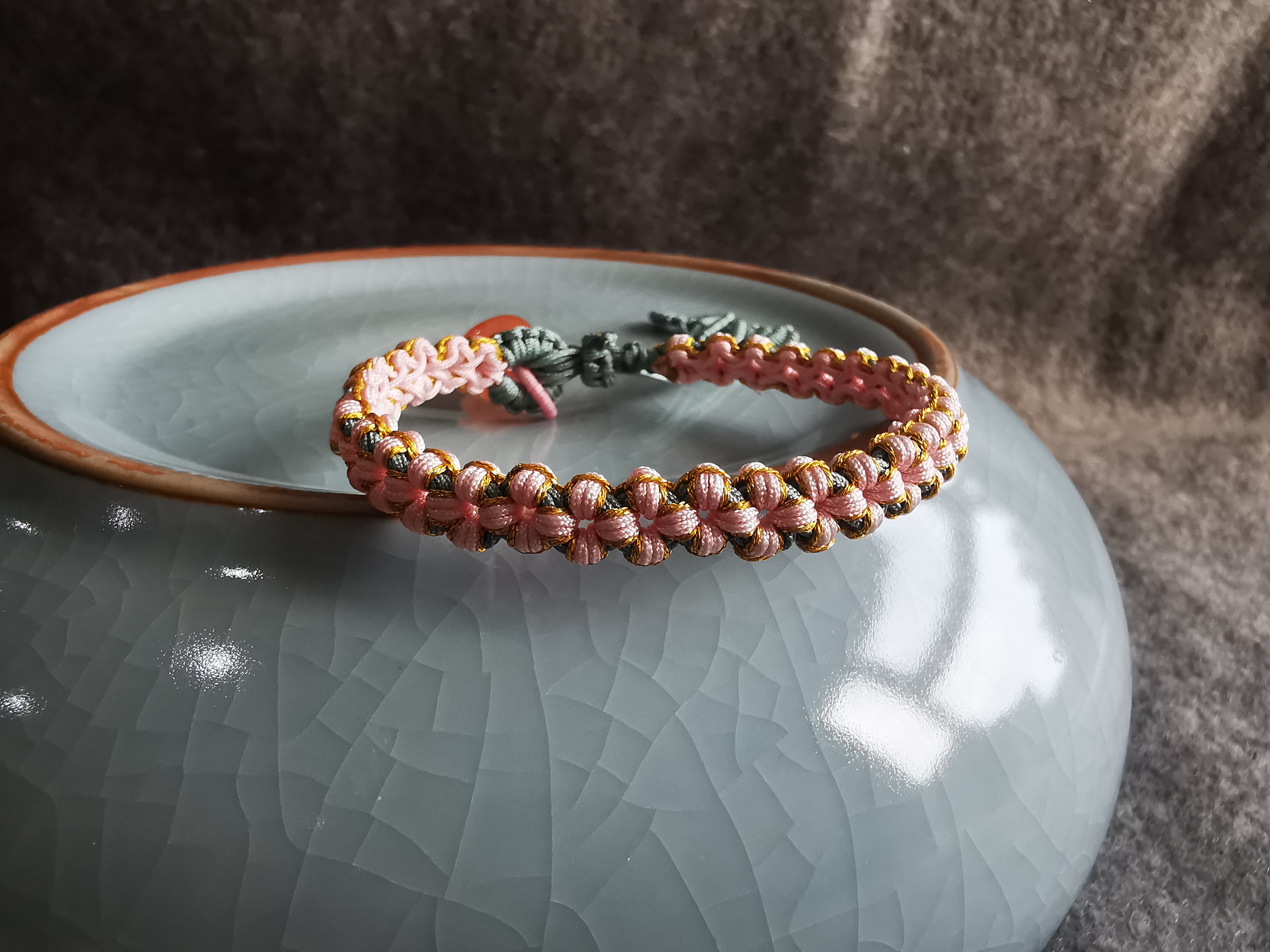 桃花结手绳,因全部纯手工编织需一定时间,按订单顺序三日内发货。手绳大小不可调节的,可以留言定制大小,略有误差,定制产品不接受无理由退货哦,介意勿拍。