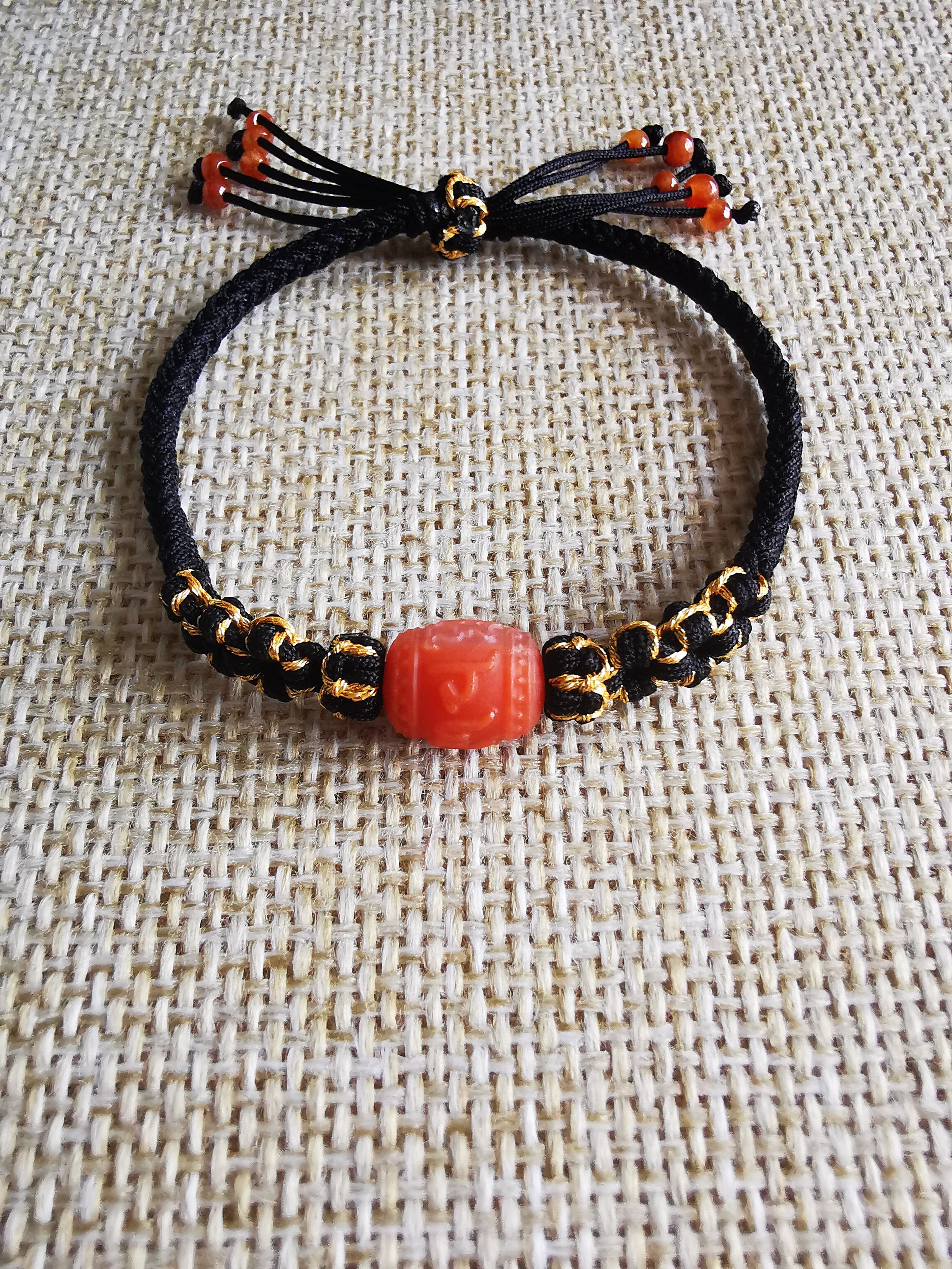 精选南红六字真言。纯手工精心编织中国结黑金桃花结。