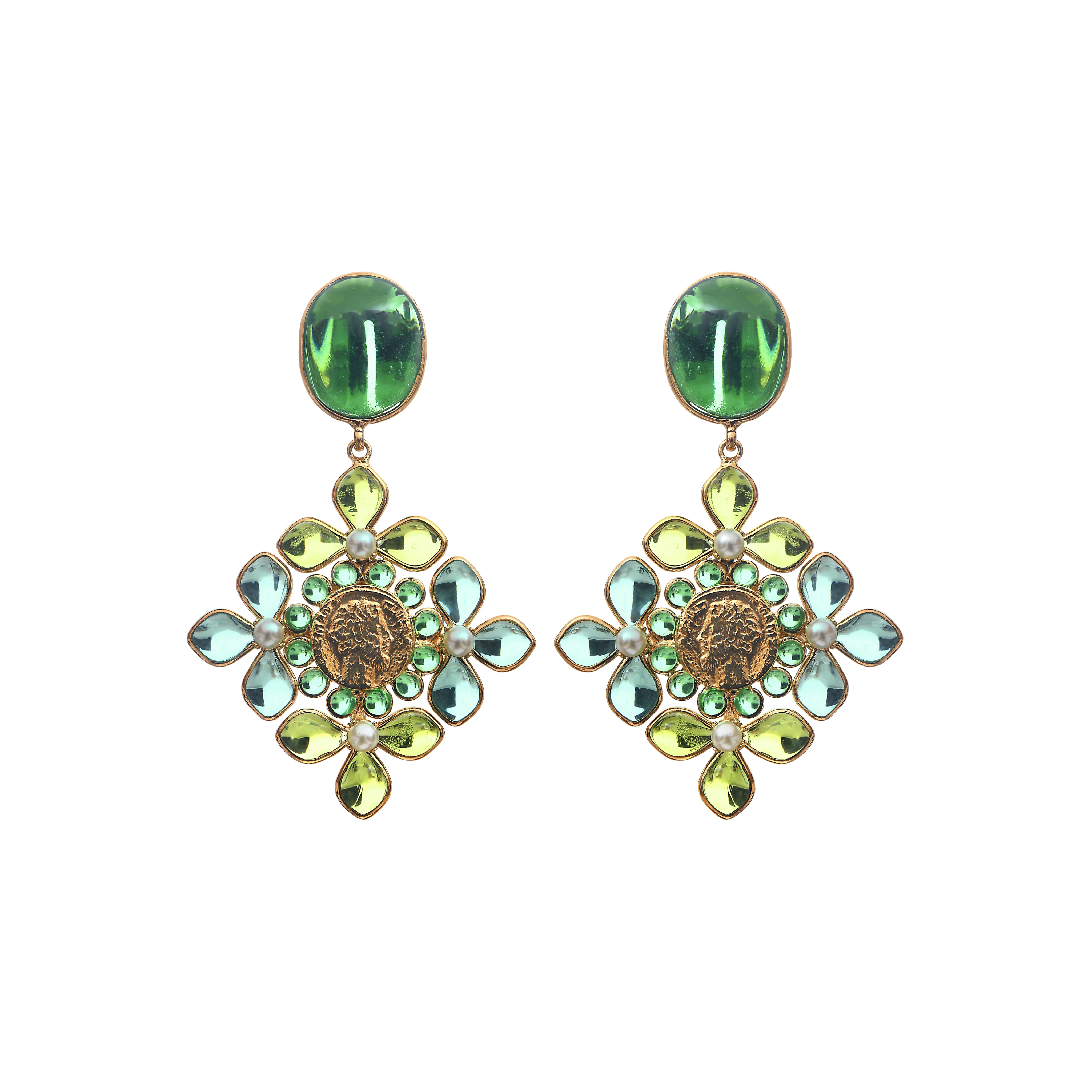 订购6个月到|Gripoix Paris-Summer in Greece-绿色 花朵琉璃 琉璃珍珠 耳环[法国设计师]