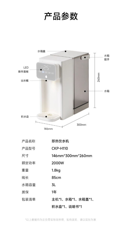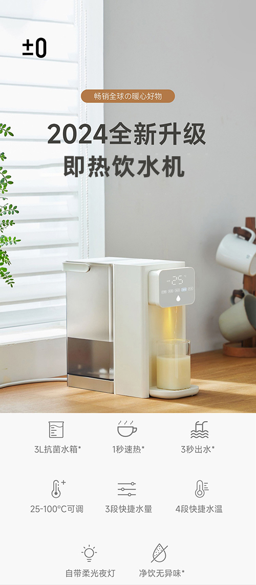 【文怡之选】正负零±0 即热饮水机 4段快捷水温 3L水箱 柔光夜灯 简约设计 即开即热