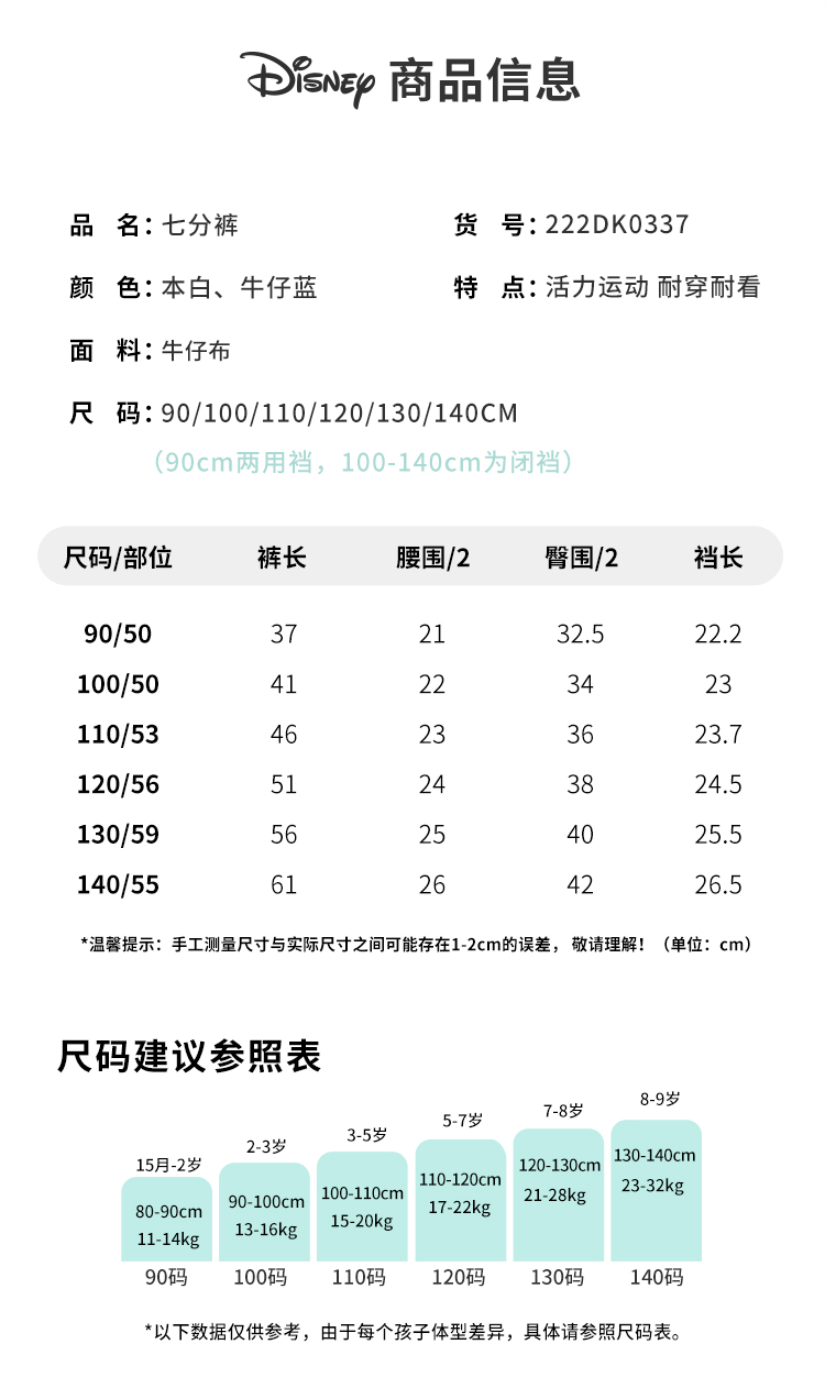【商场同款】夏季新品女童潮流时尚牛仔七分裤婴幼儿裤子