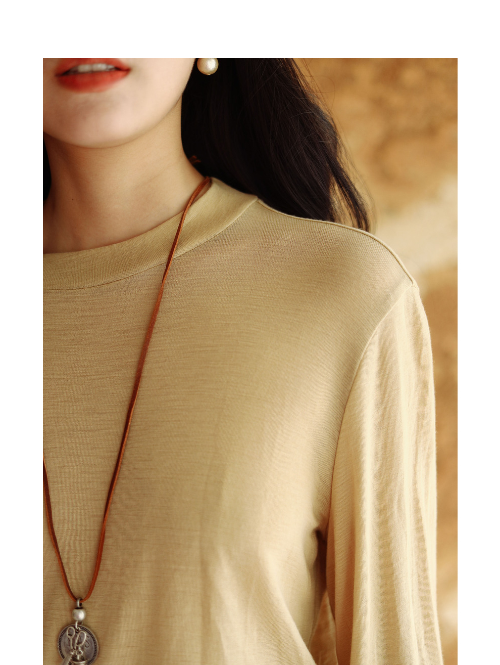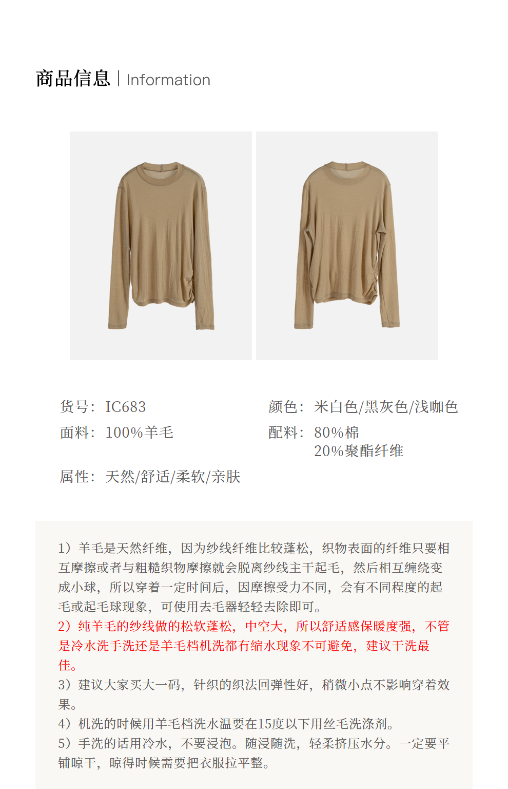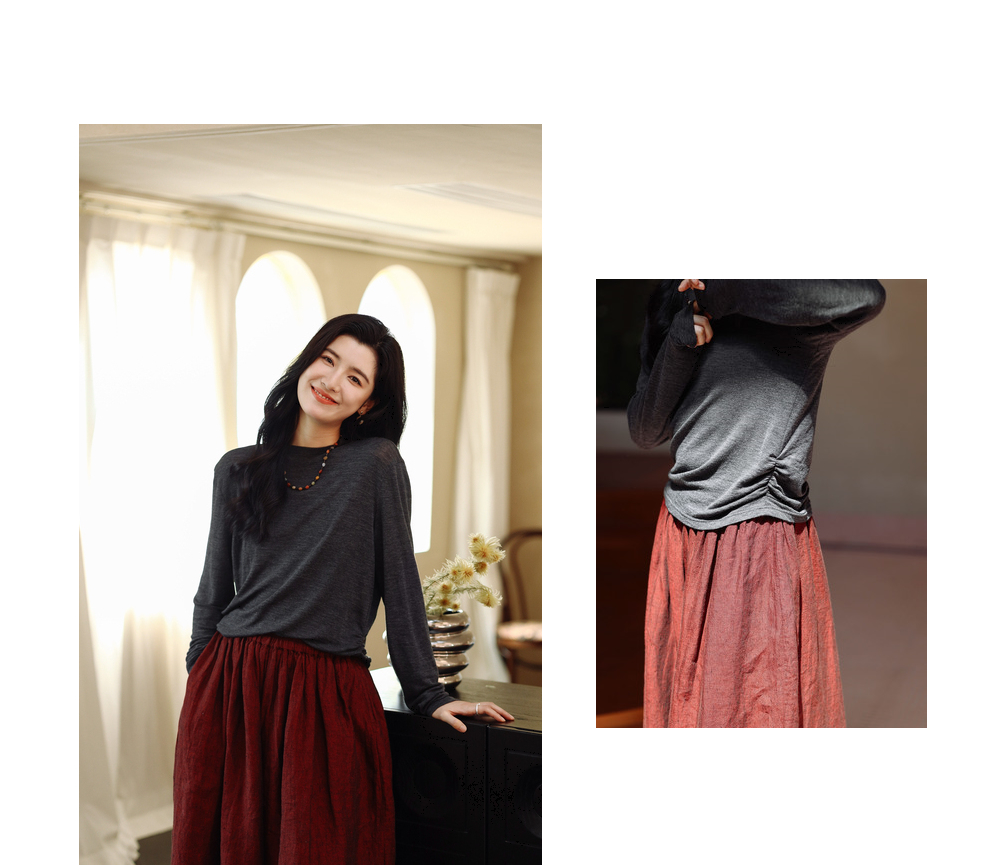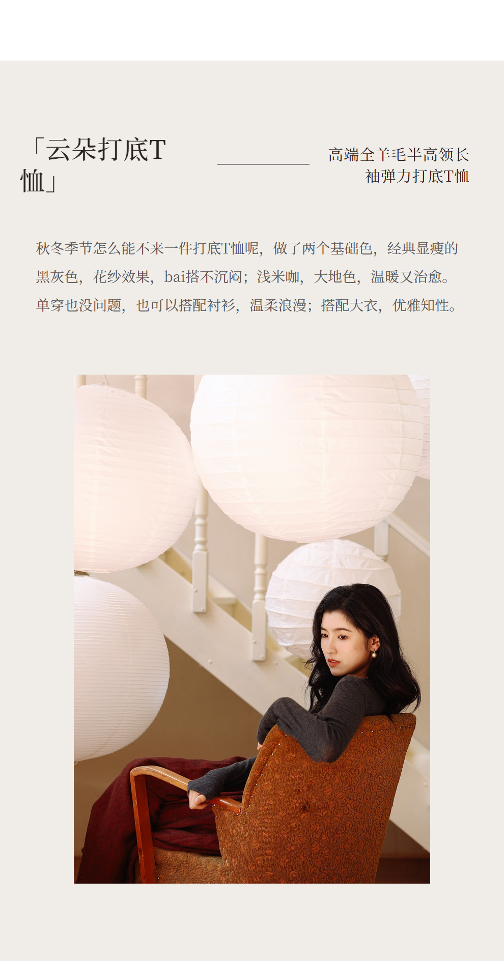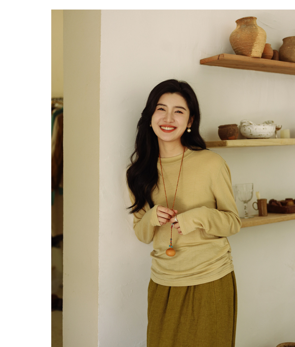 绽放683朵/高端全羊毛打底衫2023秋冬半高领正肩长袖弹力T恤
