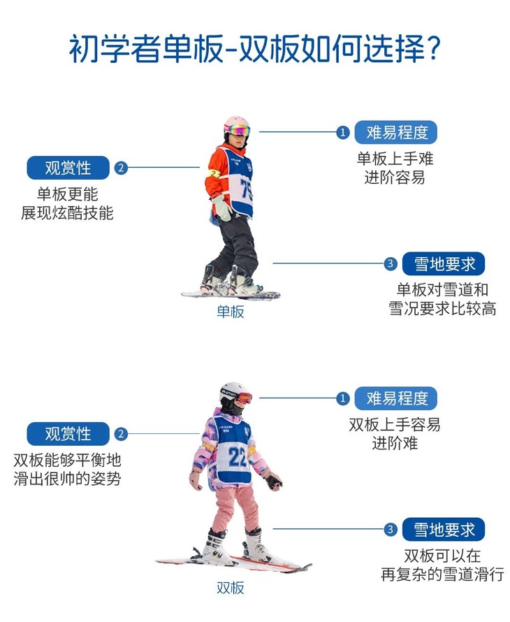 单板1-4级和双板1-5级为初级基础教学阶段,本阶段为滑雪学习基础阶段,以培养兴趣、良好滑雪习惯和标准滑雪动作为主。
