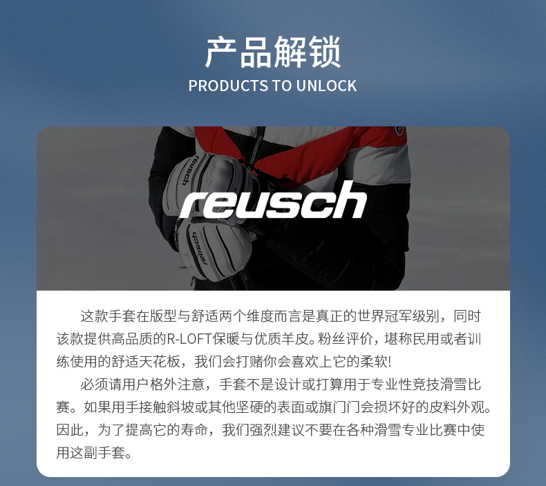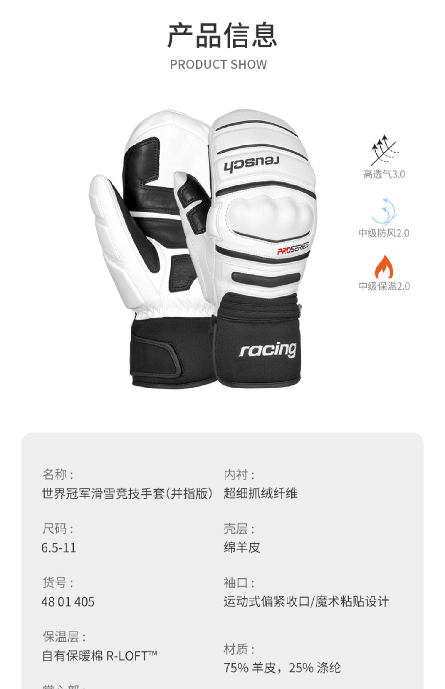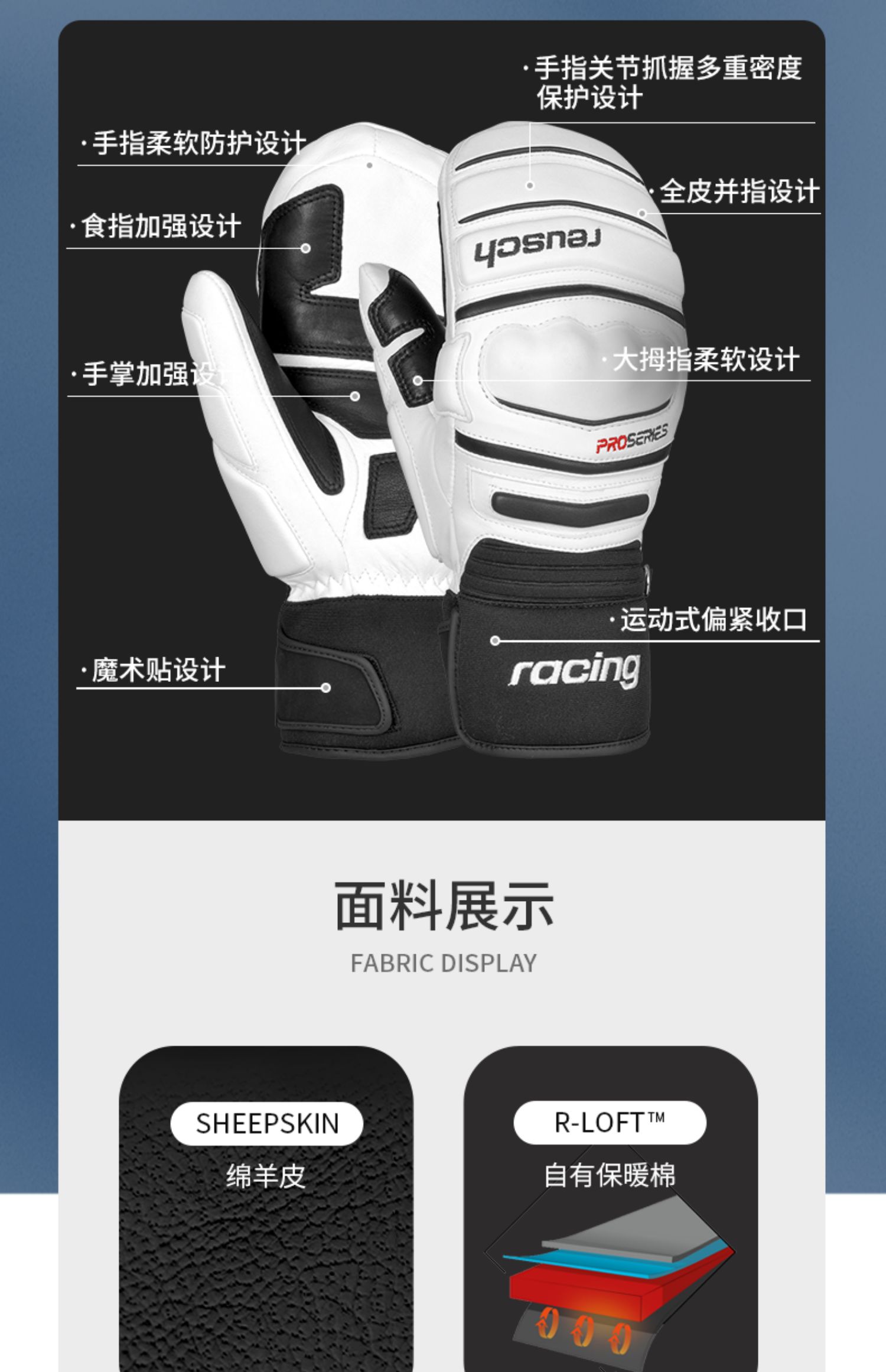 Reusch炫驰世界冠军滑雪竞技手套民用竞技男女并指手套4801405