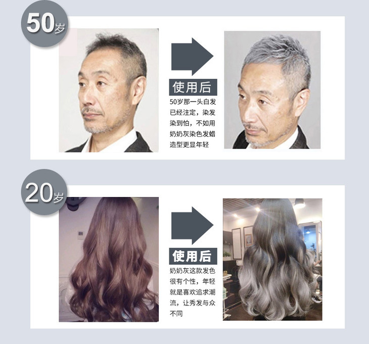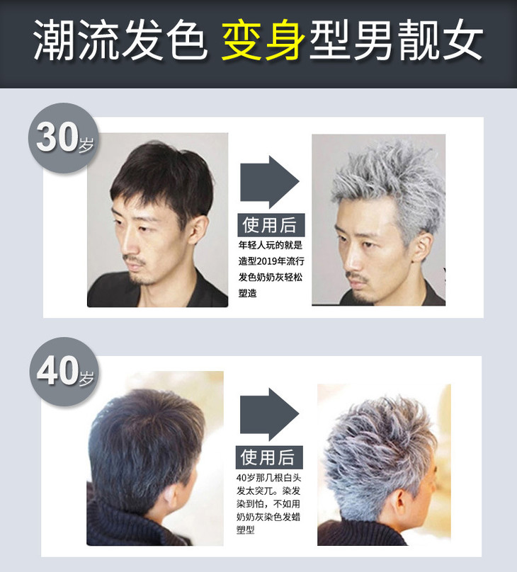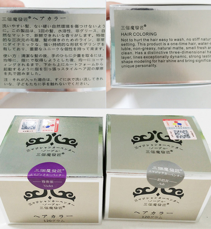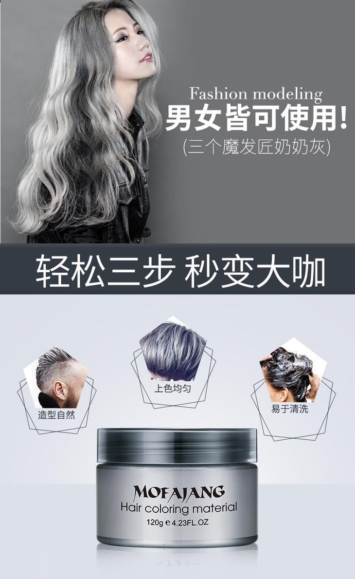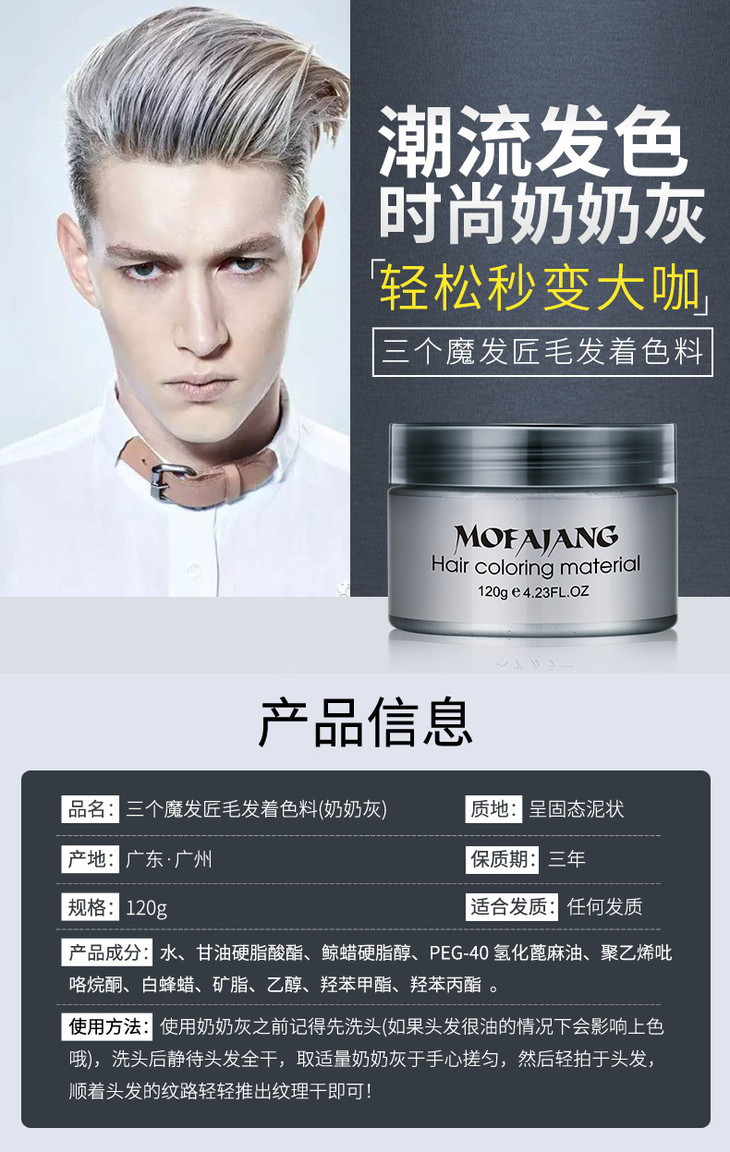 【秒变大咖】三个魔发匠奶奶灰发泥彩色发蜡 9色法匠美发产品染色发蜡
