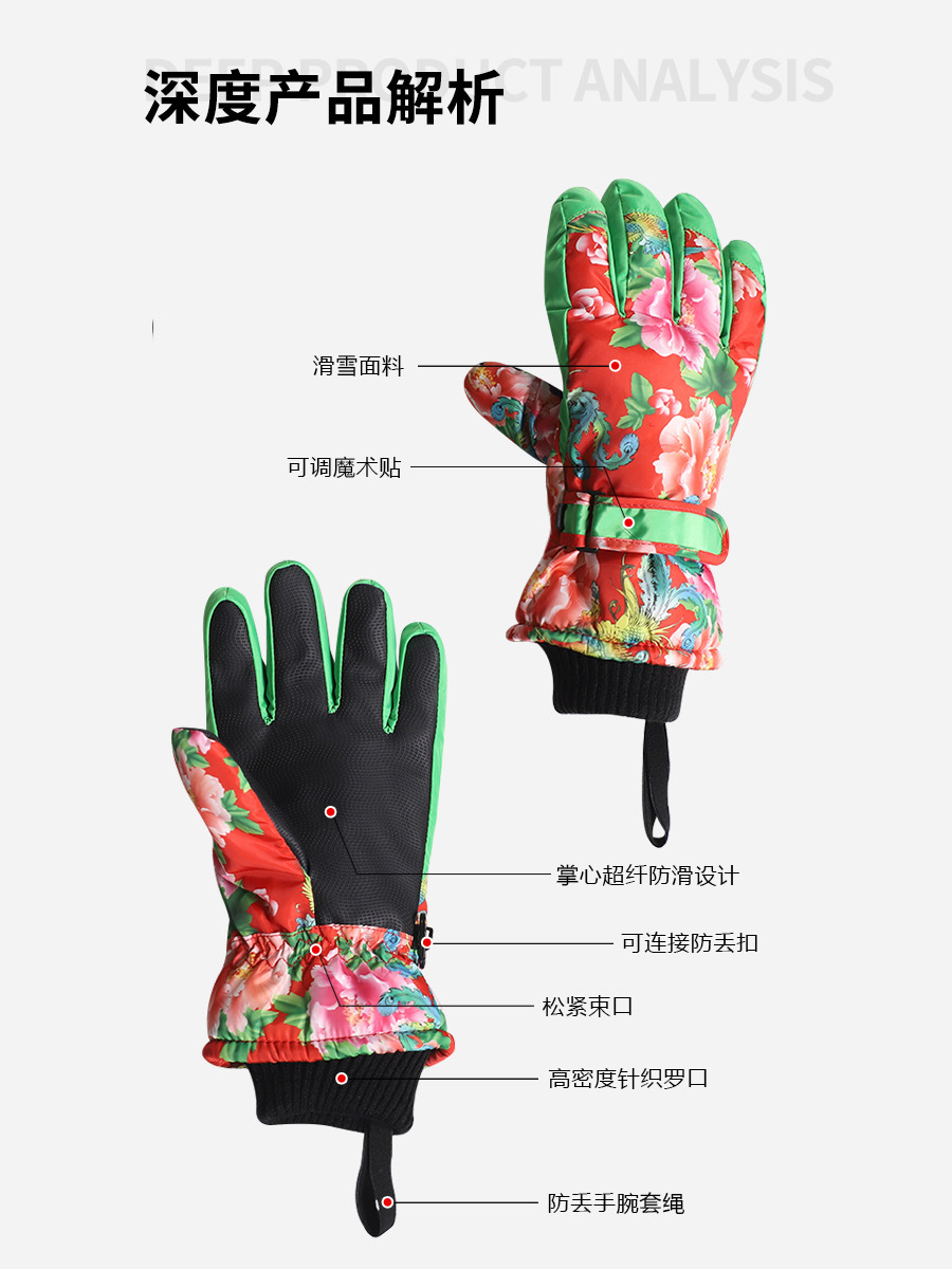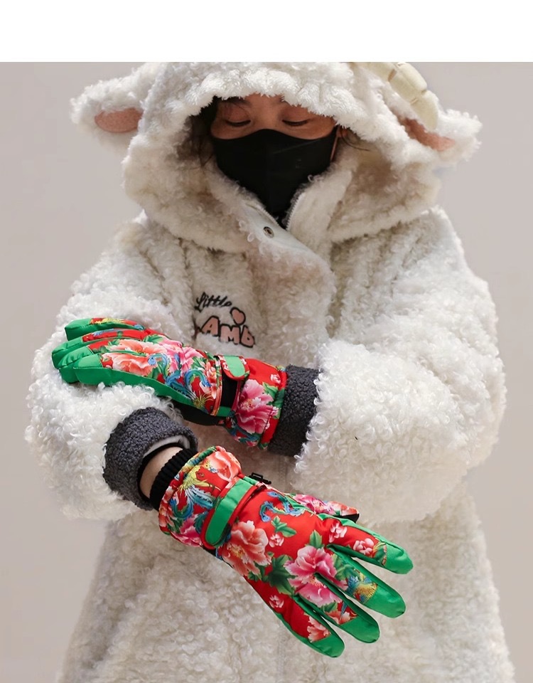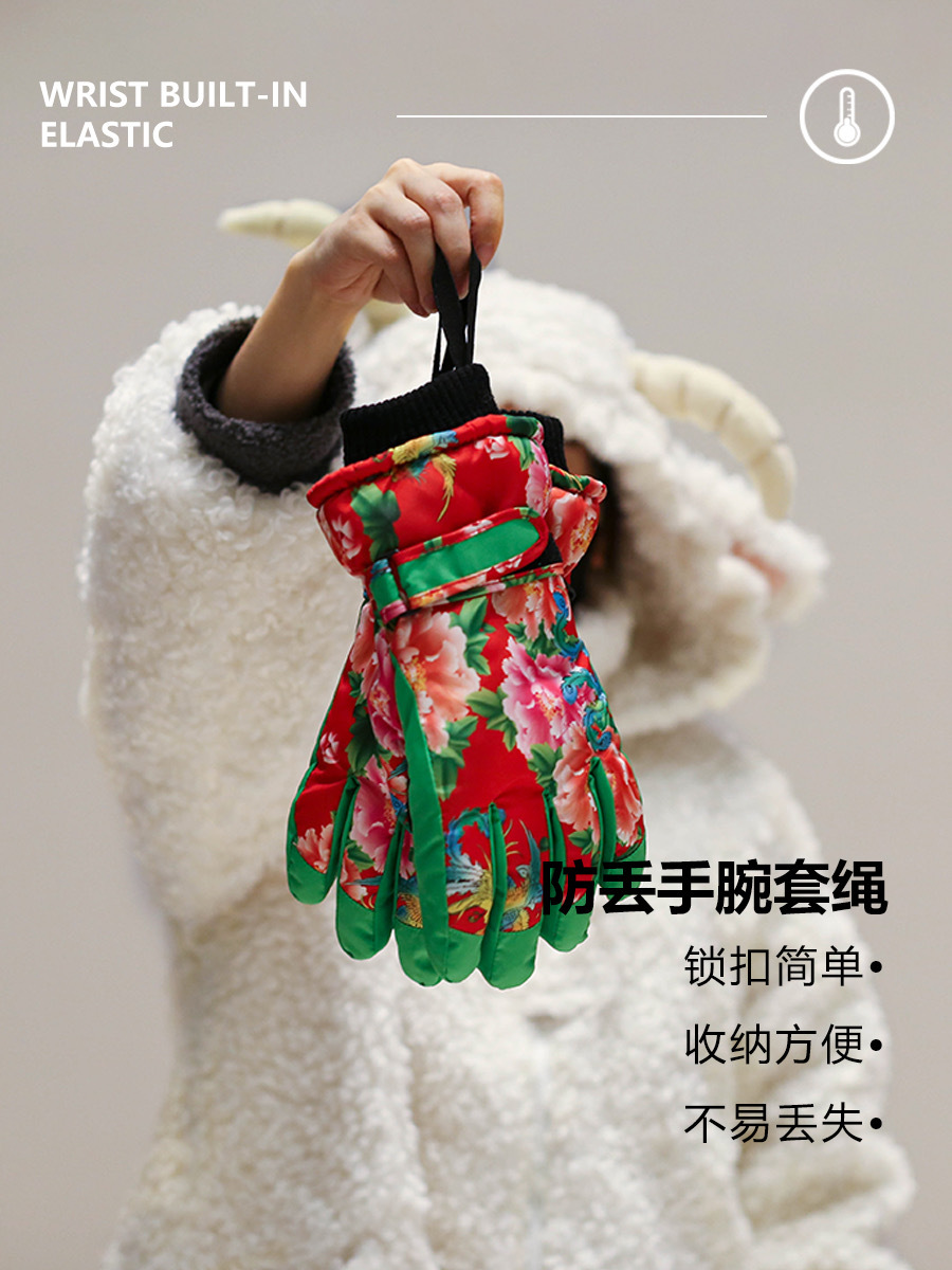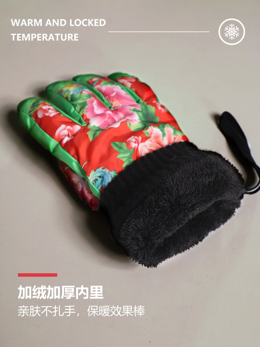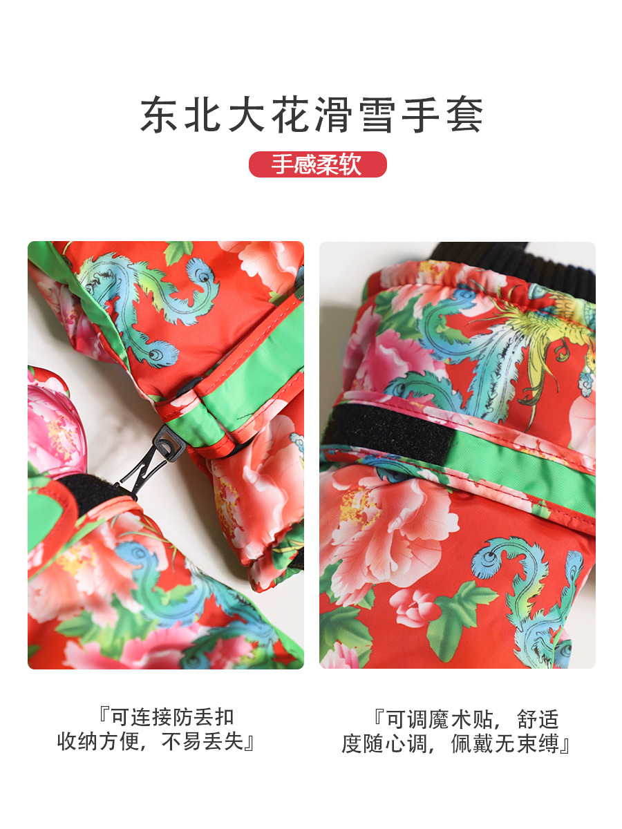 洋气新潮吸睛东北大花滑雪手套触屏加绒防泼水冬天防寒
