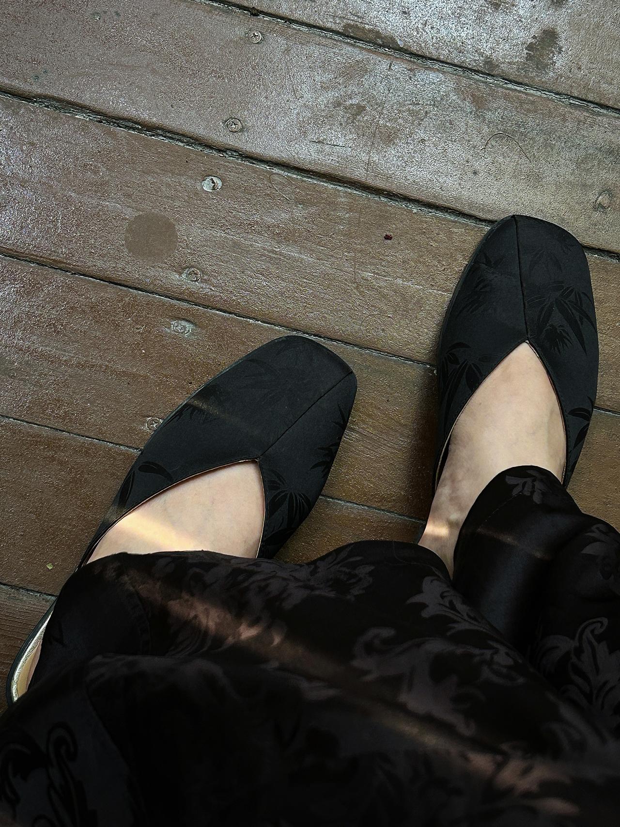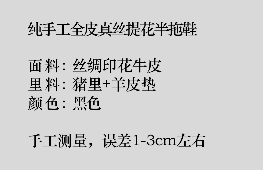 盛唐婧 |纯手工全皮真丝提花半拖鞋-黑色(特殊商品不退不换)