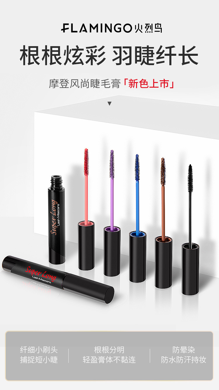 【美妆个护 】火烈鸟纤细彩色睫毛膏防水纤长卷翘浓密持久小刷头抖音网红化妆品