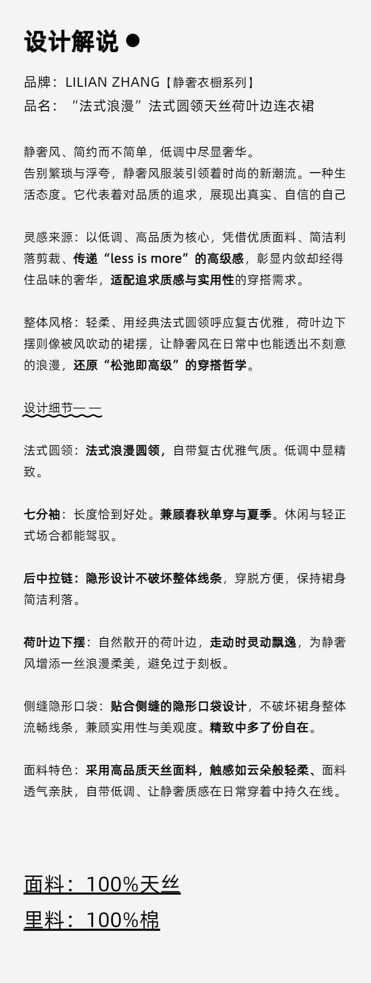 “定制”静奢风法式浪漫轻奢圆领天*丝荷叶边优雅简约连衣裙2501077