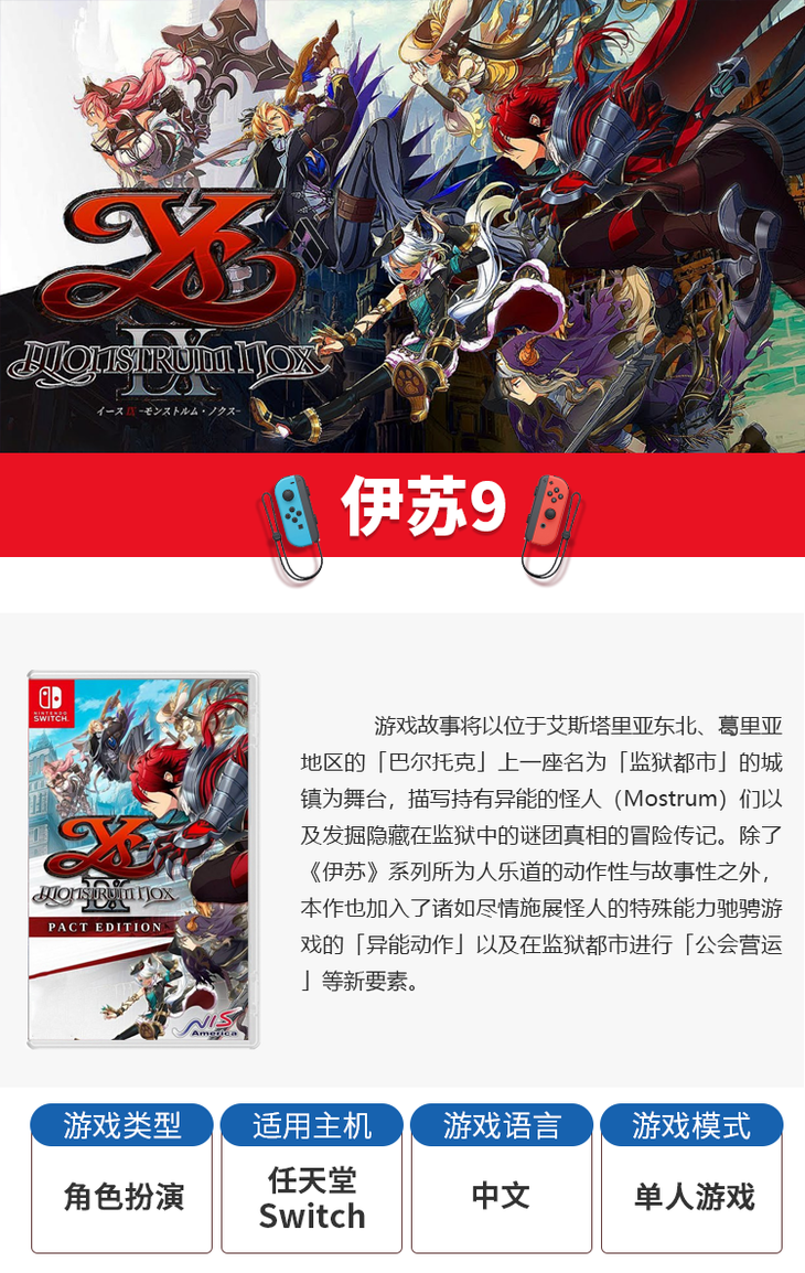 【畅玩卡可租】二手Switch游戏 伊苏9 中文版